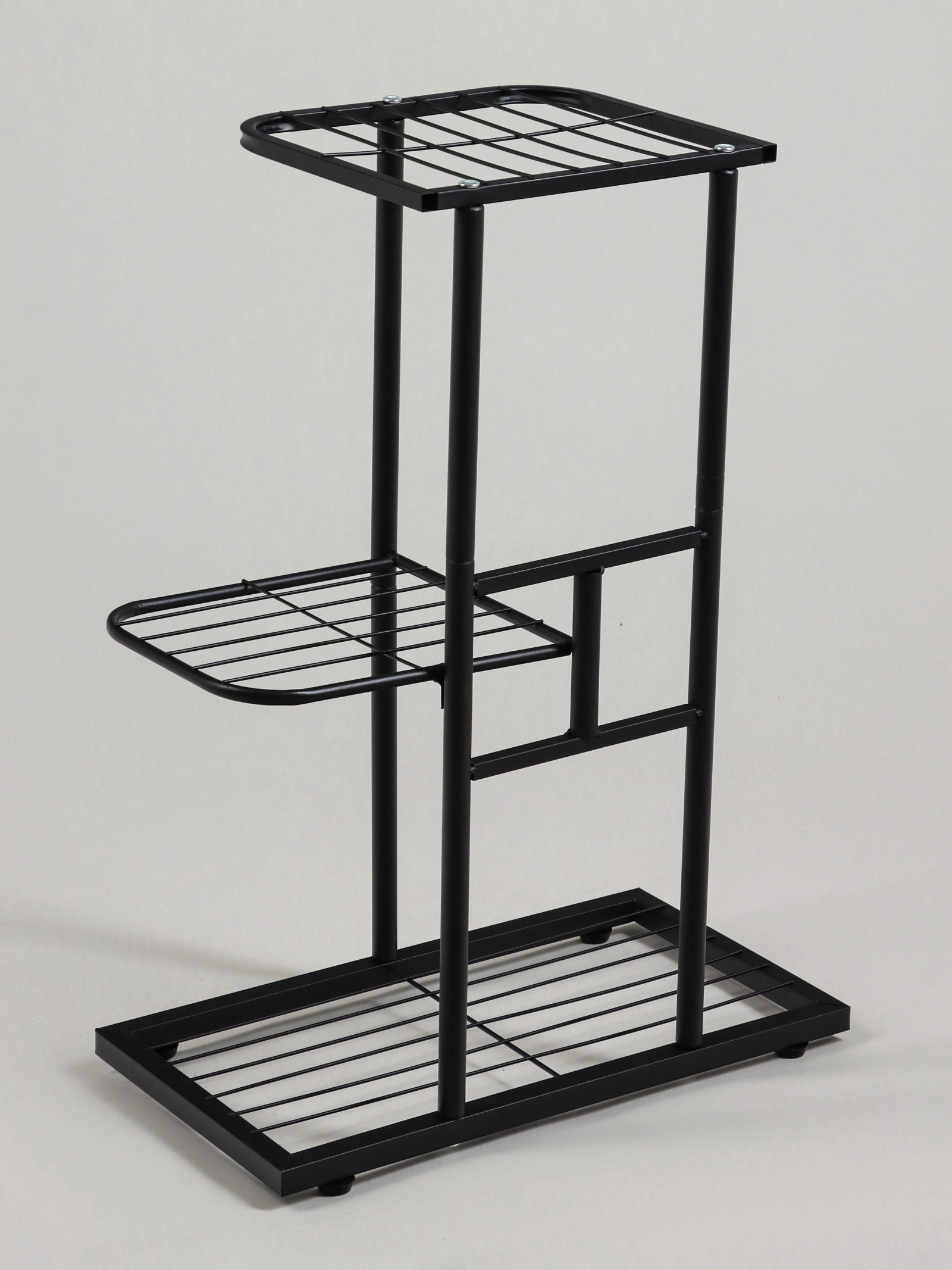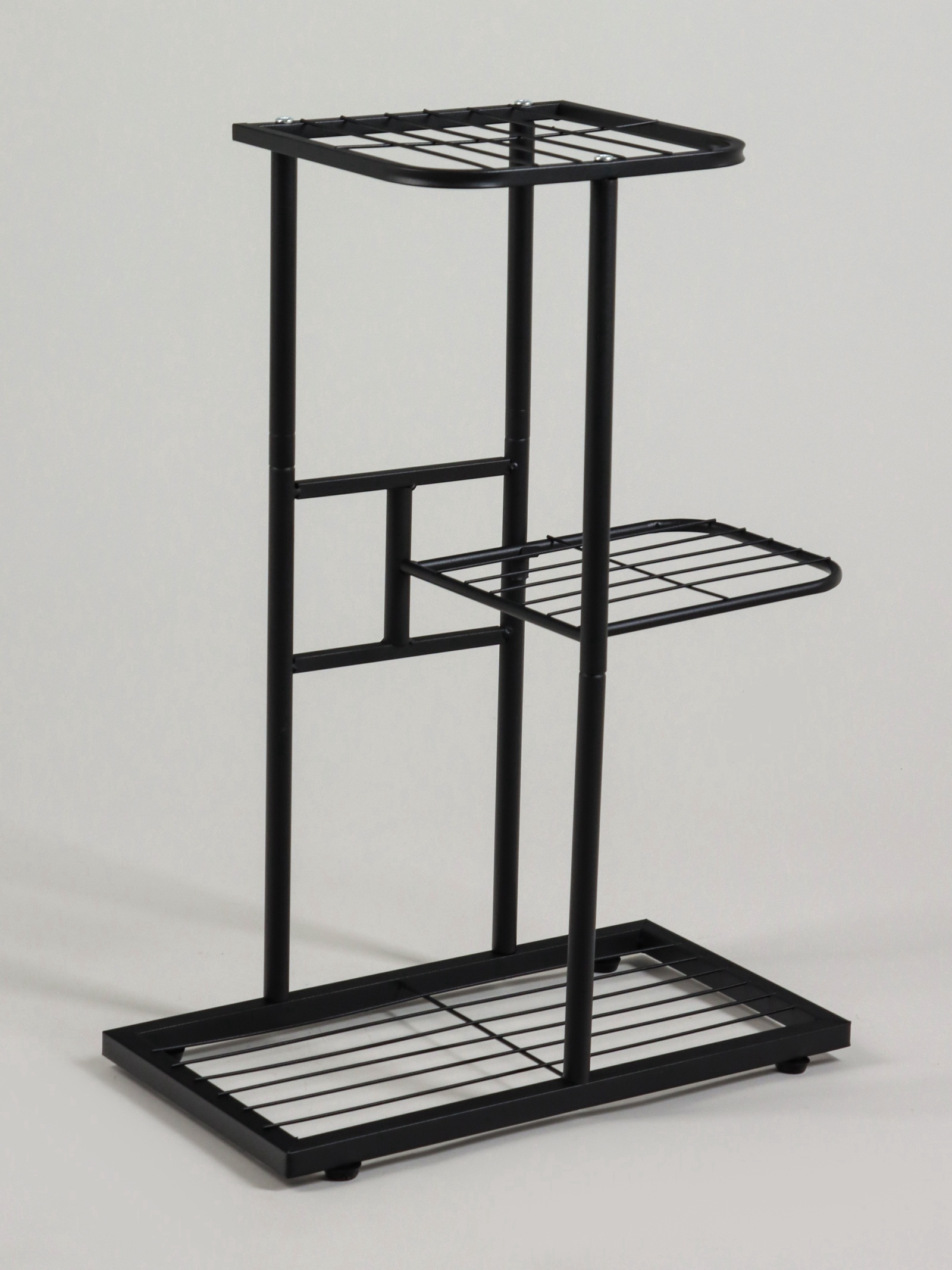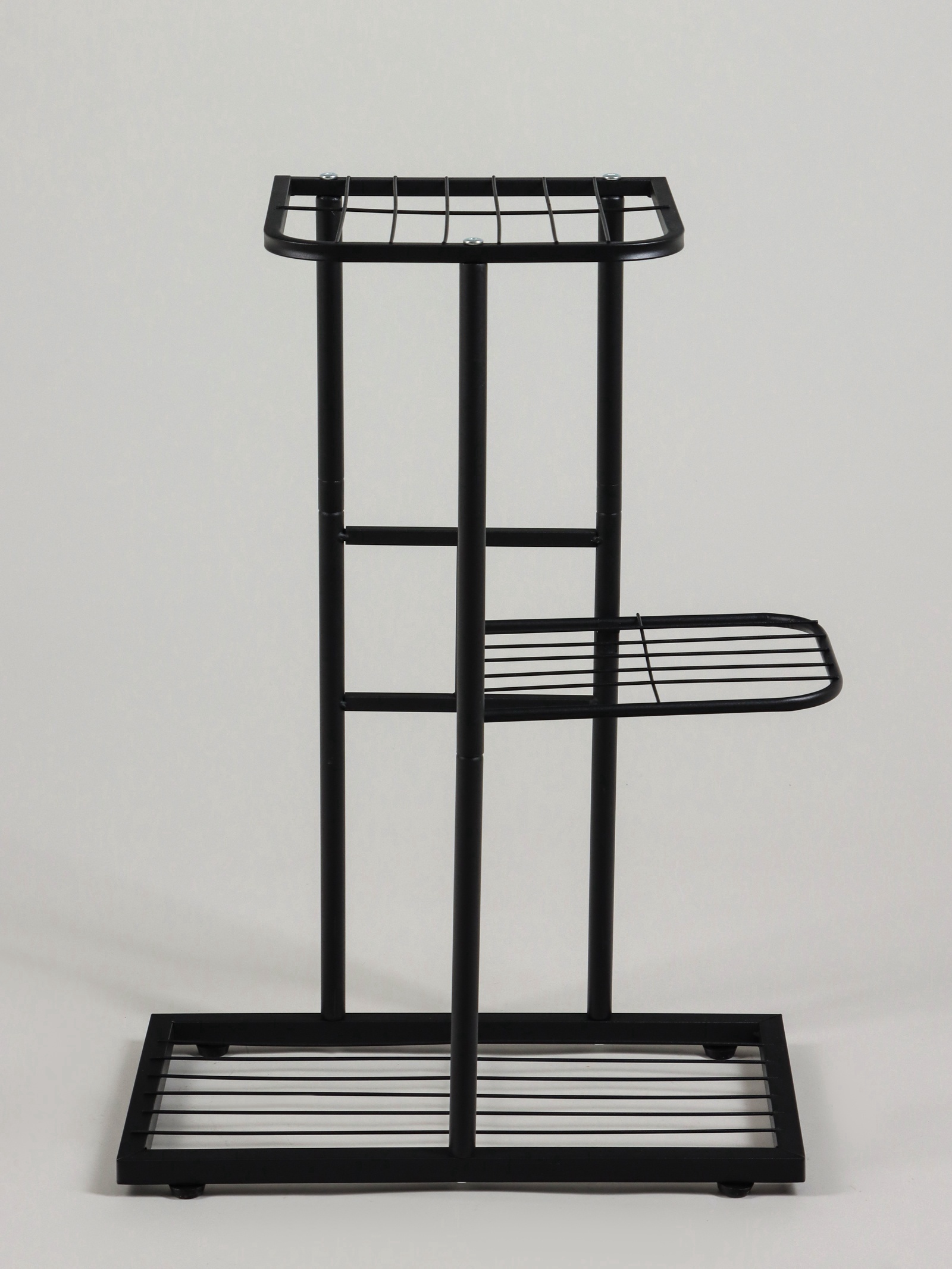 Подставка для цветов greengo, 3 полки, 43 22 57 см, напольная, металл, чёрная. Напольная подставка для цветов с тремя полками станет стильным и функциональным дополнением интерьера. Её лаконичный дизайн и чёрный оттенок гармонично впишутся в современное пространство, подчеркнув эстетику комнаты или офиса. Устойчивая металлическая конструкция обеспечивает надёжность и долговечность, а три уровня полок позволяют эффектно разместить растения, книги или декоративные элементы. Особенности Прочная металлическая основа, устойчивая к нагрузкам.Три полки для размещения цветов или других предметов.Компактные размеры — подходит даже для небольших помещений.Чёрное покрытие, устойчивое к царапинам и выгоранию.На полках из металлической трубки не скапливается пыль и влага.На этом стеллаже можно компактно разместить много растений.Растения на этой этажерке получают максимальное количество солнечного света.Практичность и стиль Эта подставка сочетает в себе элегантность и функциональность. Её универсальный дизайн подойдёт для гостиной, спальни, балкона или офиса, а прочная конструкция выдерживает даже крупные растения в горшках. Чёрный цвет добавляет интерьеру лёгкий акцент, не перегружая пространство. Идеальный выбор для тех, кто ценит гармонию стиля и удобства. Цвет:Чёрный|Вид установки:Напольное|Материал:Металл|Страна:Китай  развернуть описание ▼