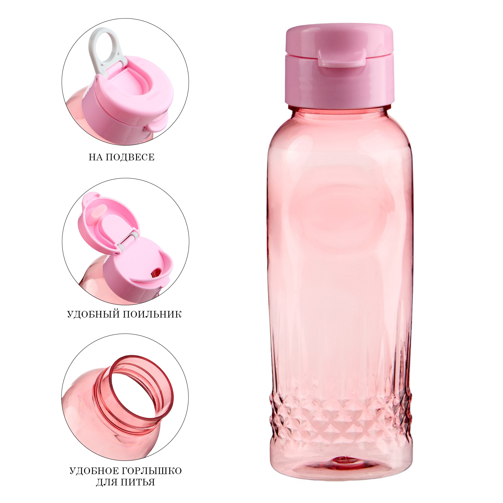 Бутылка для воды спортивная, 650 мл, "флорес", 4.7 х 22 х 7 см, розовая. Стильная и функциональная бутылка для воды станет незаменимым спутником для людей, ведущих активный образ жизни, для любителей спорта, туризма, пеших прогулок. Спортивная бутылка имеет лаконичный дизайн, совмещенный с удобством использования. Такая бутылка для воды подойдет в школу и на секции, для занятий физкультурой и прогулок с друзьями. Изделие выполнено из пищевого пластика и предназначено для употребления воды, соков и других напитков. Рекомендации Не мыть в посудомоечной машине. Плотно закрывать крышку. Цвет: Розовый Объём, мл: 650 Материал: Пластик Вид: Бутылка Особенности: На подвесе  развернуть описание ▼