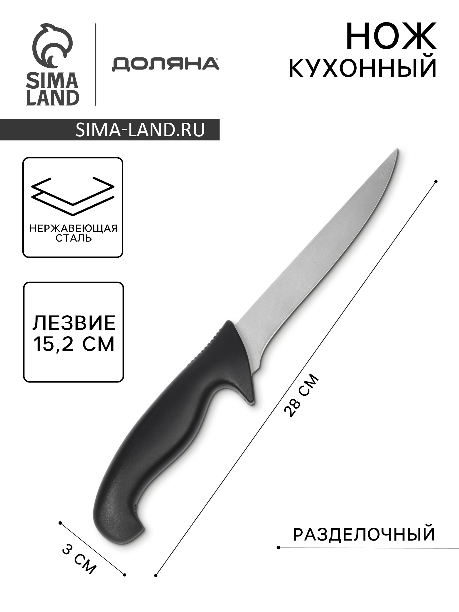 Нож кухонный обвалочный Sharp, лезвие 15.2 см, нержавеющая сталь, чёрная ручка