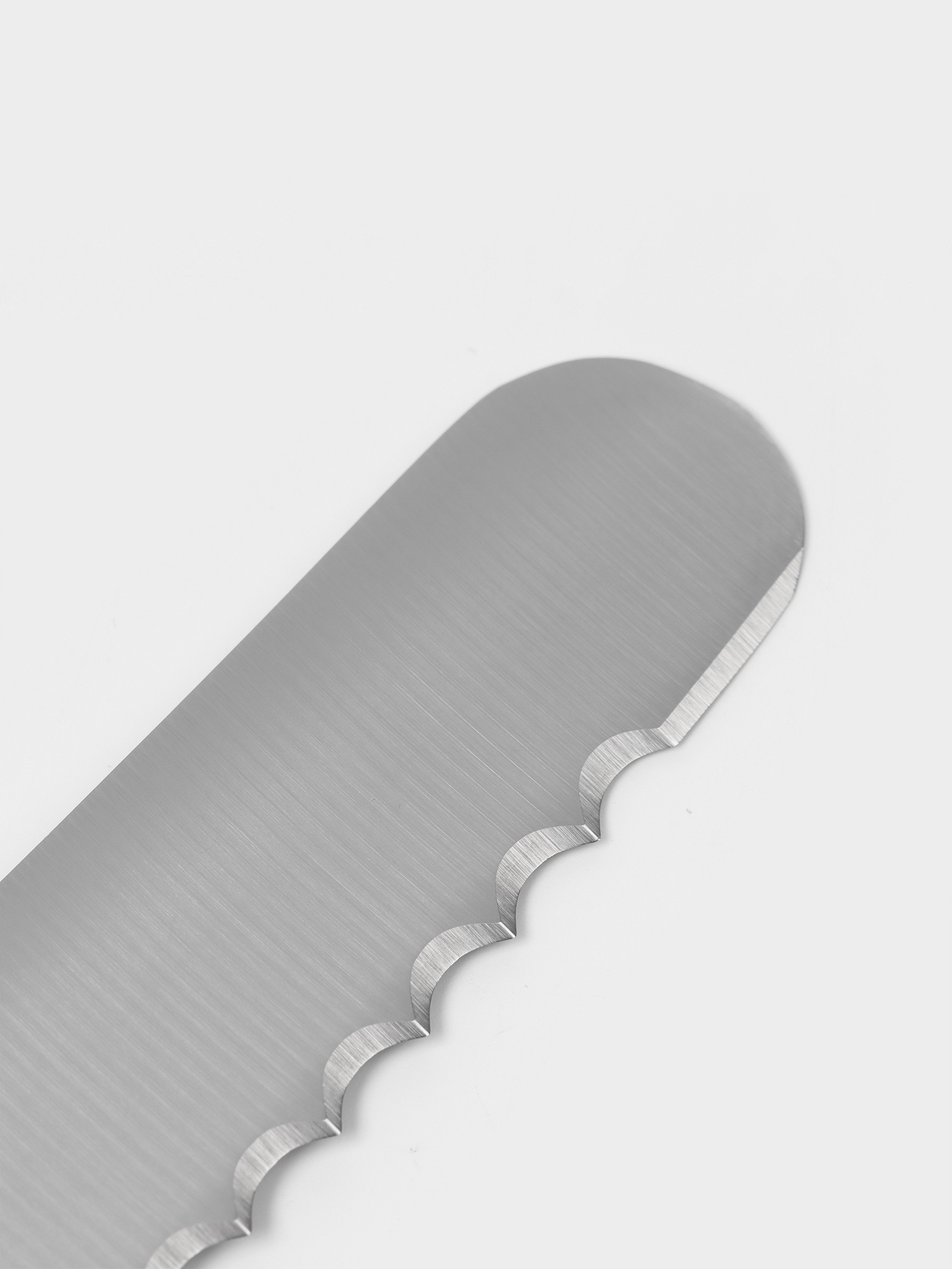 Длинное лезвие: подходит для хлеба любого размера. Волнистая заточка: обеспечивает легкую и аккуратную нарезку. Лезвие из нержавеющей стали: долговечность и устойчивость к коррозии. Эргономичная ручка: удобный и безопасный захват. Простота в уходе: легко очищается после использования. Наслаждайтесь свежим хлебом без хлопот!