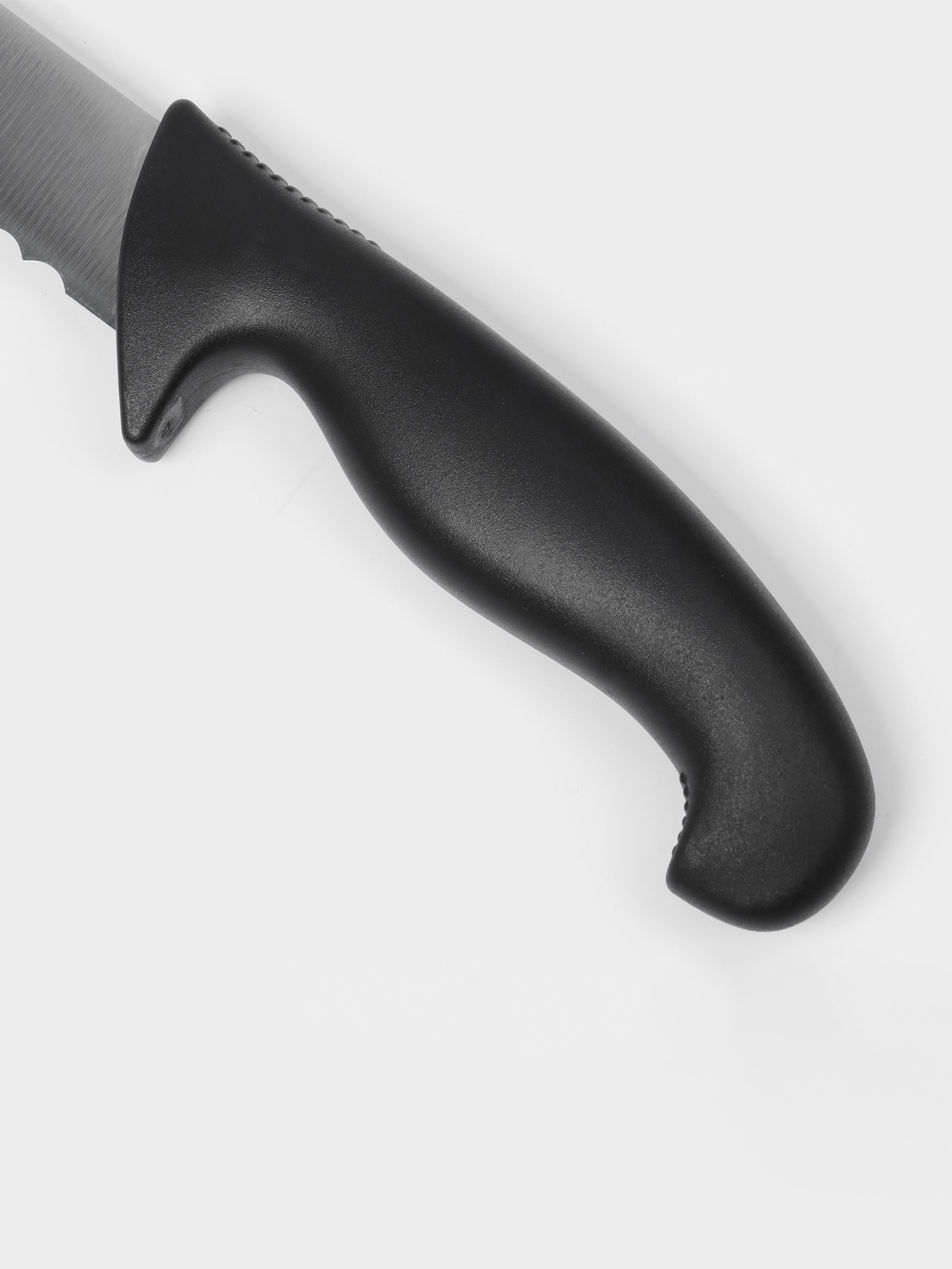 Нож "Sharp" оснащен длинным лезвием с серрейторной заточкой, которое легко справляется с хрустящей корочкой и мягкой мякотью хлеба. Эргономичная черная ручка обеспечивает удобный и надежный захват.