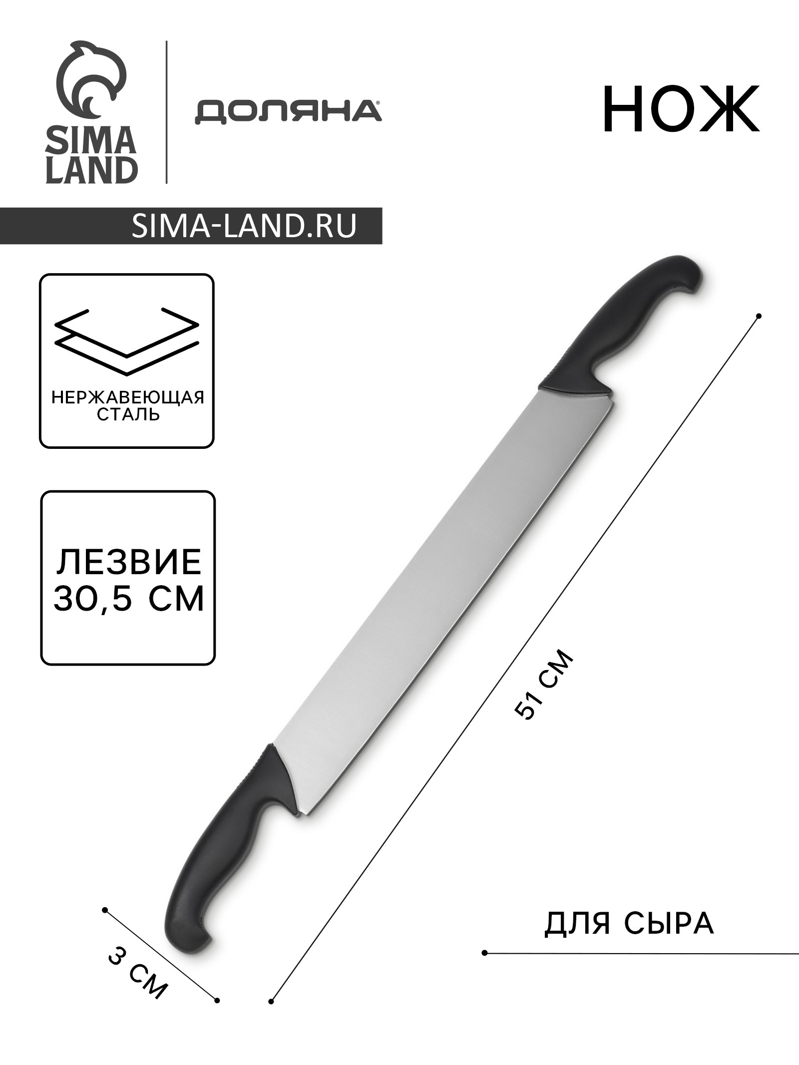 Нож для сыра с двумя ручками Sharp, лезвие 36.3 см, нержавеющая сталь, чёрная ручка