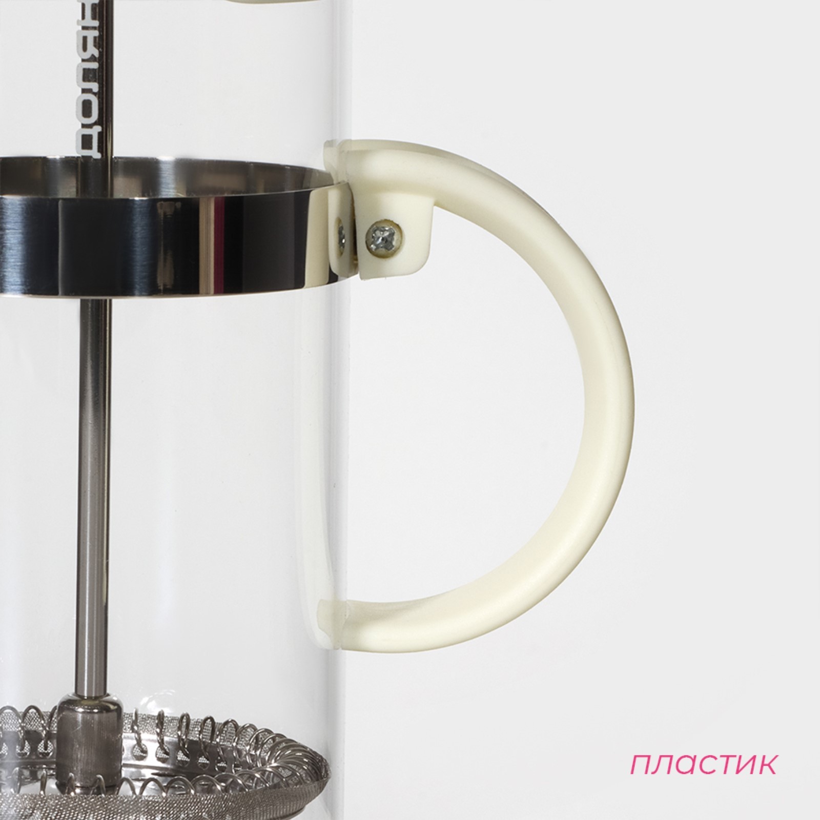 Чайник заварочный френч - пресс доляна «гарсон», 350 мл, стекло, цвет молочный