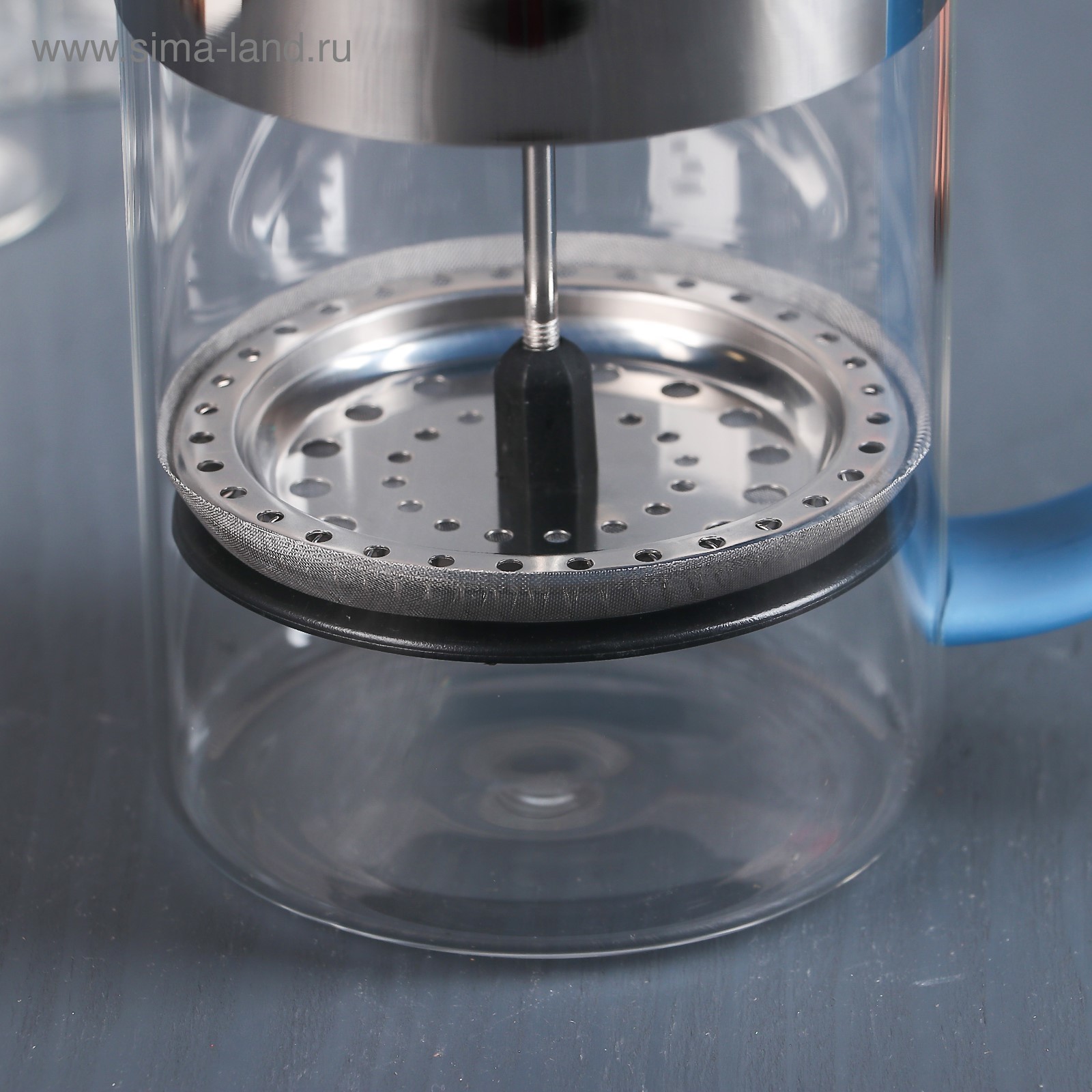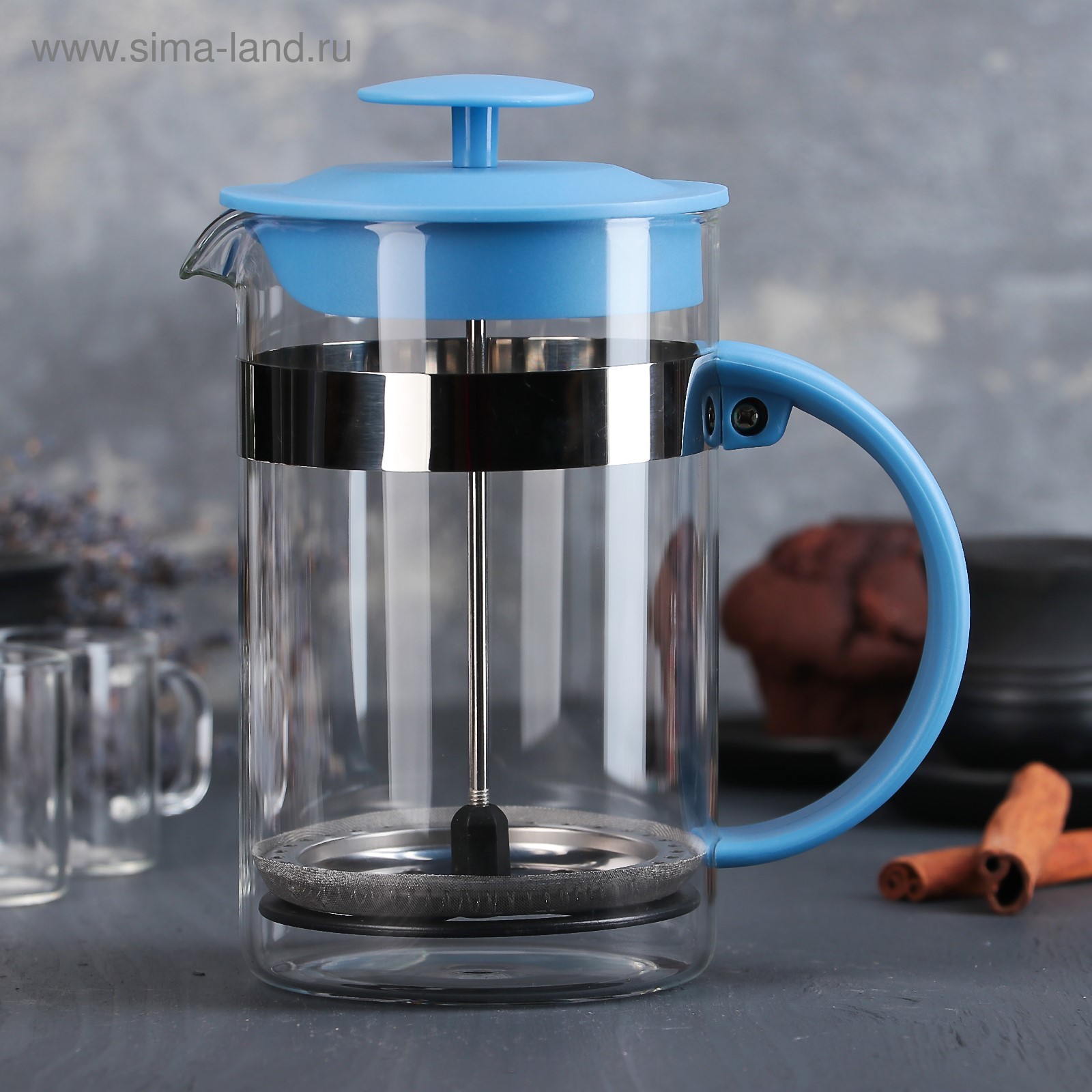 Чайник заварочный френч - пресс доляна «гарсон», 800 мл, стекло, цвет голубой