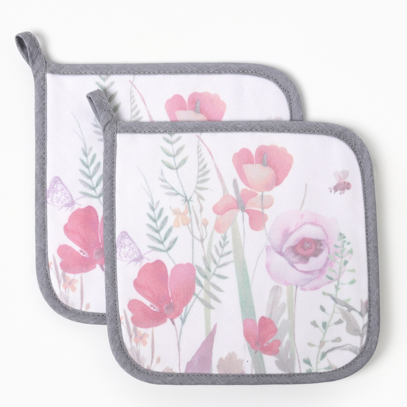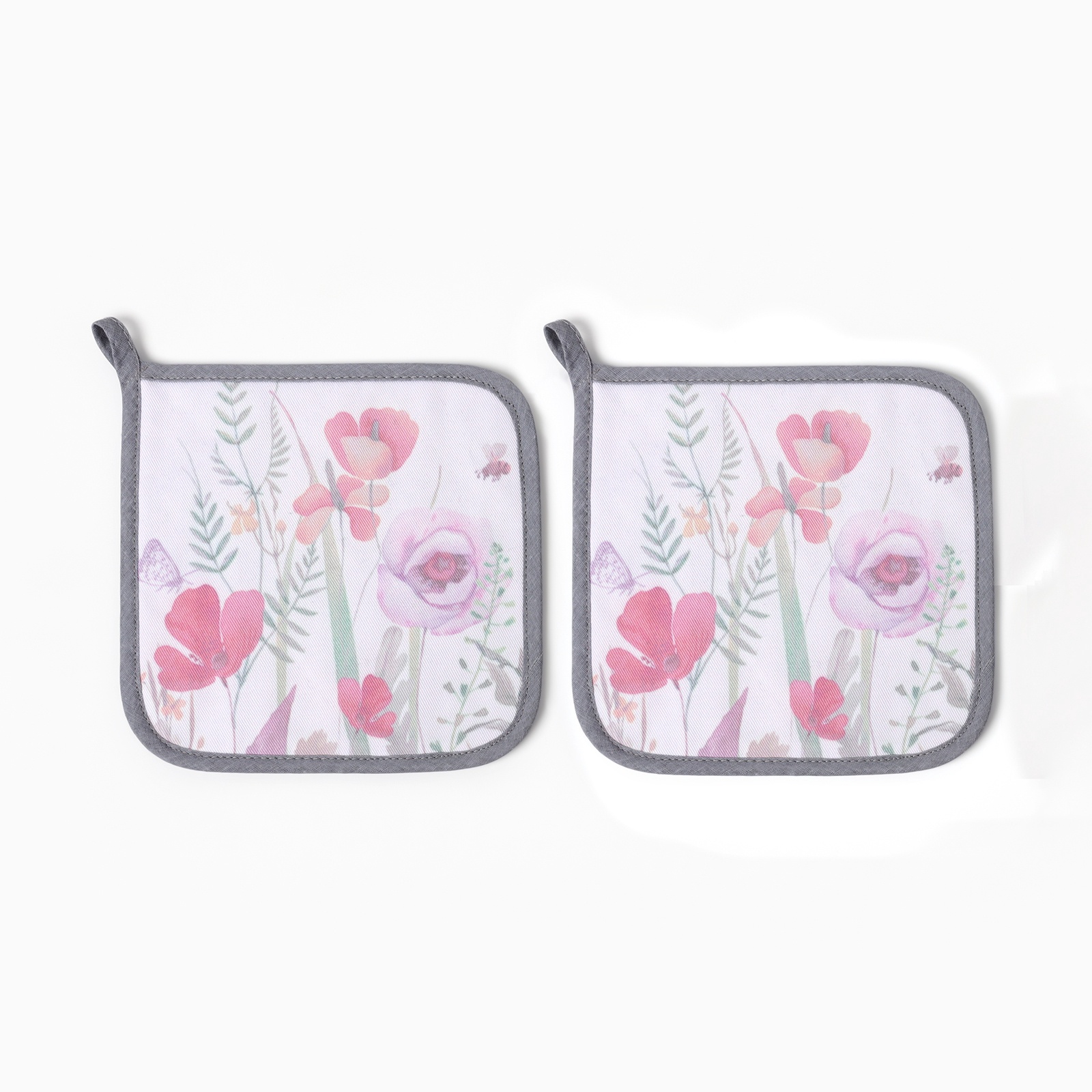 Набор прихваток этель "маки" 2 шт, 19х19см,саржа,100% х/л,ватин 250г/м2