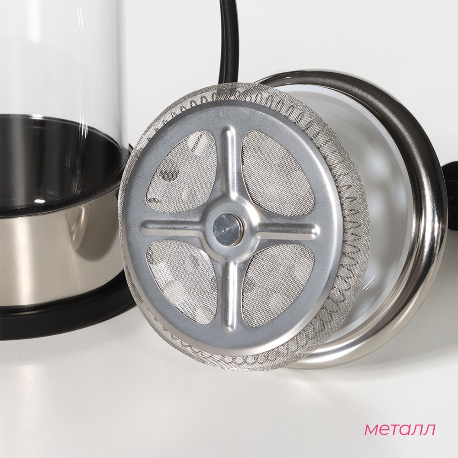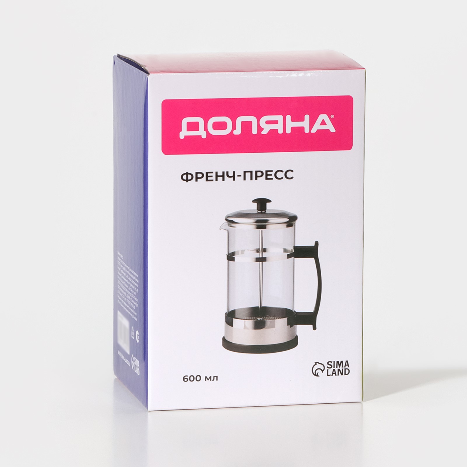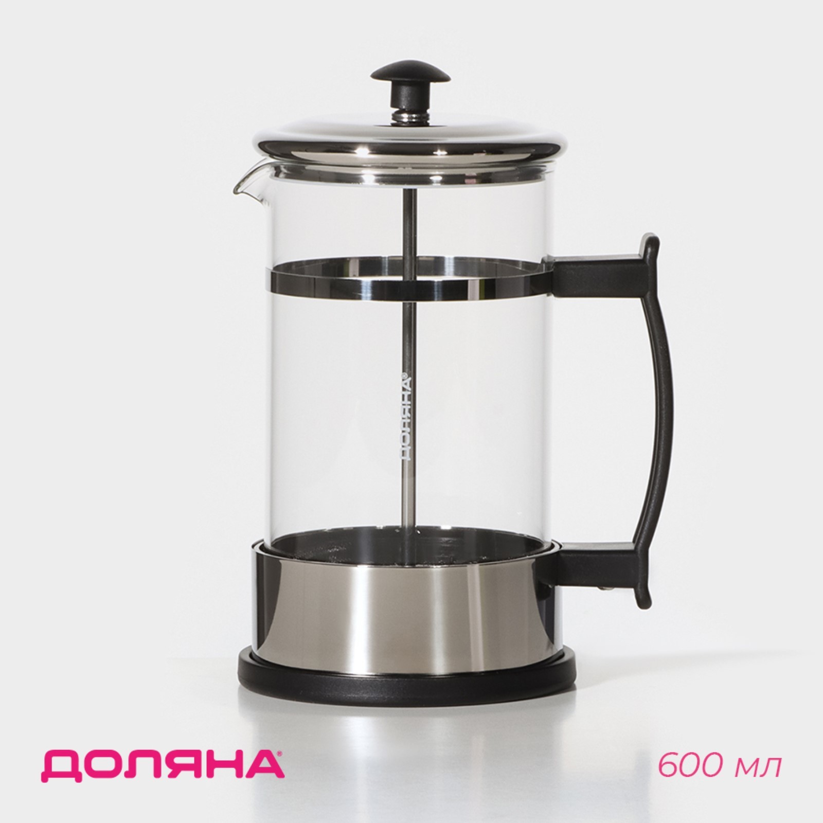 Чайник заварочный френч - пресс доляна «риц», 600 мл, стекло, цвет чёрный