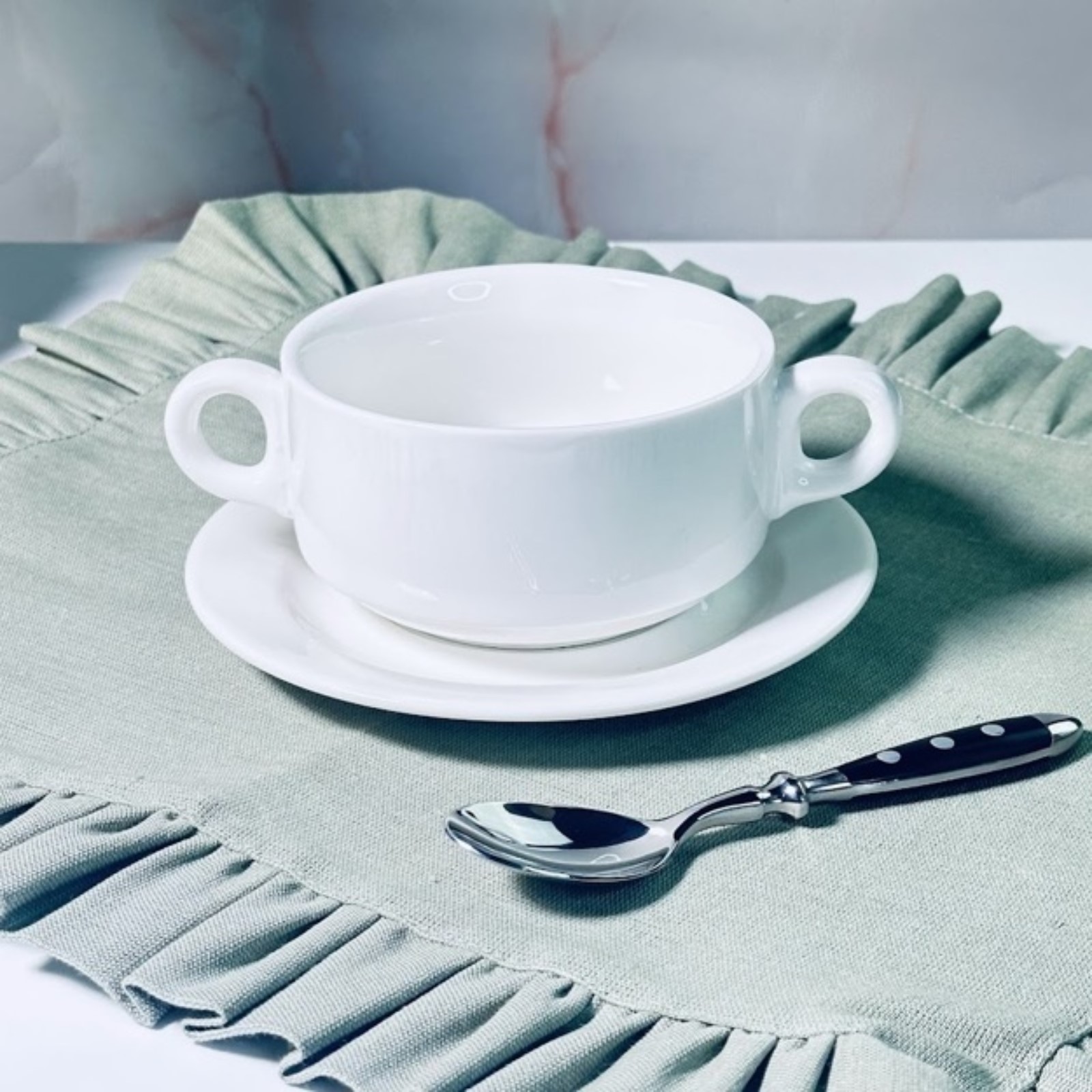 Бульонница с блюдцем Lenardi Bianco, D=11,5 см, 400 мл