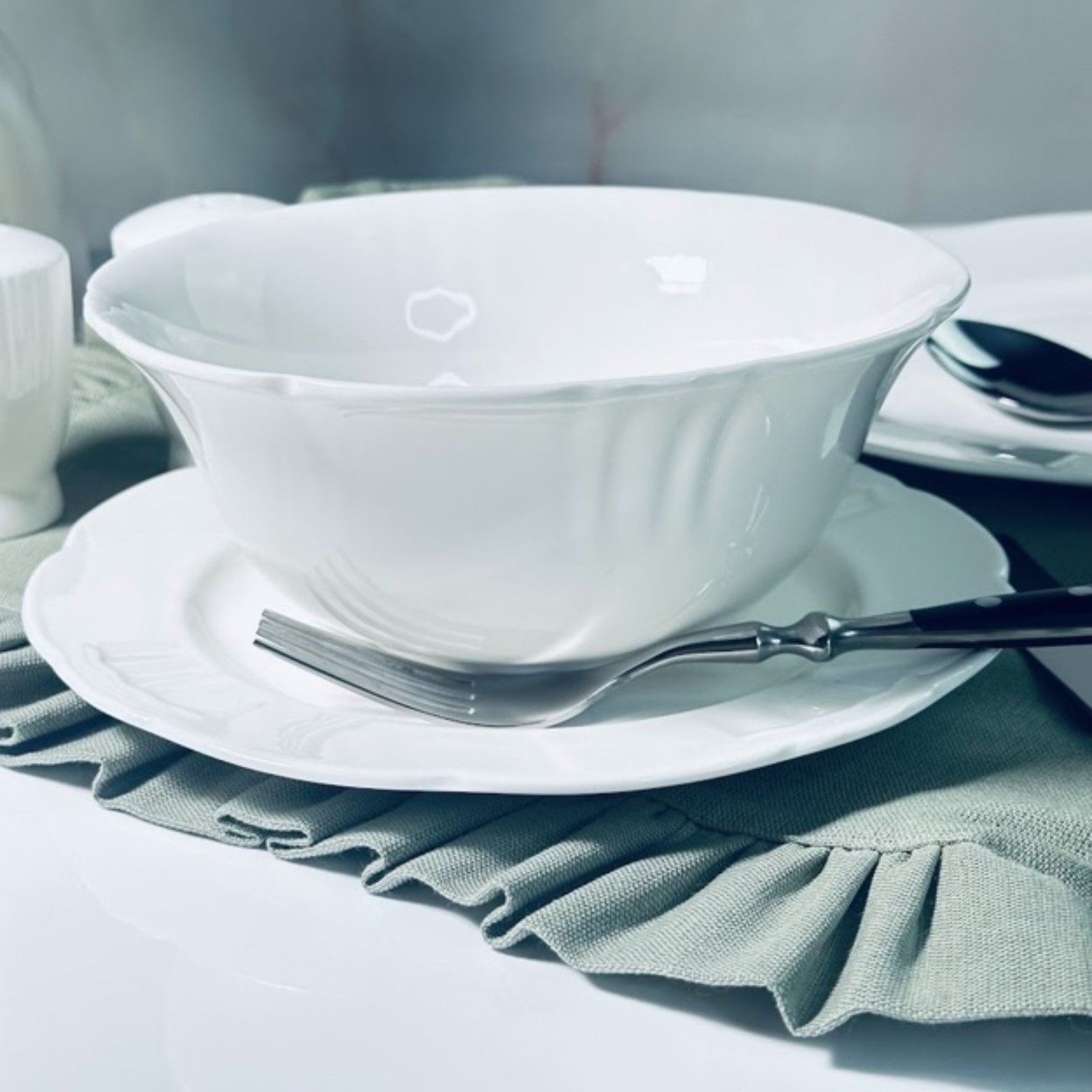 Набор салатников lenardi resto, 18 см, 6 шт. Изделие может иметь следующие несущественные дефекты: незначительный скол краски;прерывание и наплыв рисунка;наличие полосы на рисунке;потёртости и наплыв золотой краски на внутренней стороне;небольшие потёртости и царапины на глазури;засорения под глазурью;плотные вздутия глазури на внутренней поверхности;натёк глазури;наличие мушек (чёрных точек);неровность внутреннего отверстия;отклеивание страз;потёртость упаковки в уголках. Данные недостатки не влияют на свойства изделия при использовании. Цвет: Белый Форма: Круглая Диаметр, см: 18 Объём, л: 0.9 В наборе, шт.: 6 Тематика: Однотонная Крышка: Нет Материал: Фарфор Можно мыть в посудомоечной машине: Да Можно использовать в СВЧ-печи: Да Текстура: С рельефом Особенности: Без особенностей Для горячего: Нет Форма: Круг, шар, цилиндр  развернуть описание ▼