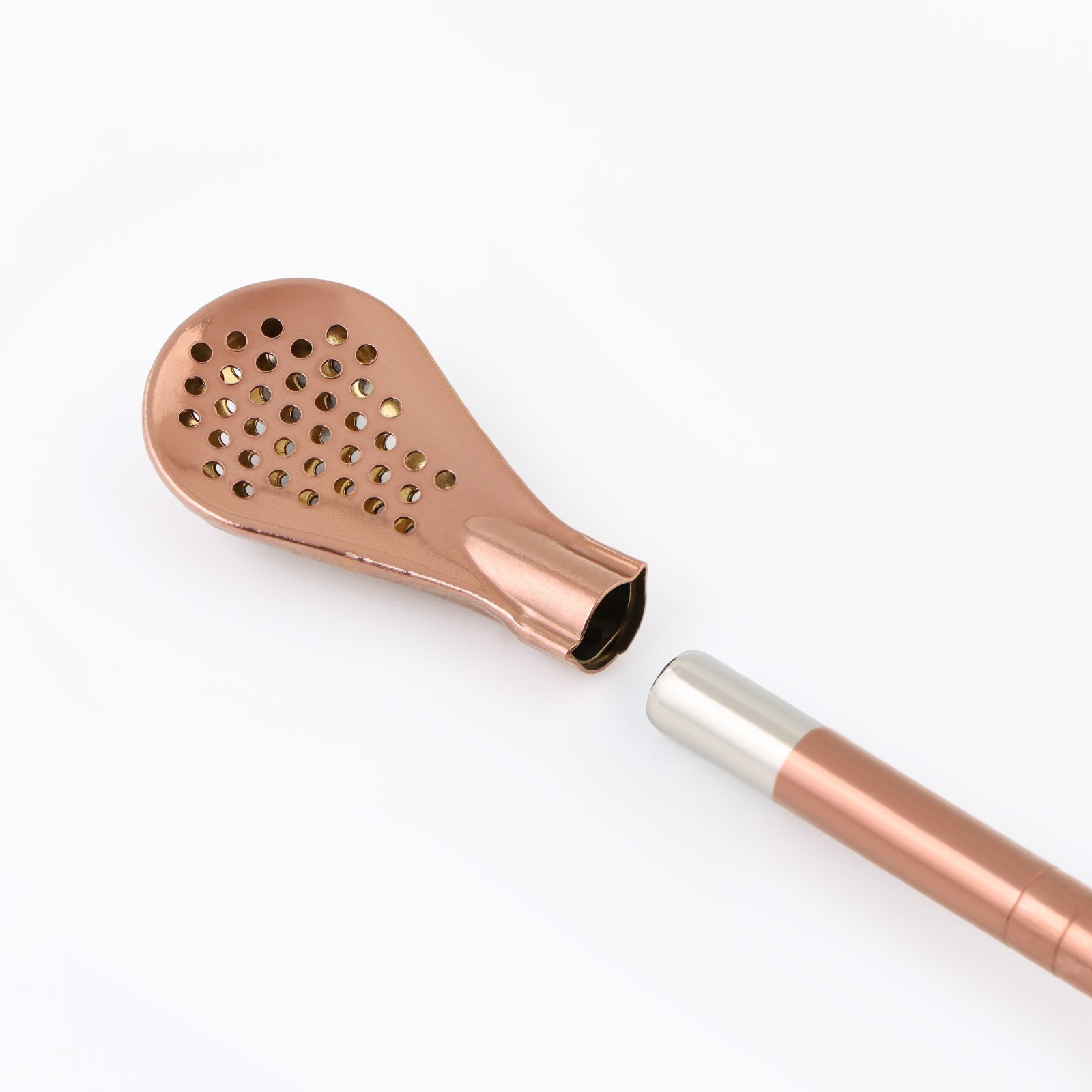 Бомбилья для матчи, набор 2 штуки с щёточками для чистки, бронза, L-18.5 см