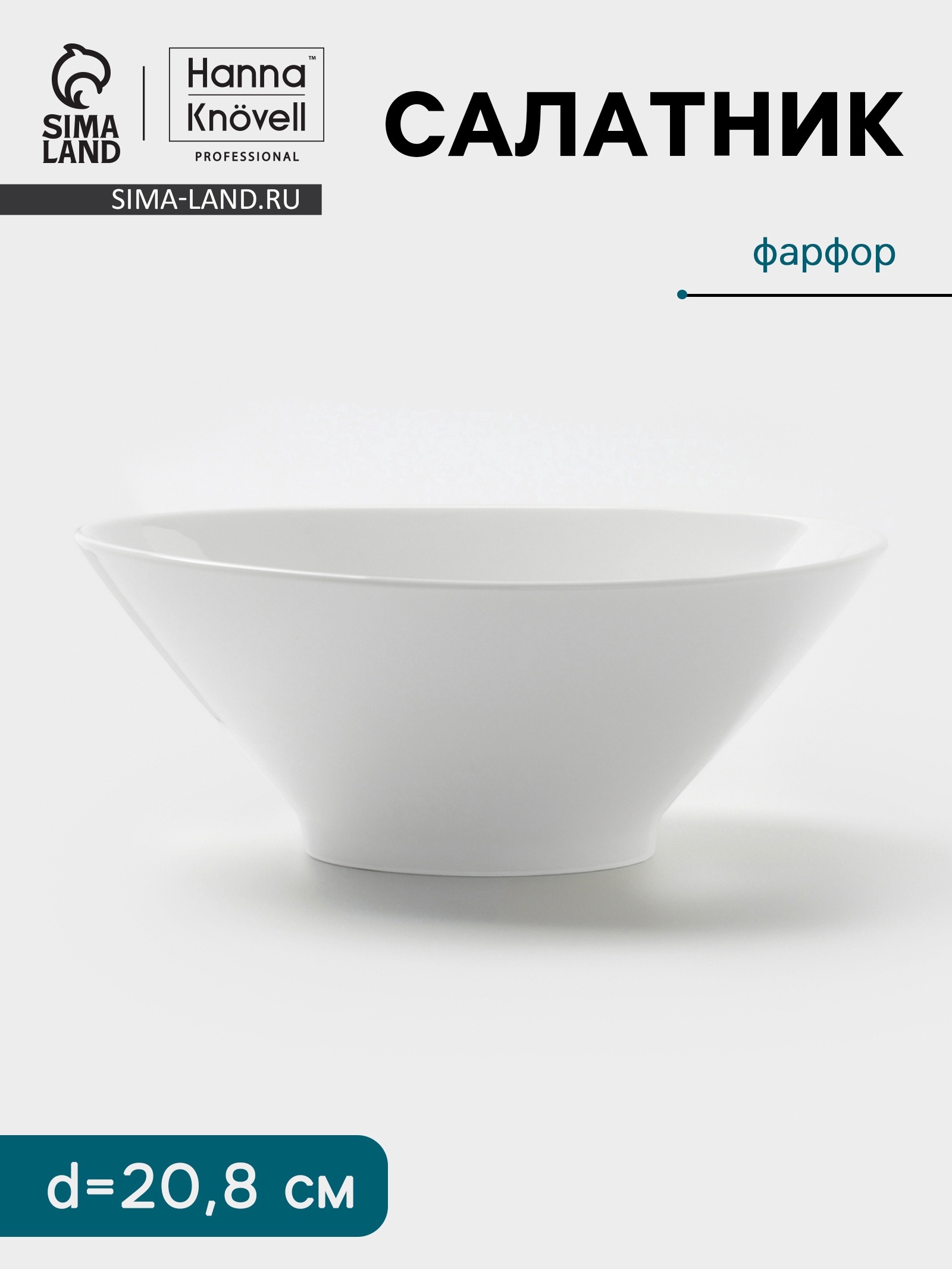 Салатник Hanna Kn Vell, 1 л, D=20.8 см, конический, фарфор, белый