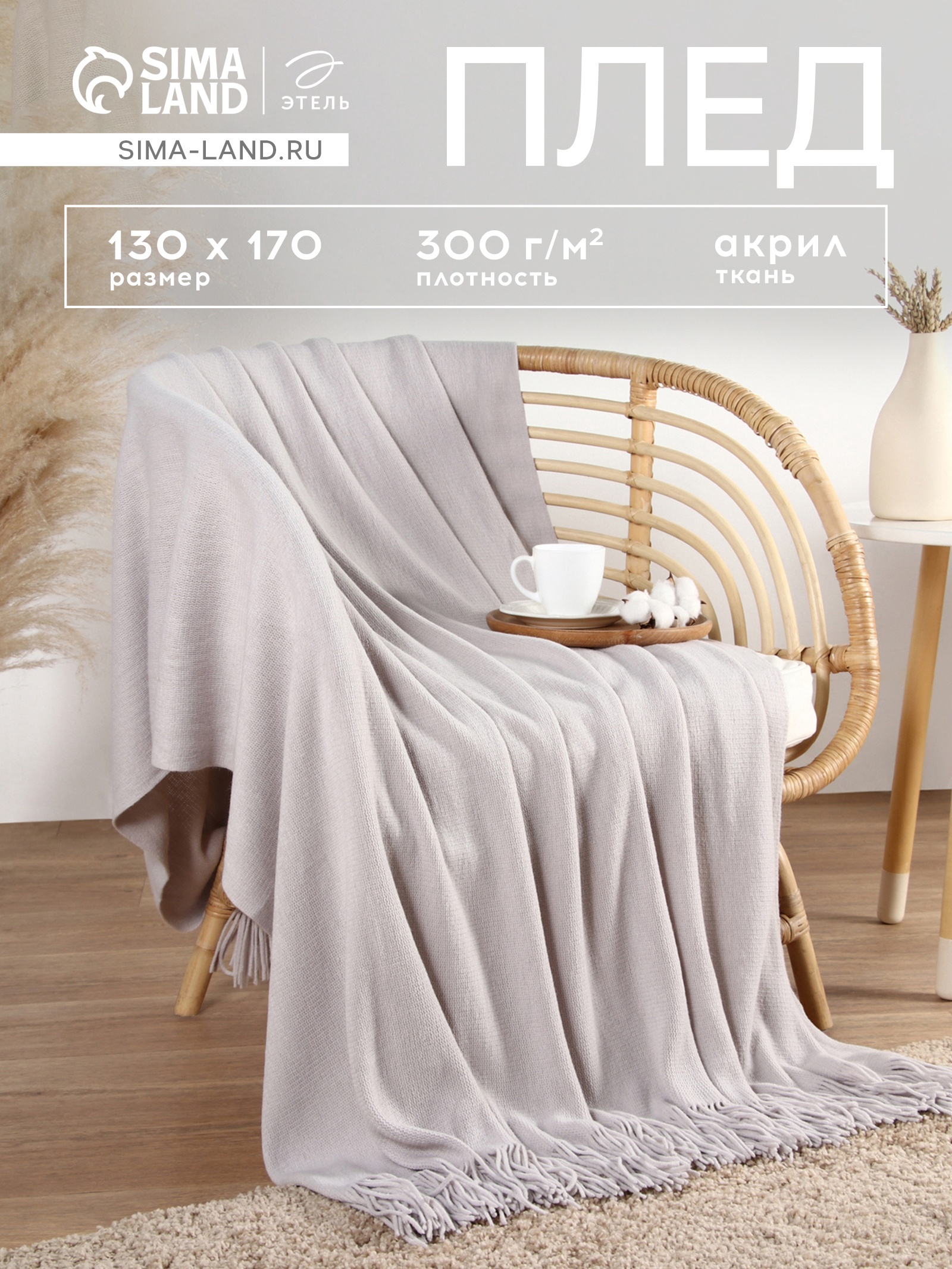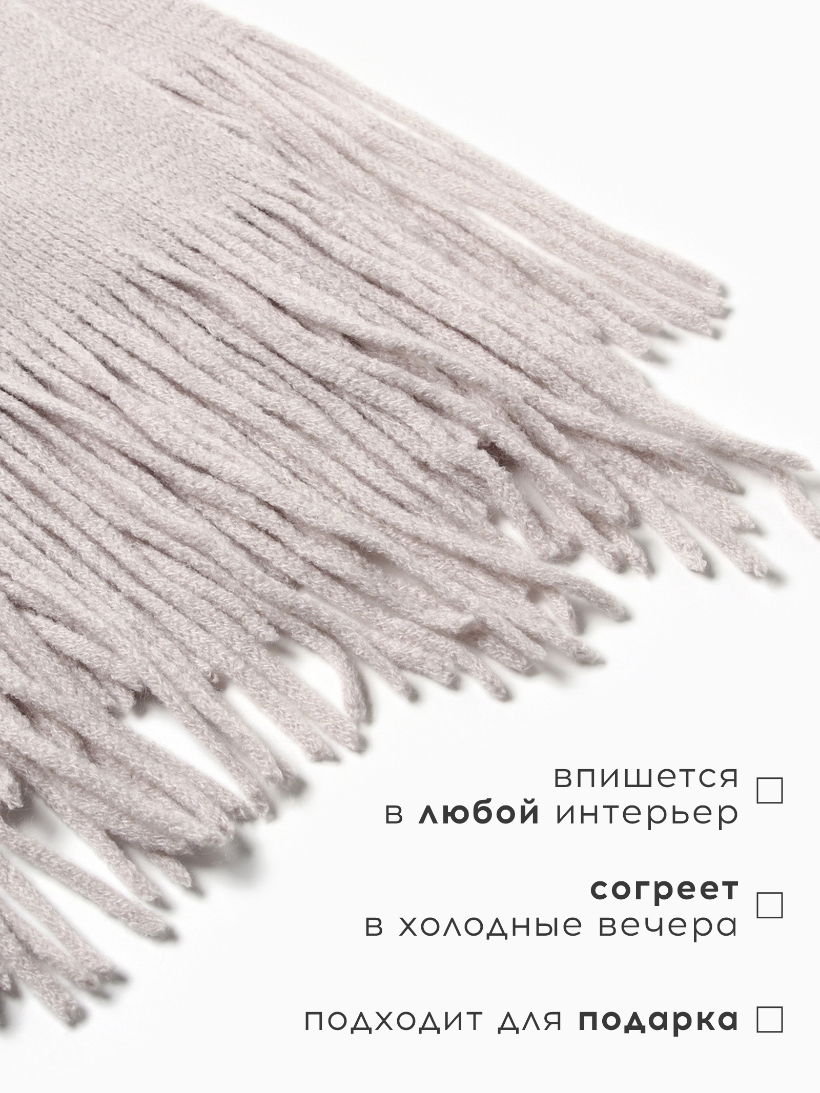 Плед с бахромой «этель» morocco, 130 170 см, акрил 100%, серый. Серый плед с декоративной бахромой создан для тех, кто ценит уют и практичность. Его габариты 130 170 см подходят для укрывания на диване или использования в качестве покрывала. Акриловое полотно средней плотности сохраняет тепло, оставаясь воздушным и мягким. Особенности Плотность 300 г/м обеспечивает оптимальный баланс между теплосбережением и легкостьюКлассическая бахрома по периметру придает законченный вид и текстильную выразительностьСерый цвет универсально сочетается с различными стилями интерьераПростой уход: деликатная стирка при 30°С сохраняет форму и цвет изделияКомфорт в деталях Акриловое волокно придает пледу мягкость, сравнимую с натуральной шерстью, но без склонности к скатыванию. Плед не вызывает аллергии, сохраняет форму после многократных стирок и быстро сохнет. Бахрома обработана особым способом, что предотвращает ее скручивание и осыпание. Для дома и отдыха Идеален для вечернего отдыха на диване, создания уютной атмосферы в гостиной или спальне. Компактные размеры позволяют брать плед с собой на дачу или пикник. Нейтральный серый цвет гармонирует с большинством цветовых палитр в интерьере. Практичность использования Благодаря составу из 100% акрила плед не требует специального ухода, сохраняет презентабельный вид после множества стирок. Не выцветает на солнце и сохраняет первоначальную мягкость в течение всего срока службы. Легко складывается и хранится без особых требований к условиям. Цвет:Серый|Ткань:Акрил|Плотность, г/м :300|Размер, см:130 х 170|Наличие рукавов:Нет|Тематика:Однотонная|Декоративные элементы:Бахрома|Рекомендации по уходу:Деликатный режим отжима|Рекомендации по уходу:Деликатная стирка при 30 °С|Рекомендации по уходу:Не отбеливать|Состав ткани:Акрил|Размер постельного белья:1.5-спальное|Страна:Россия  развернуть описание ▼