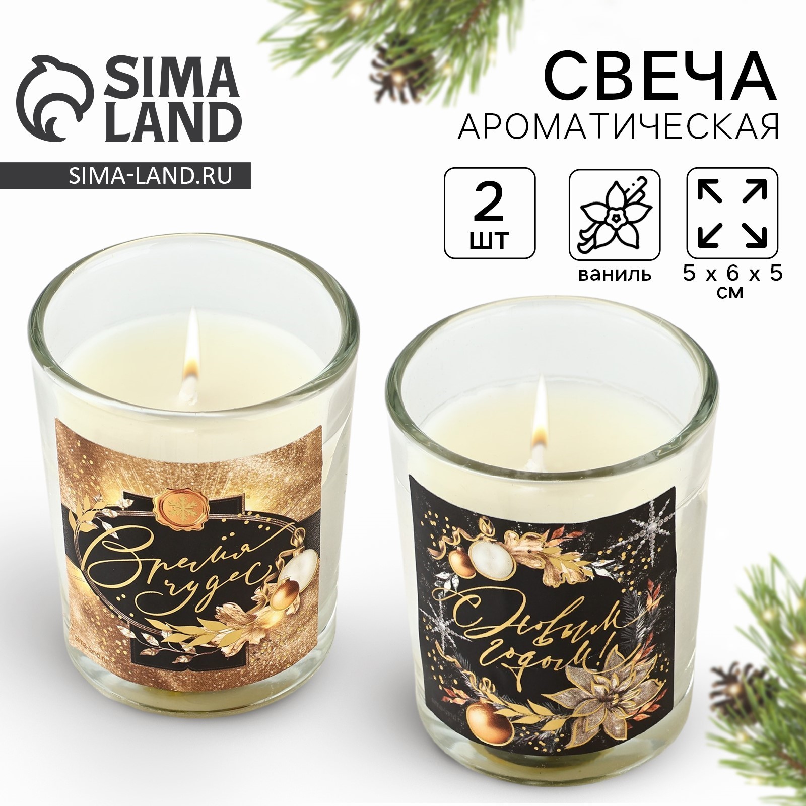 Набор свечей ароматических в стакане «с новым годом!», 2 шт., ваниль, 5 6 5 см.