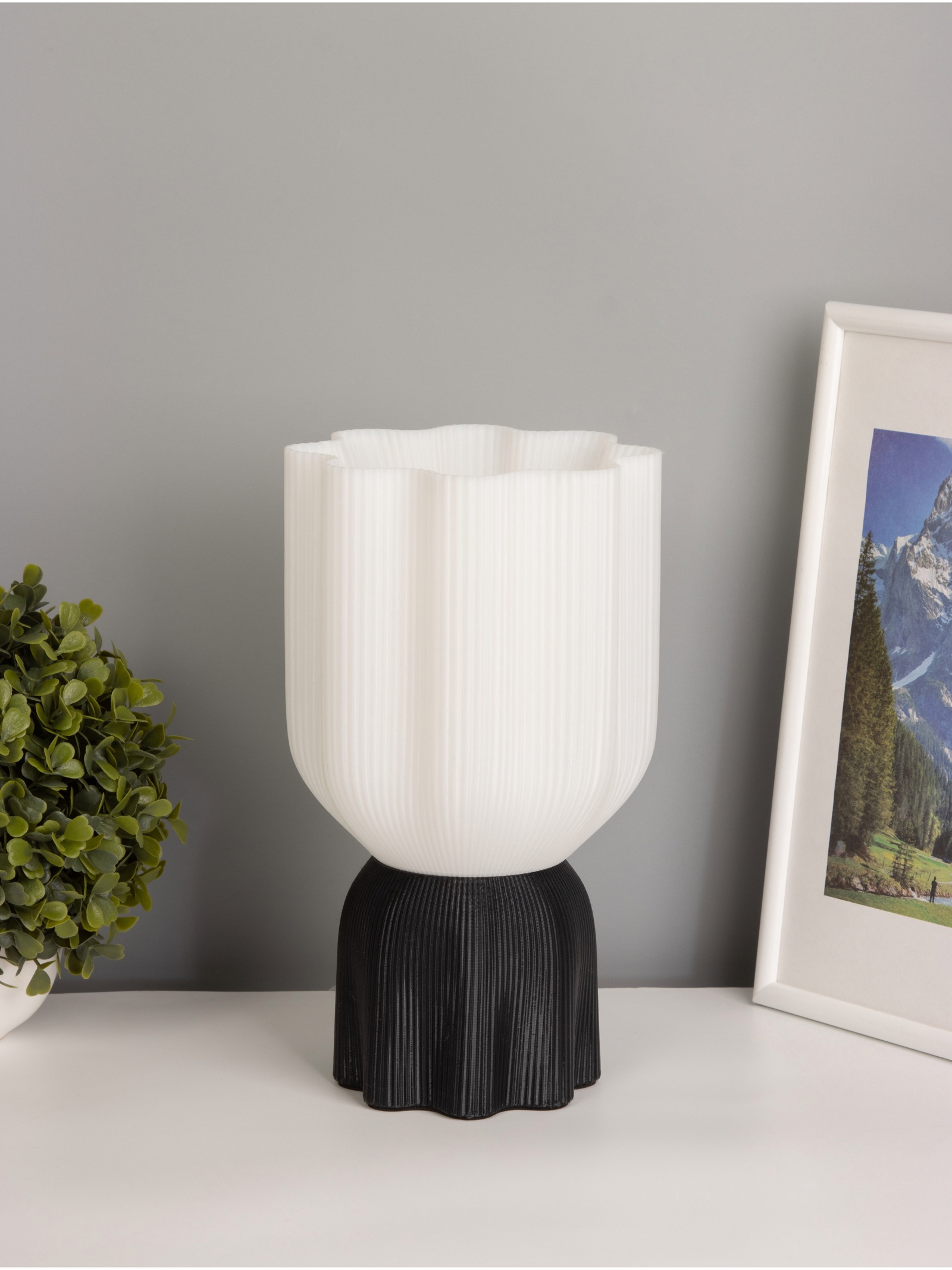 Светильник настольный «цикл» 1 10 вт е27 провод 1.7 м 15 15 27 см. Современный настольный светильник с абажуром станет стильным дополнением вашего интерьера. С компактными размерами 15х15х27 см и элегантным черным пластиковым основанием, он идеально впишется в любое пространство, добавляя нотки минимализма и современности. Фигурный белый рассеиватель мягко распределяет свет, создавая комфортную атмосферу для чтения, работы или отдыха. Ключевые характеристики Энергоэффективная мощность 10 Вт обеспечивает достаточное освещение для различных задач. Совместимость с лампами типа E27 позволяет выбрать источник света по вашему вкусу. Длина провода 1,7 м предоставляет гибкость в размещении светильника в помещении.Стиль и функциональность Этот светильник не только освещает пространство, но и служит стильным элементом декора. Его современный дизайн и нейтральные цвета делают его универсальным для любого интерьера. Используйте его в спальне, гостиной или офисе, чтобы создать атмосферу уюта и комфорта, где приятно проводить время. Вид лампы:Накаливания|Количество ламп:1|Цоколь:E27|Длина, см:15|Ширина, см:15|Высота, см:27|Мощность на цоколь, Вт:10|Гарантийный срок, мес.:24|Материал основания:Пластик|Цвет основания:Чёрный|Тип рассеивателя:Абажур|Особенности светильника:Геометрия|Оттенок рассеивателя:Светлые тона|Материал рассеивателя:Пластик|Управление светильником:С выключателем на проводе|Форма рассеивателя:Фигурная|Направление рассеивателя:Вверх|Цвет рассеивателя:Белый|Тип питания:От сети 220 В|Тип источника освещения:Лампа не в комплекте|Страна:Китай  развернуть описание ▼