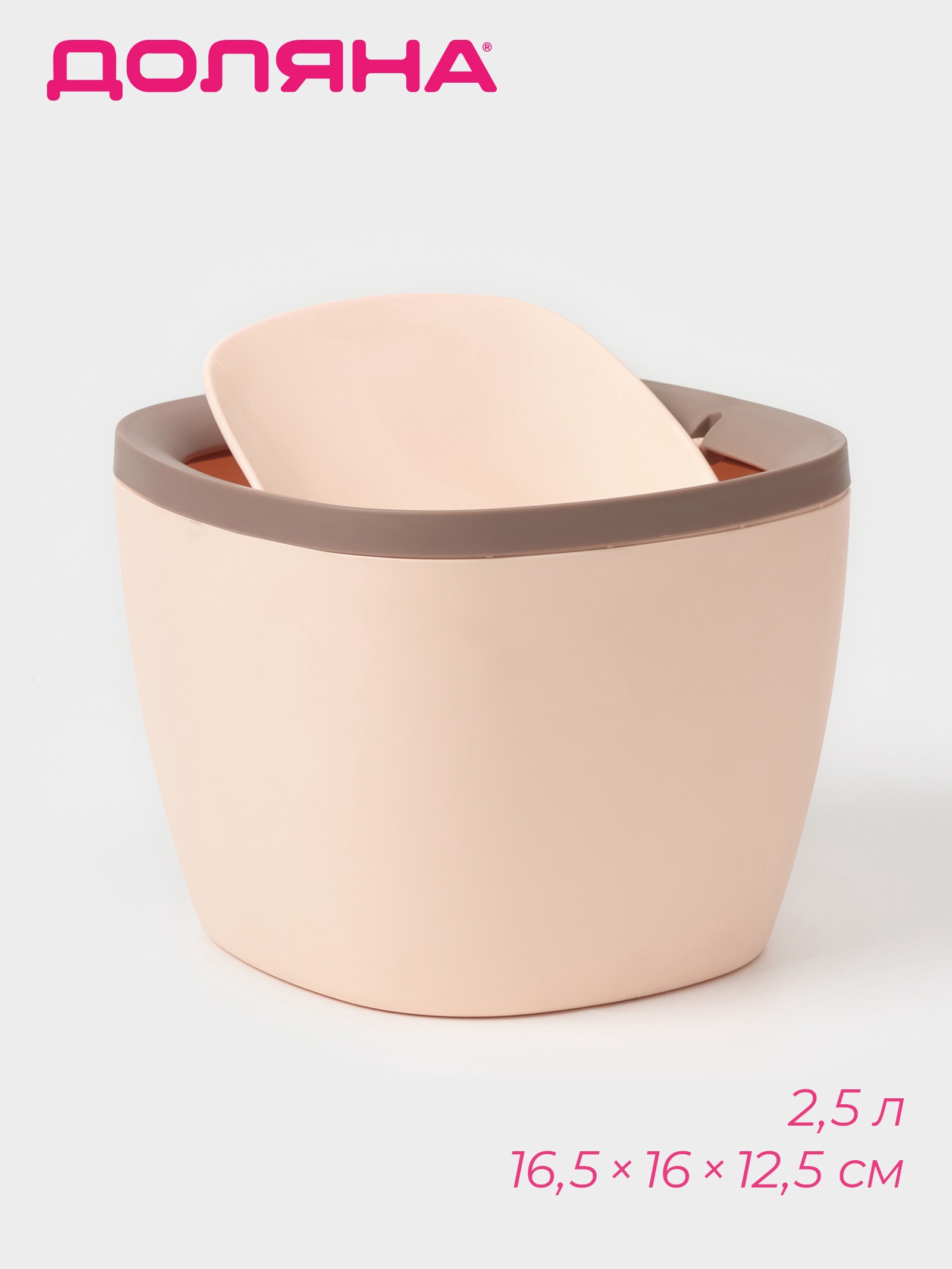 Мусорное ведро настольное доляна «сантор», пластик, 2.5 л, 16.5 16 12.5 см, бежевое. Цвет:Бежевый|Высота, см:16.5|Объём, л:2.5|Рисунок:Нет|Крышка:Да|Материал:Пластик|Отжим:Нет|Складной:Нет|Слив (носик):Нет|Страна:Китай