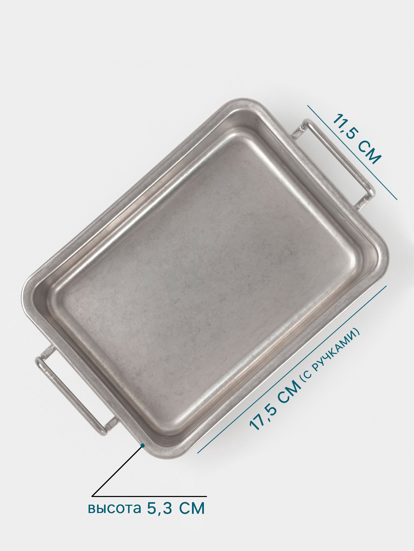 Противень для подачи hanna kn vell vanha, 17.5 11.5 5.3 см, нержавеющая сталь, серебристый. Прямоугольный противень из нержавеющей стали – это идеальный выбор для подачи закусок, десертов или горячих блюд. Его серебристый цвет и лаконичный дизайн легко впишутся в любой интерьер, добавляя элегантности вашему столу. Преимущества: Удобство в использовании: благодаря прямоугольной форме и объему 0,5 л, вы сможете разместить на противне разнообразные угощения, от нарезки до запеченных блюд.Лёгкость в уходе: изделие можно мыть в посудомоечной машине.Качество материалов: нержавеющая сталь обеспечивает долговечность и устойчивость к коррозии, что делает противень надежным помощником на кухне.Стильный акцент: серебристый цвет и отсутствие рисунка позволяют использовать его как в повседневной жизни, так и на торжественных мероприятиях.Противень станет незаменимым аксессуаром для тех, кто ценит красоту подачи и практичность! Набор:Нет|Цвет:Серебристый|Объём, л:0.5|Рисунок:Нет|Крышка:Нет|Материал:Нержавеющая сталь|Разъёмная форма:Нет|Можно мыть в посудомоечной машине:Да|Страна:Китай  развернуть описание ▼