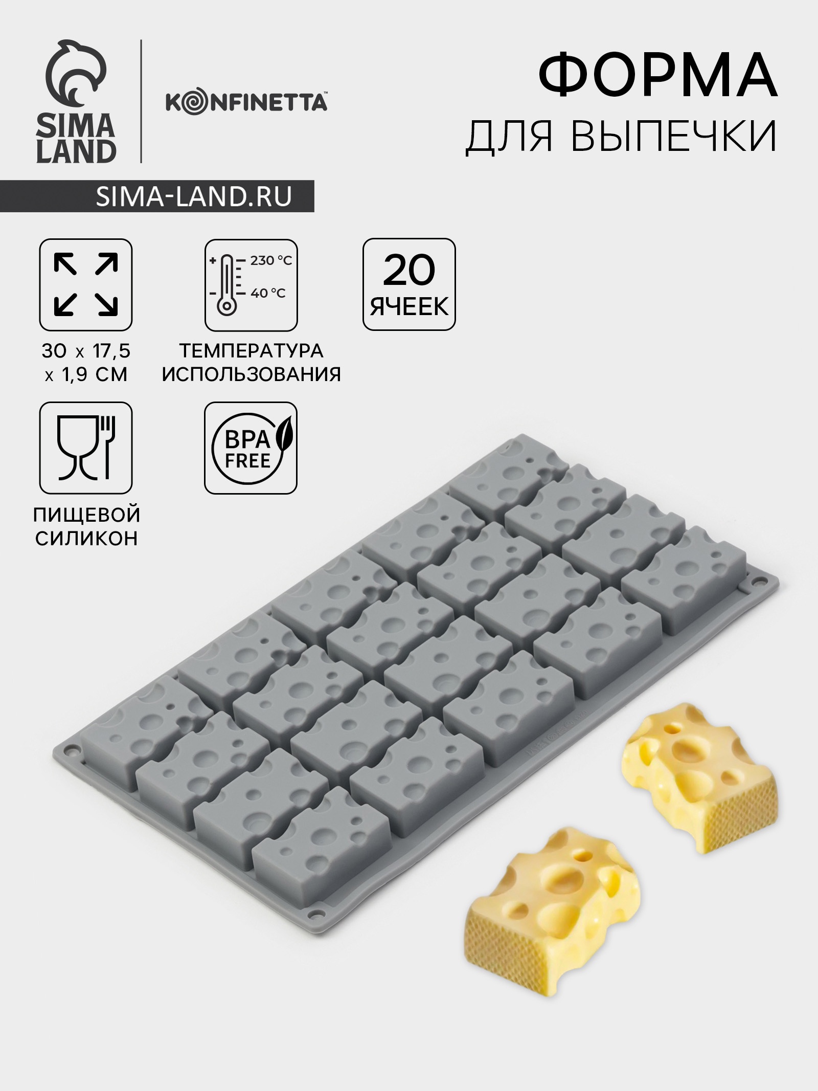 Форма для выпечки и муссовых десертов Konfinetta «сыр», силикон, 20 ячеек (5 3 см), 30 17.5 1.9 см, серая