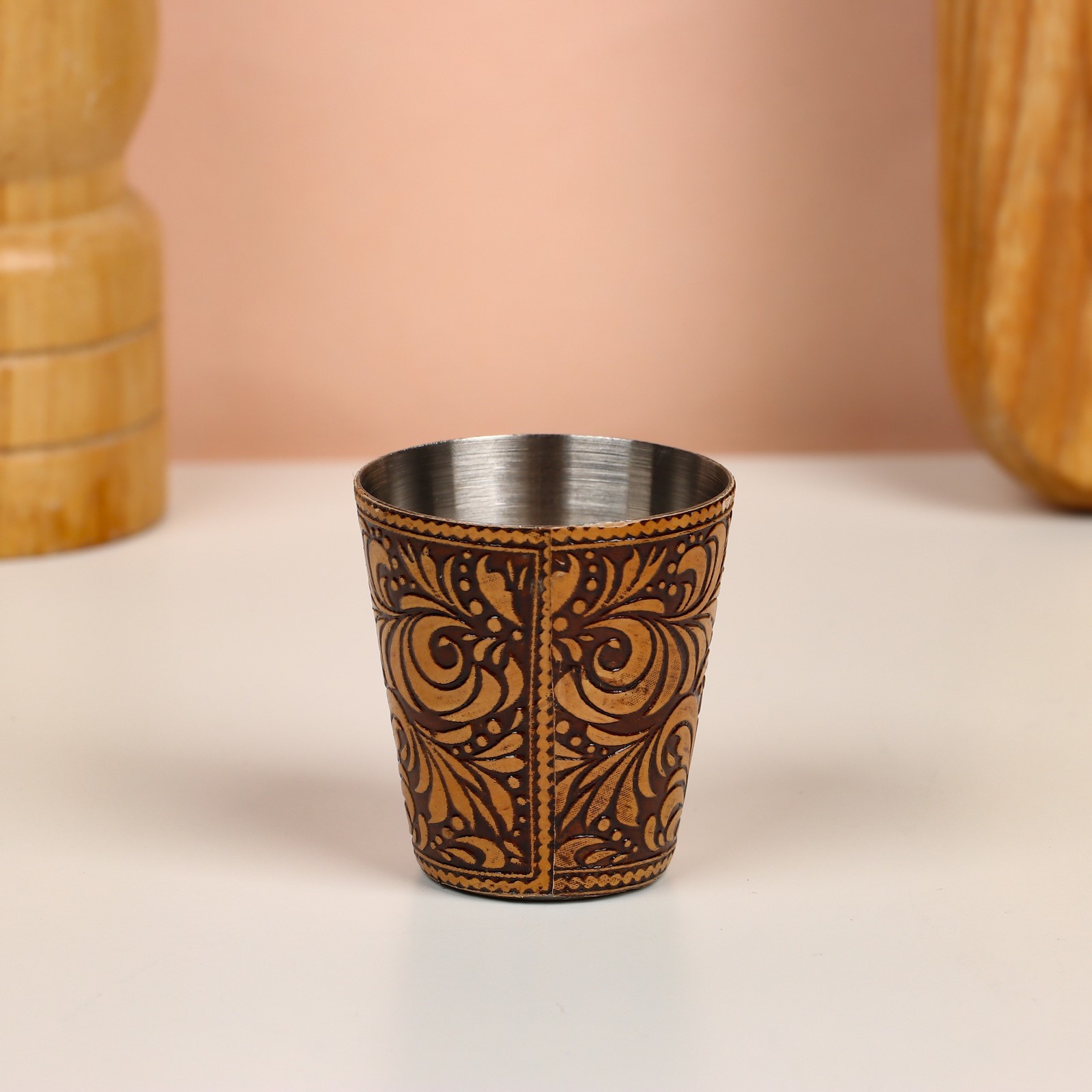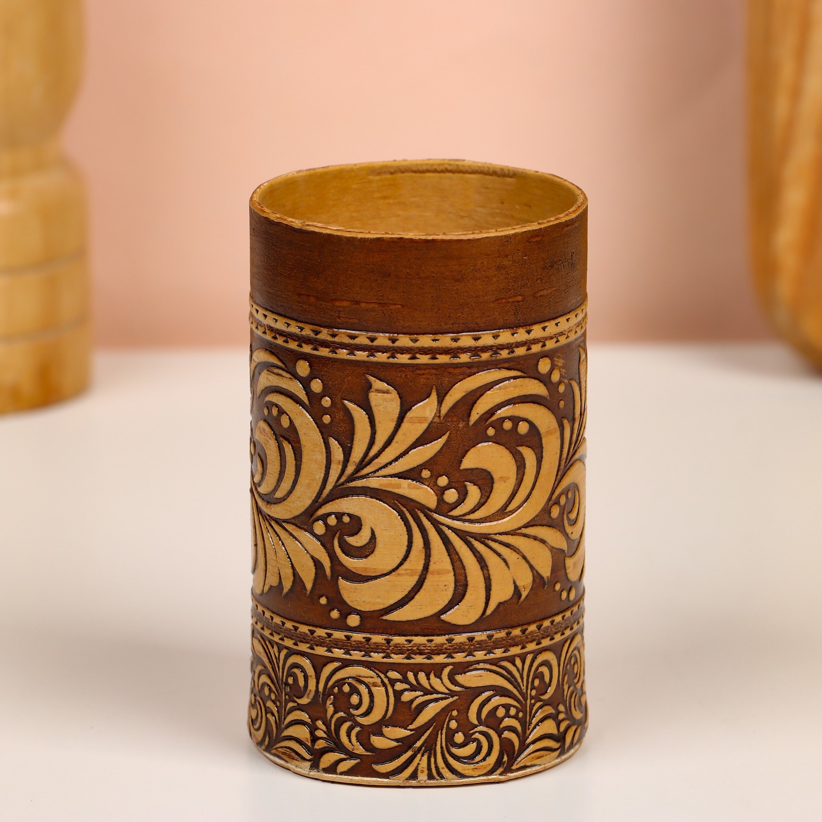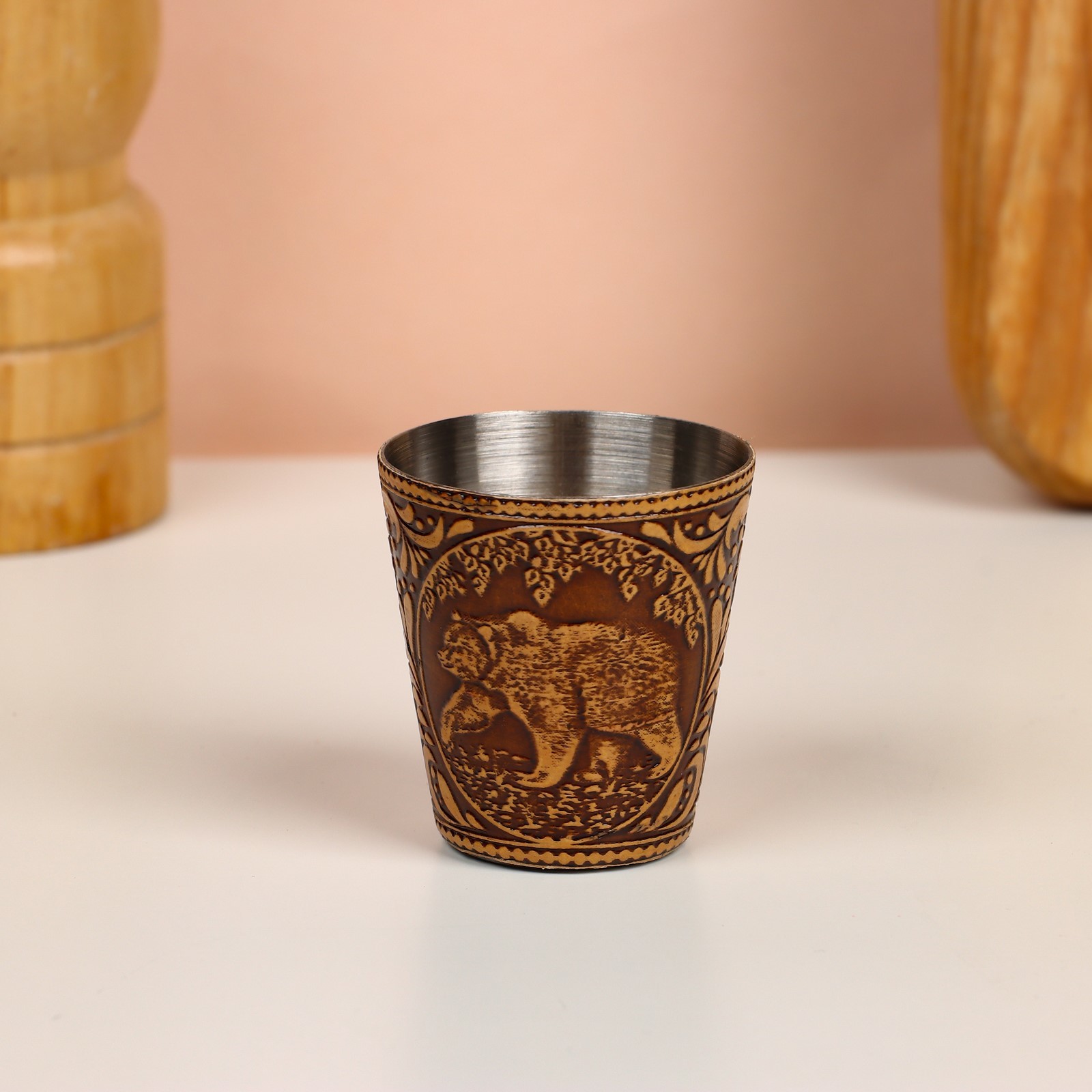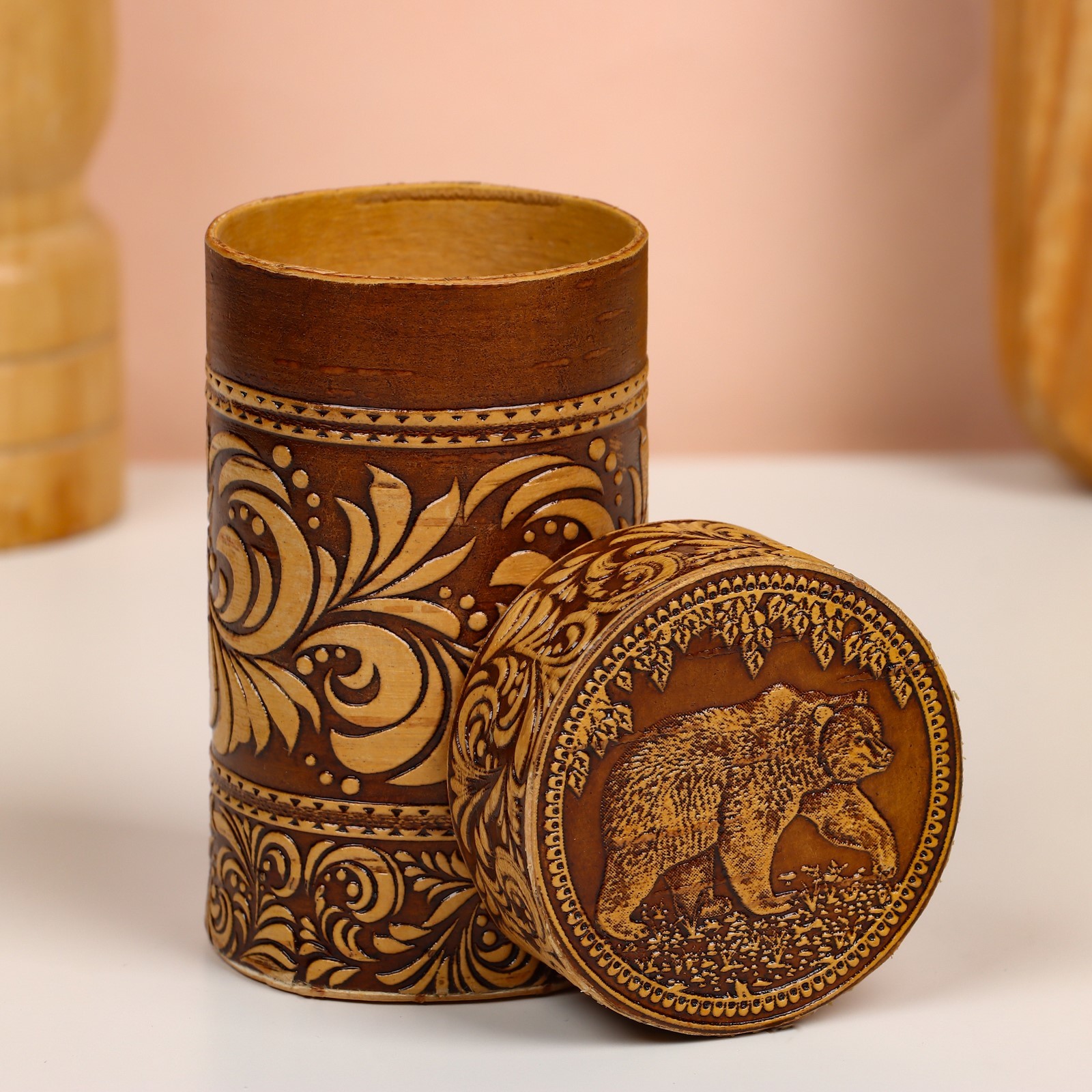 Набор стопок «медведь», 4 шт, в футляре, 4,5x4,5x9 см, береста