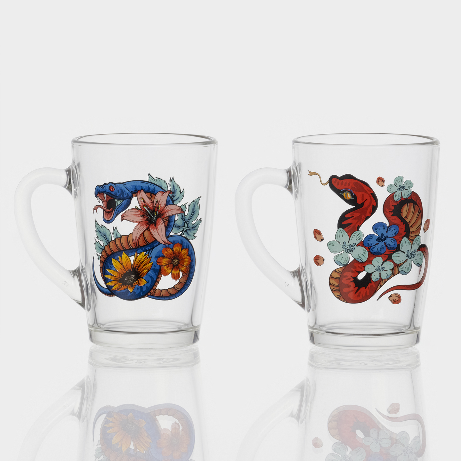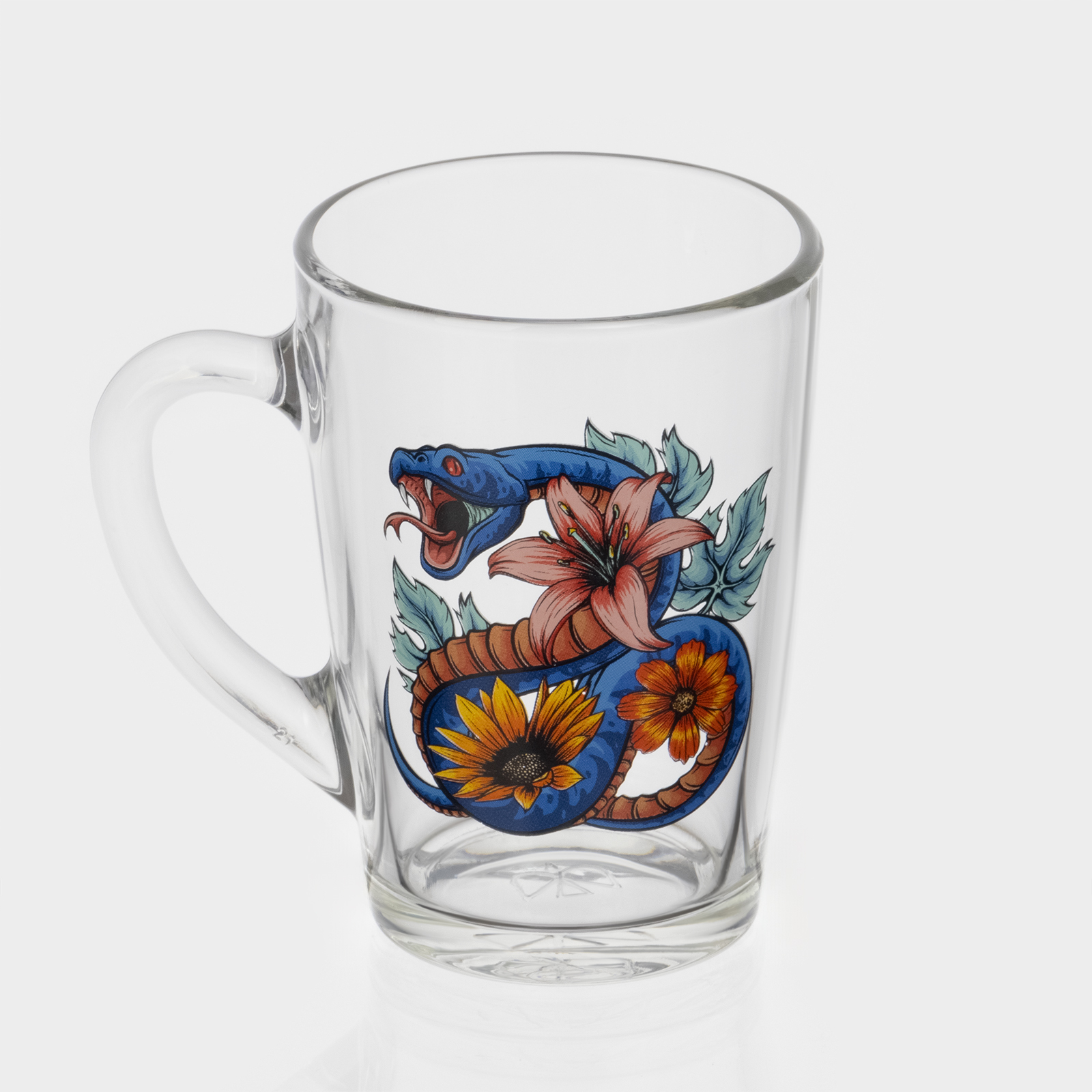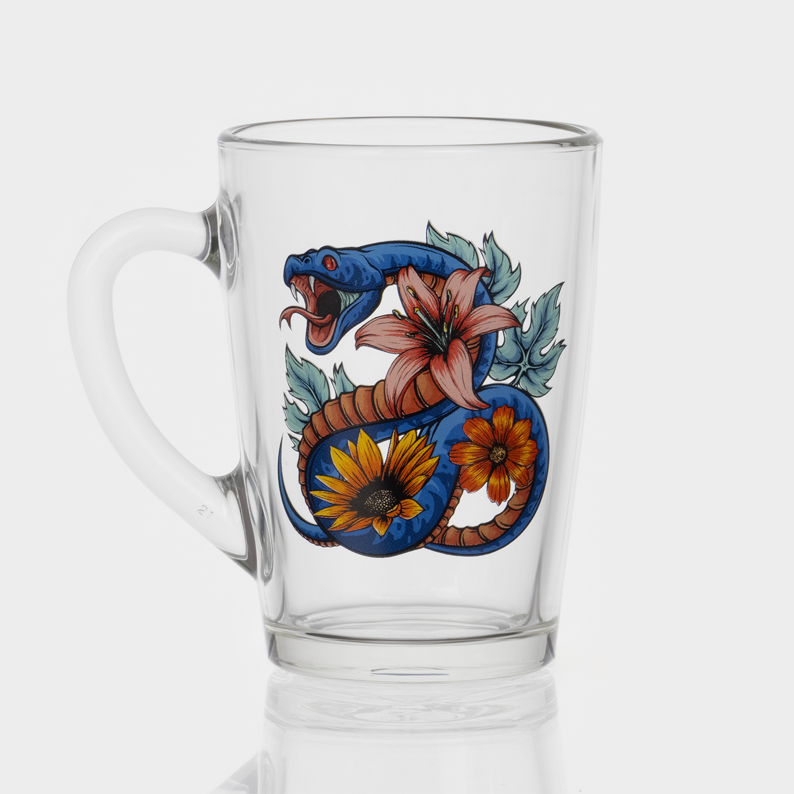 Кружка новогодняя стеклянная кофейная «цветы и змеи», 300 мл, микс