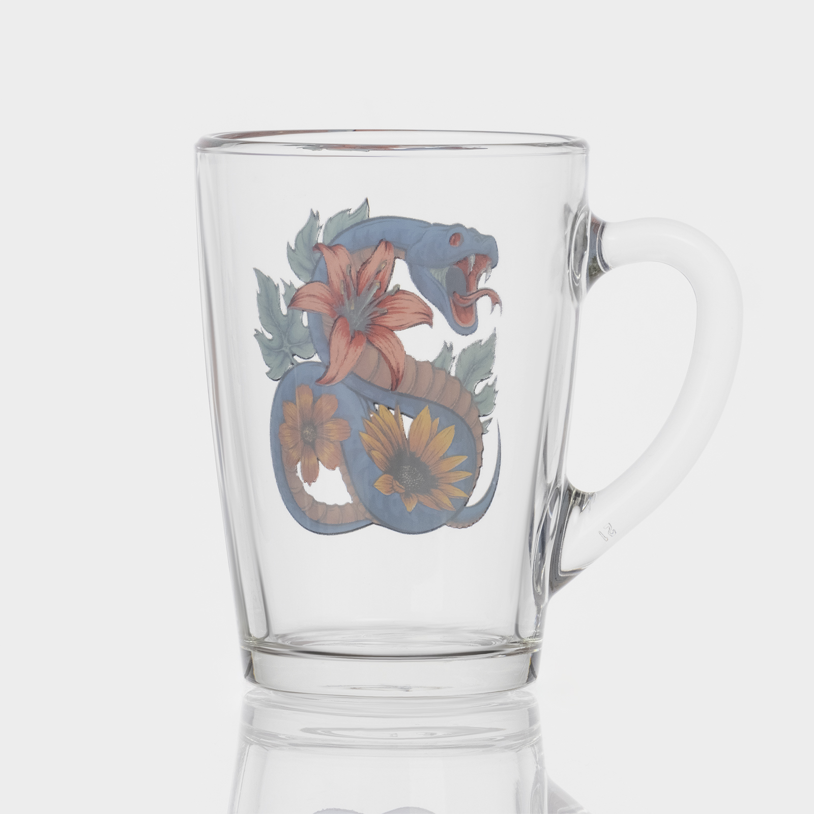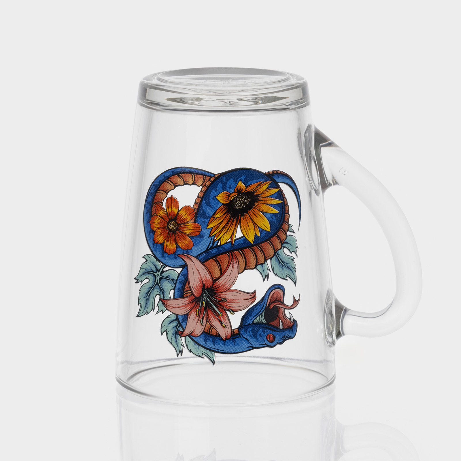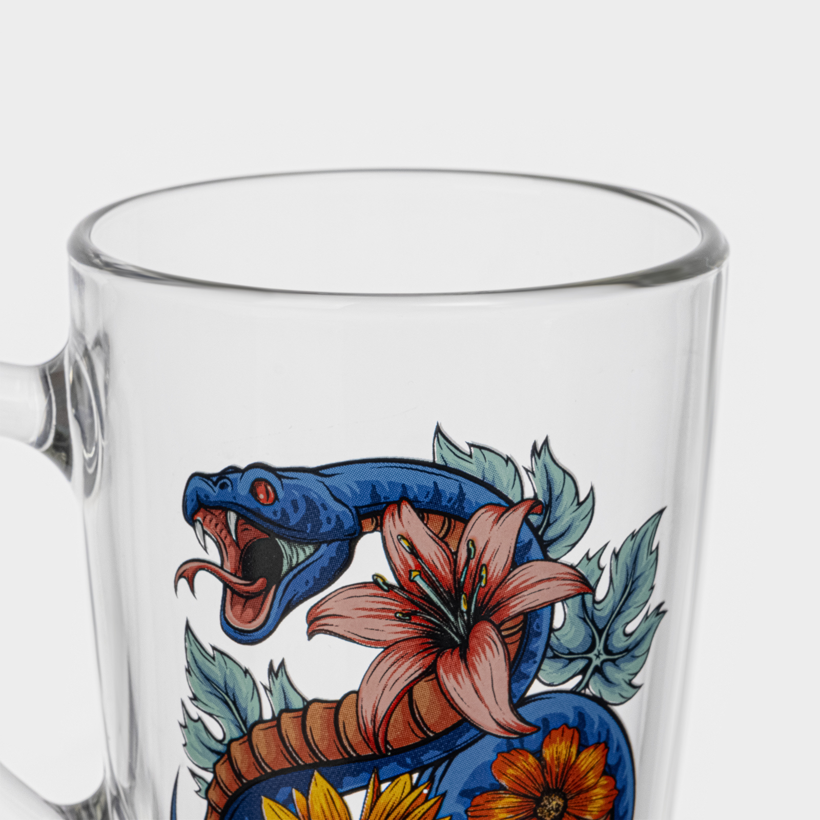 Кружка новогодняя стеклянная кофейная «цветы и змеи», 300 мл, микс