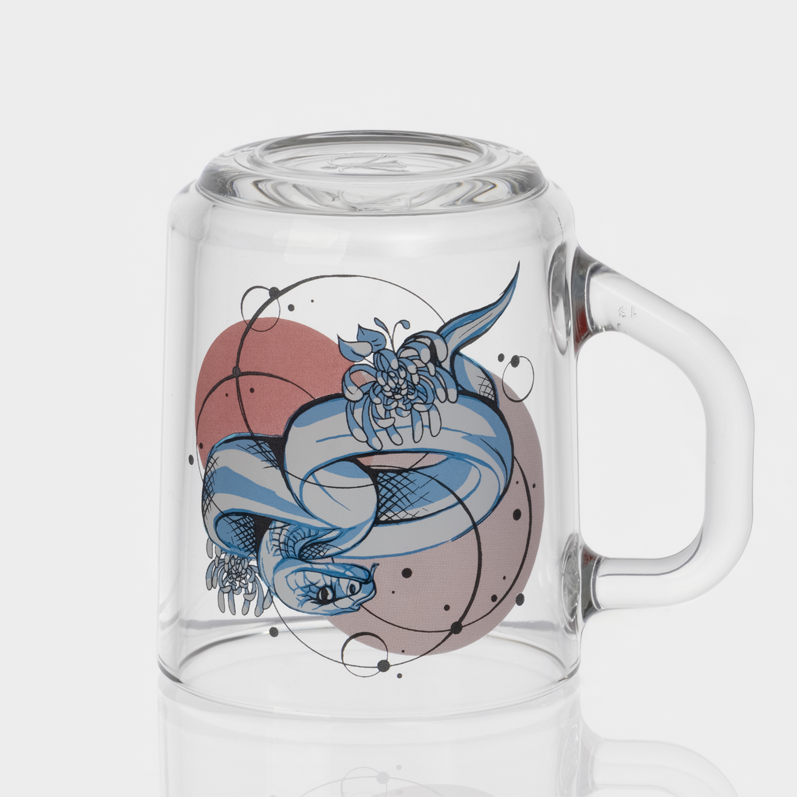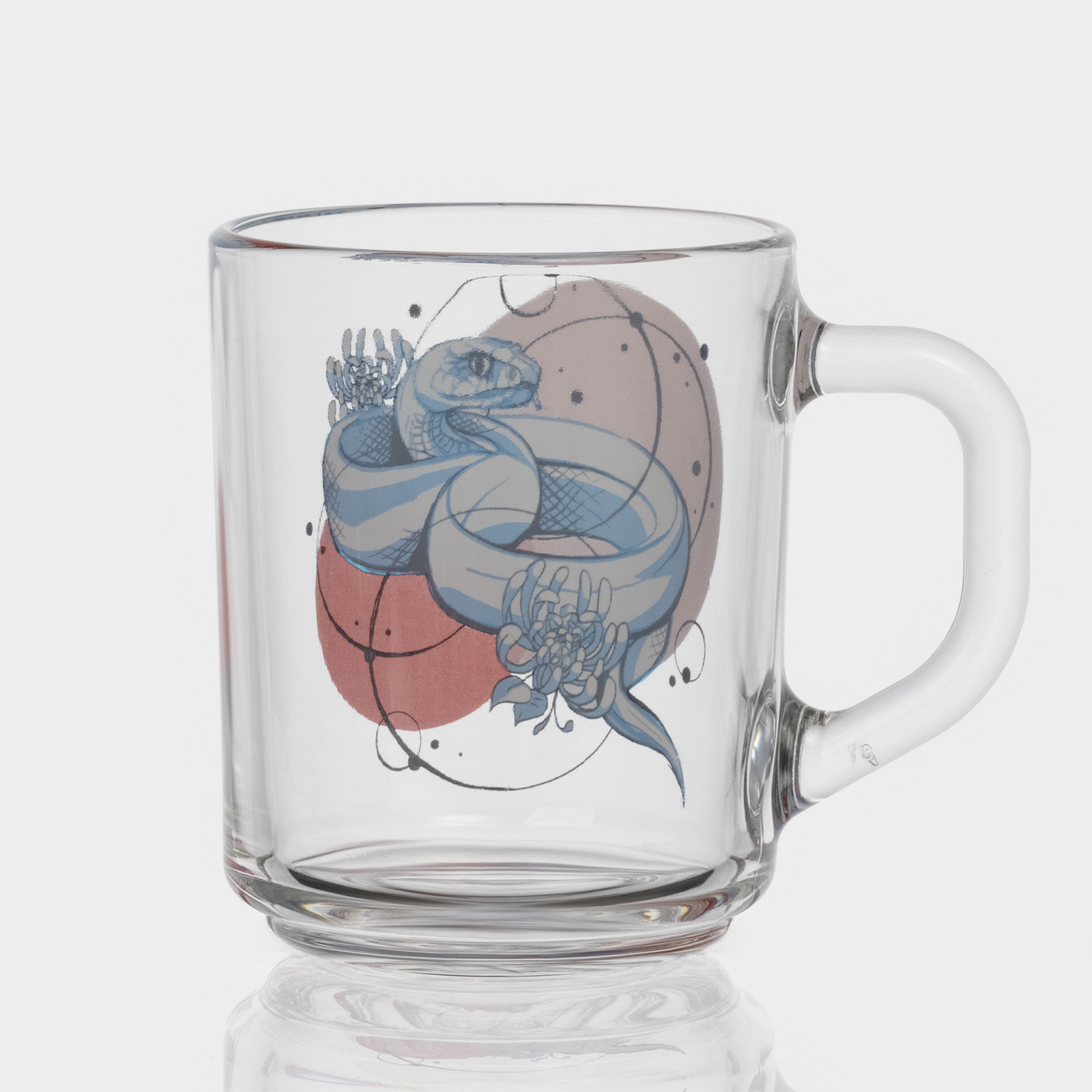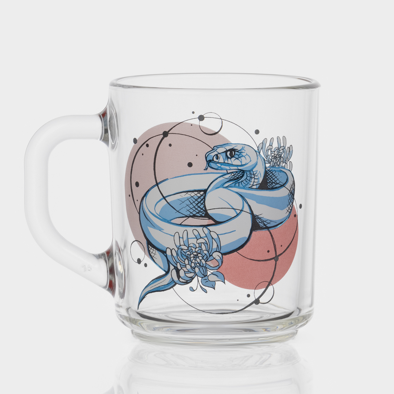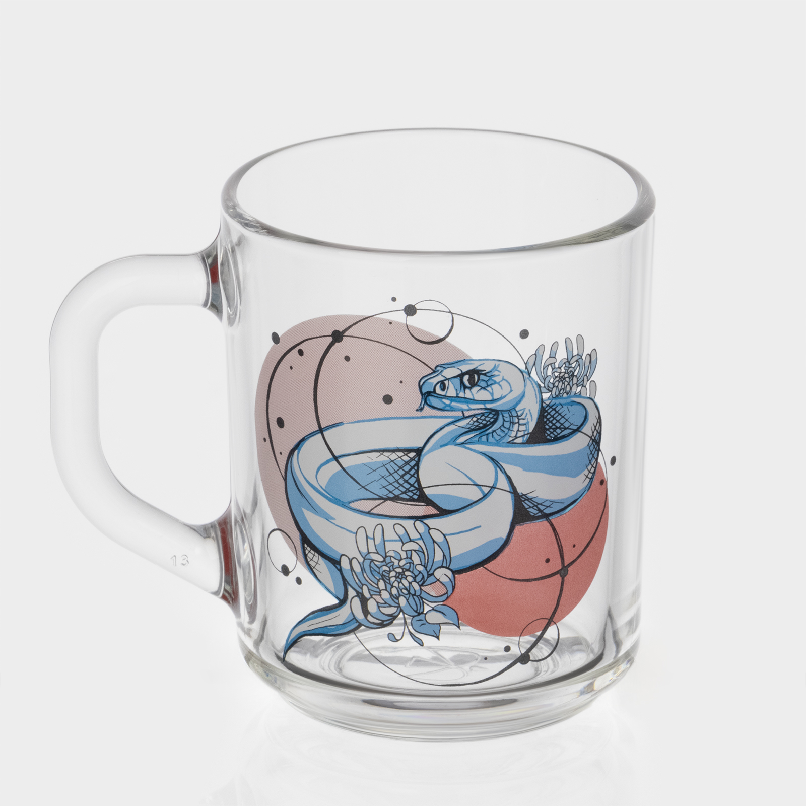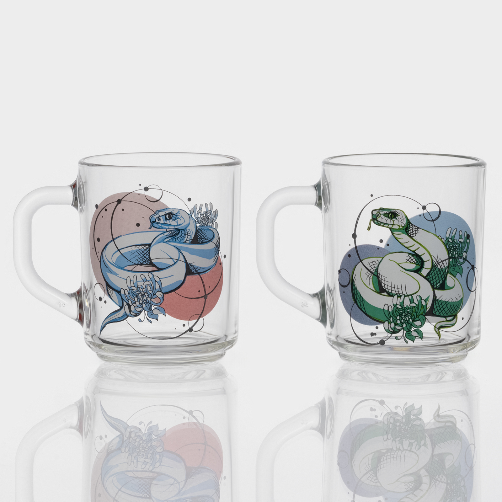 Кружка новогодняя стеклянная чайная «змеи», 200 мл, микс