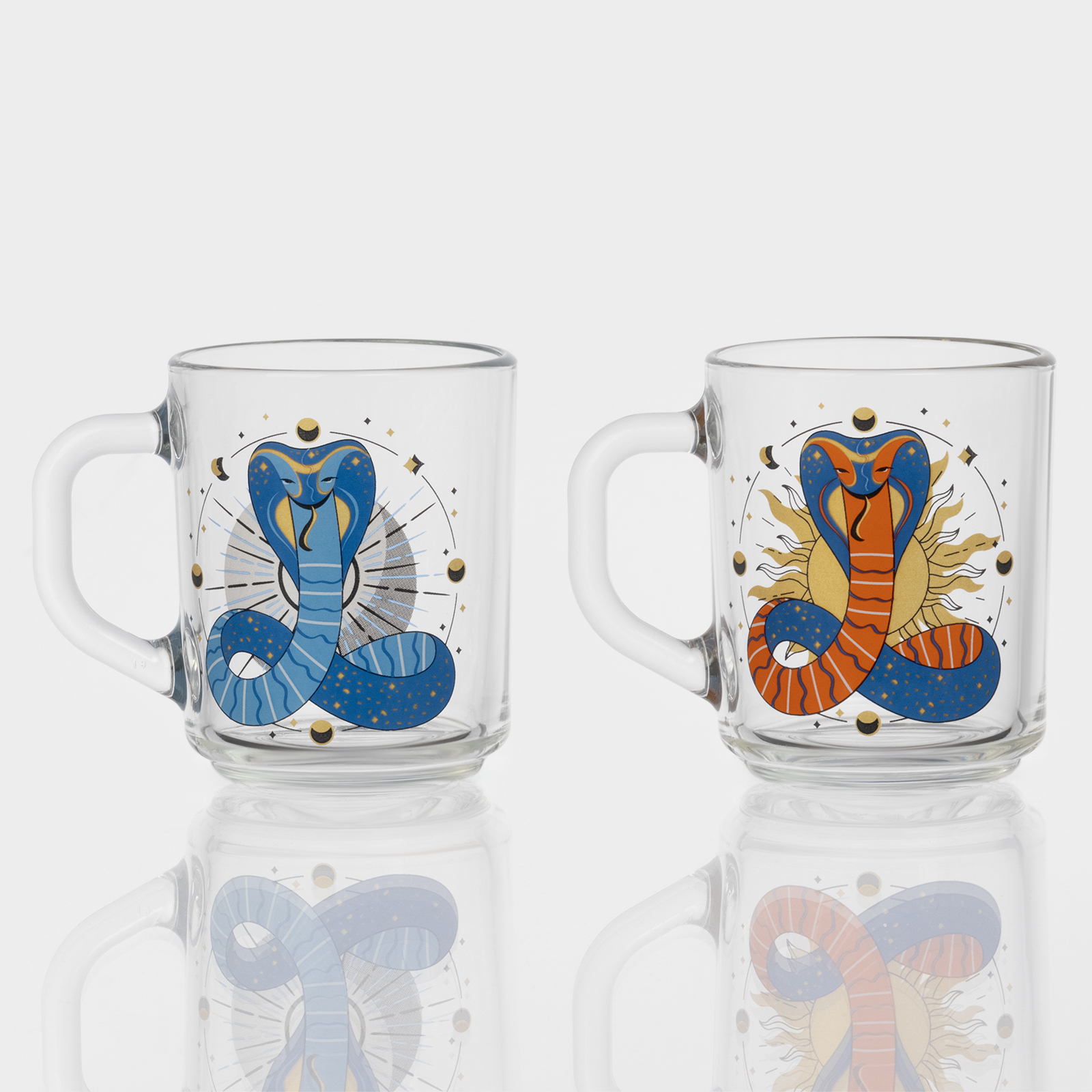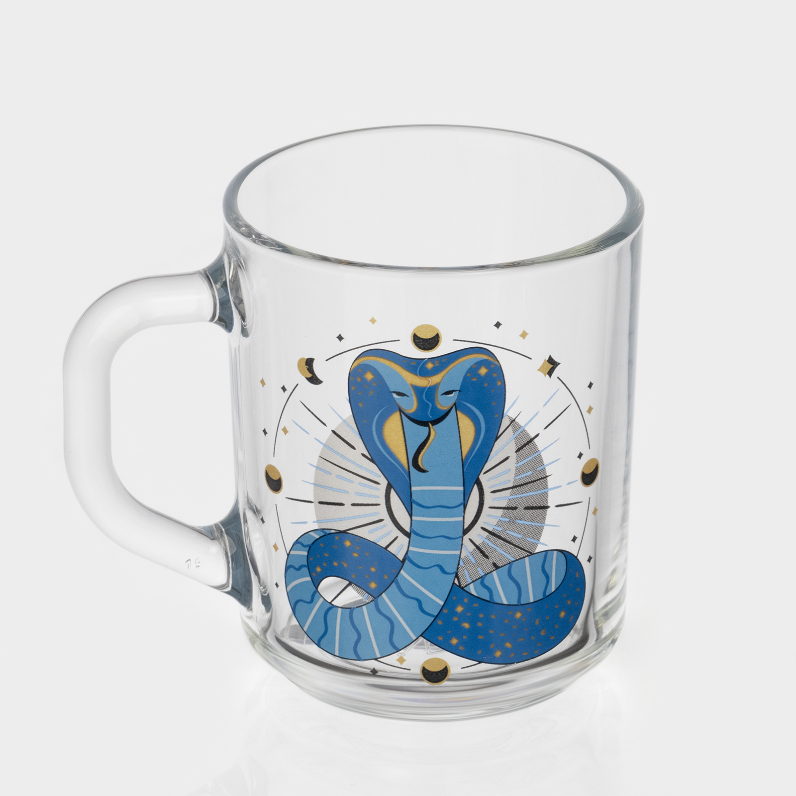 Кружка новогодняя стеклянная чайная «мистические змеи», 200 мл, микс