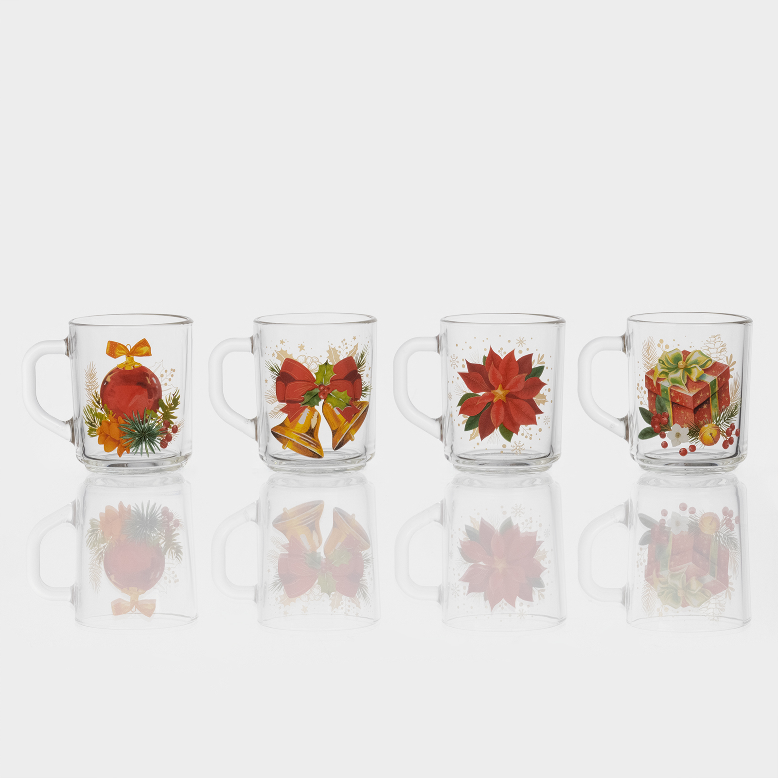Кружка новогодняя стеклянная чайная «новогодние символы», 200 мл, микс