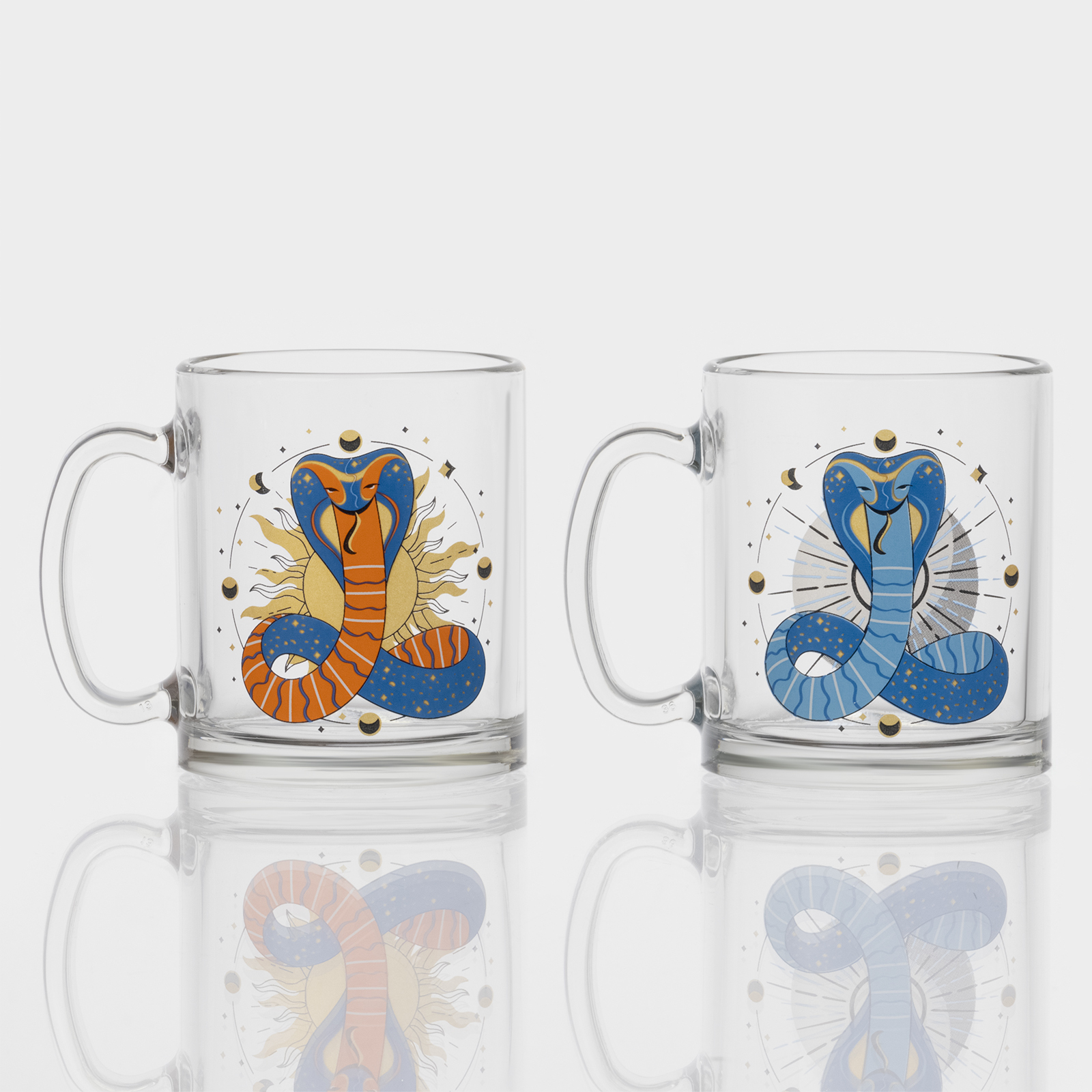 Кружка новогодняя стеклянная чайная «мистические змеи», 320 мл, микс