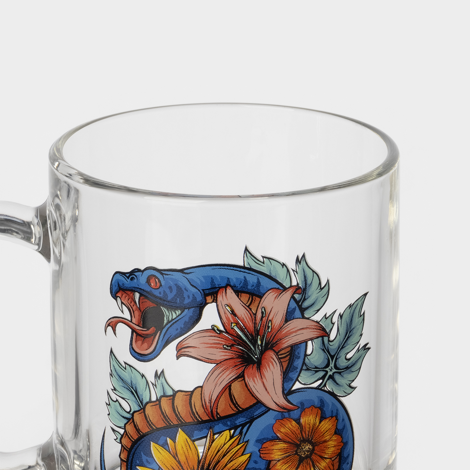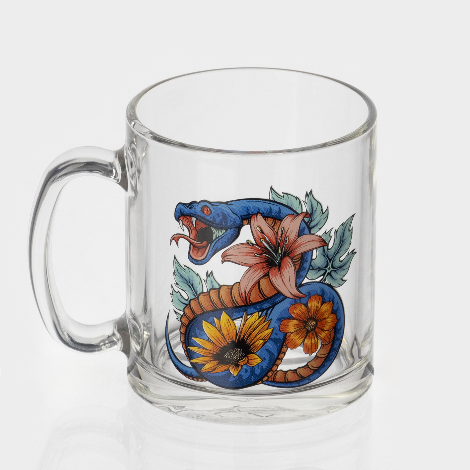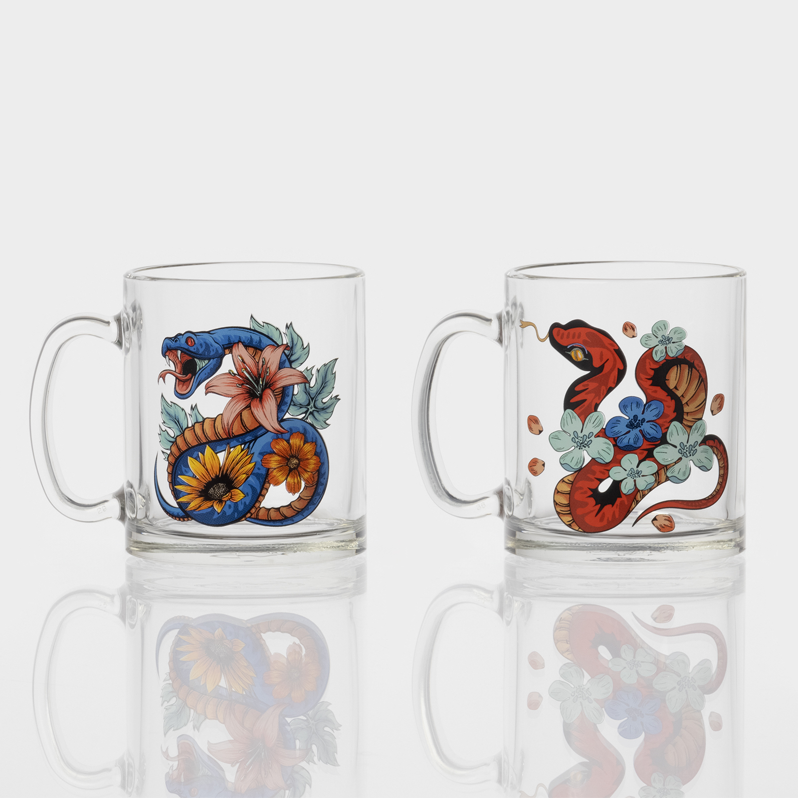 Кружка новогодняя стеклянная чайная «цветы и змеи», 320 мл, микс