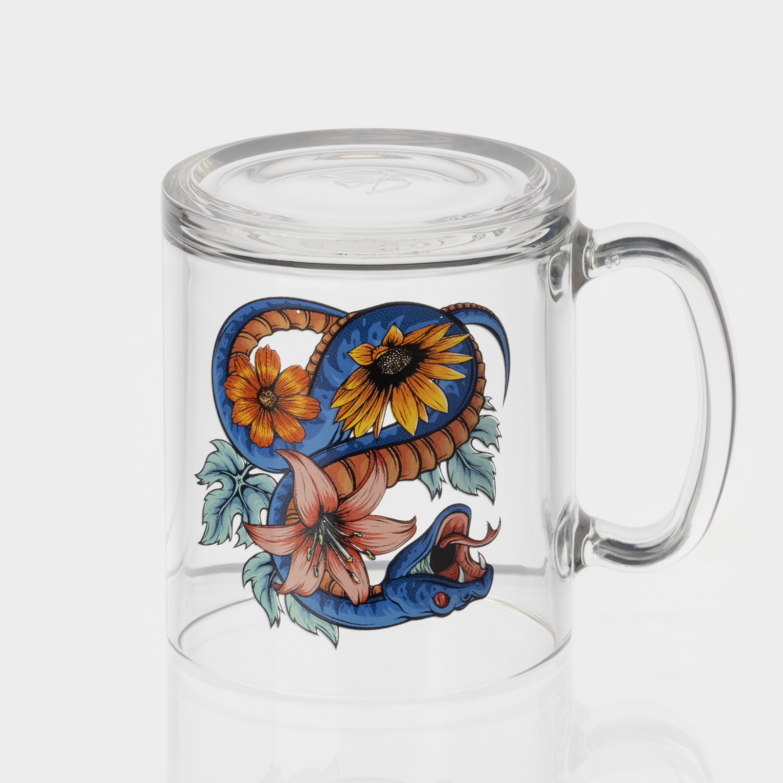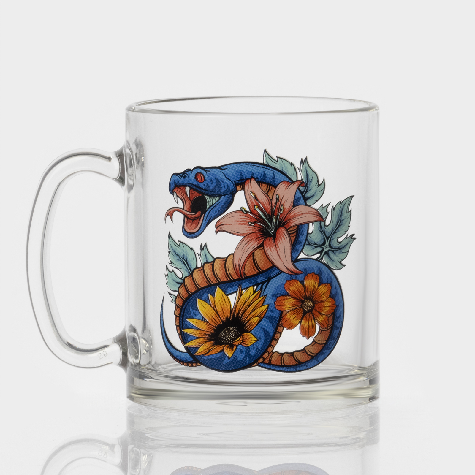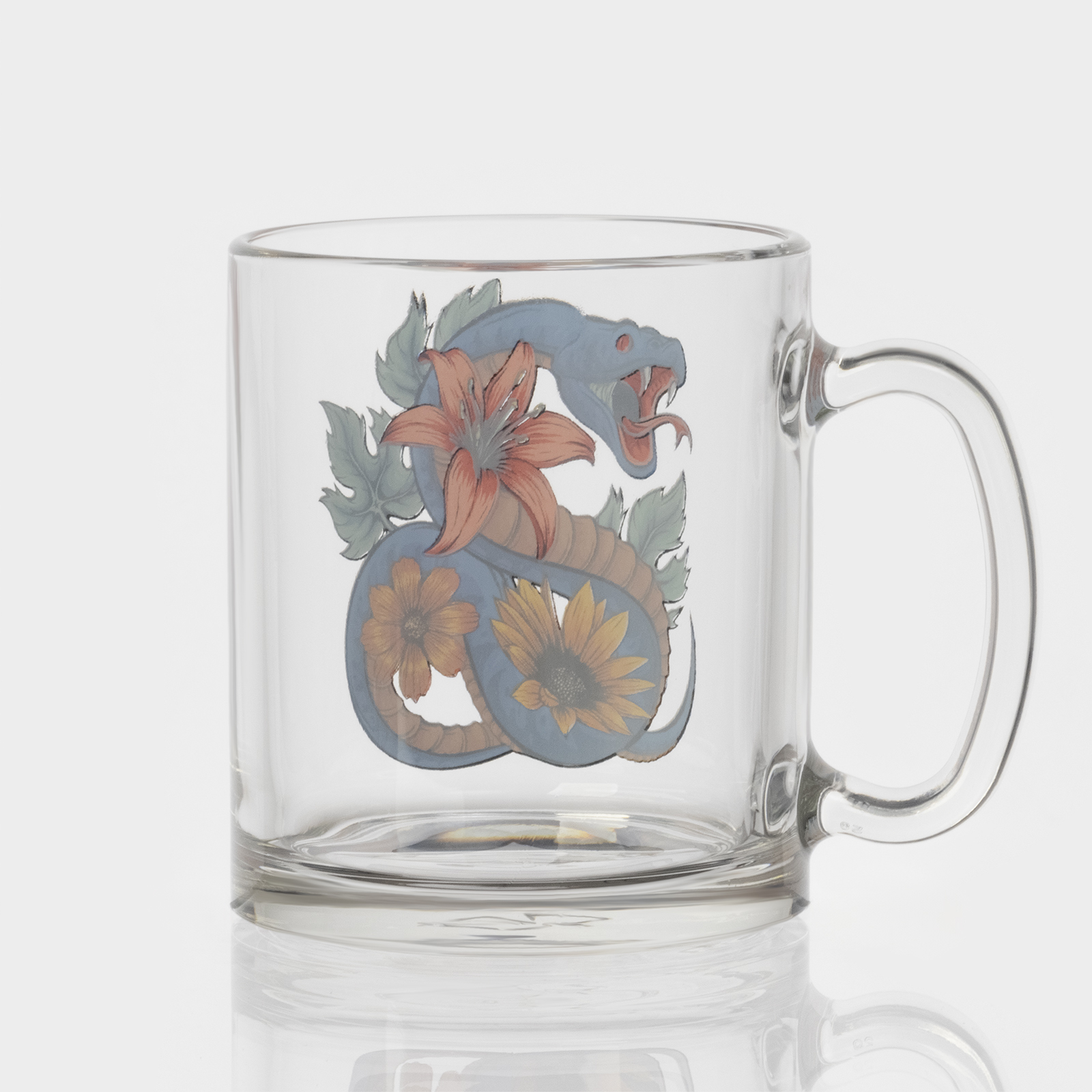 Кружка новогодняя стеклянная чайная «цветы и змеи», 320 мл, микс