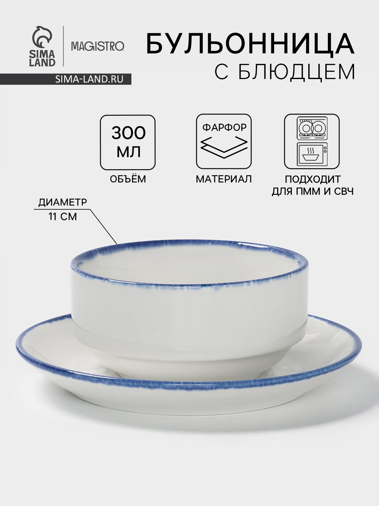 Бульонница с блюдцем Magistro Blue Lagoon, 300 мл, фарфор, белая