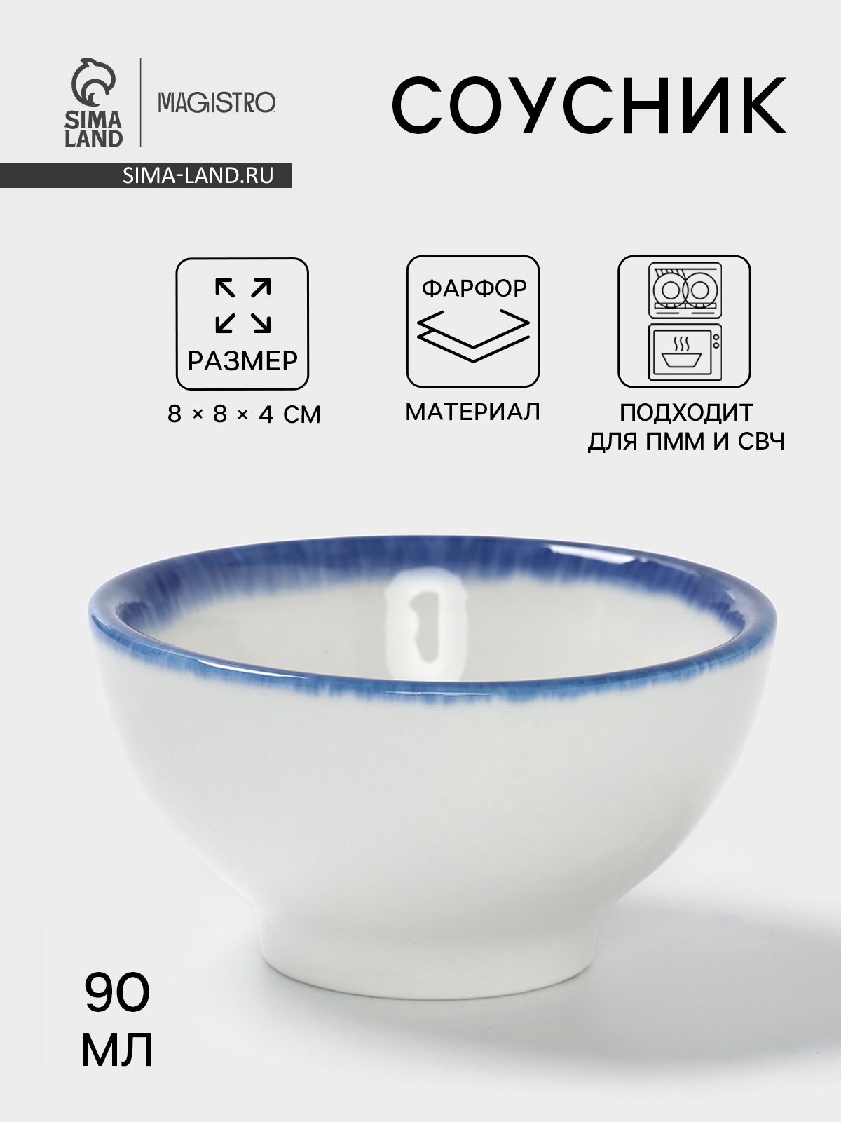 Соусник Magistro Blue Lagoon, 90 мл, D=8 см, фарфор, белый