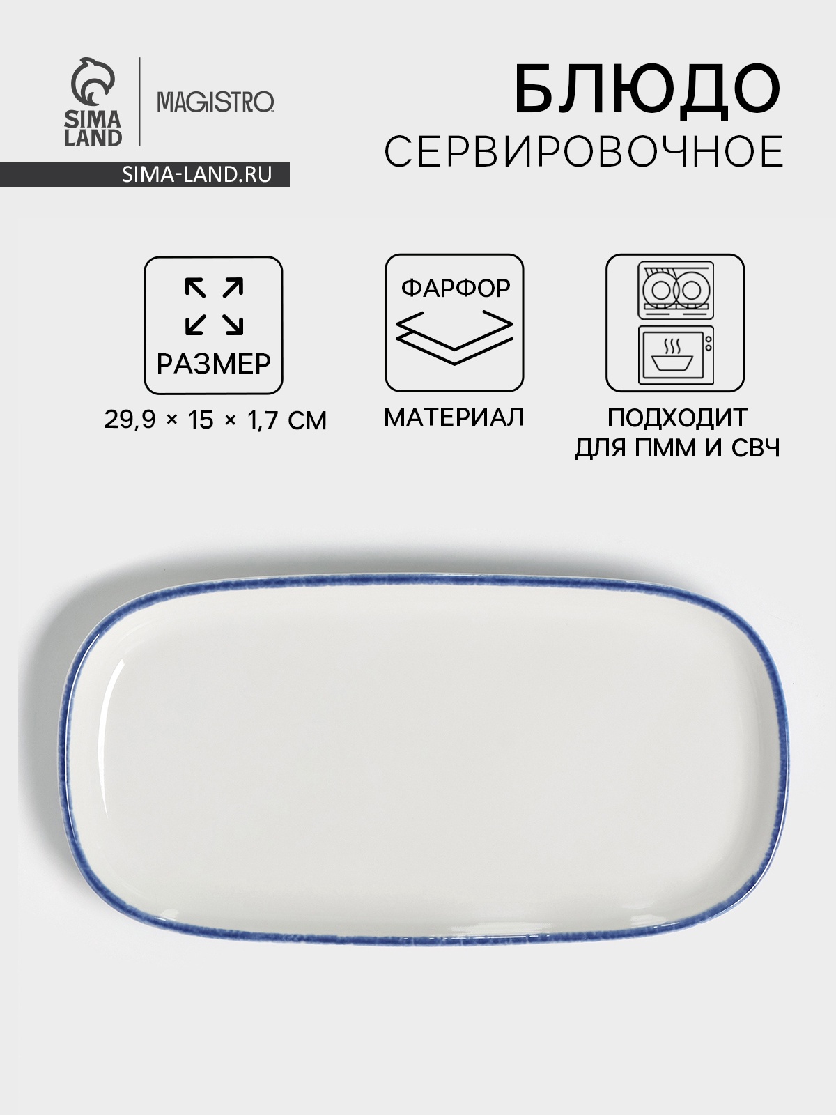Блюдо сервировочное Magistro Blue Lagoon, 29.9 15 1.7 см, фарфор, белое