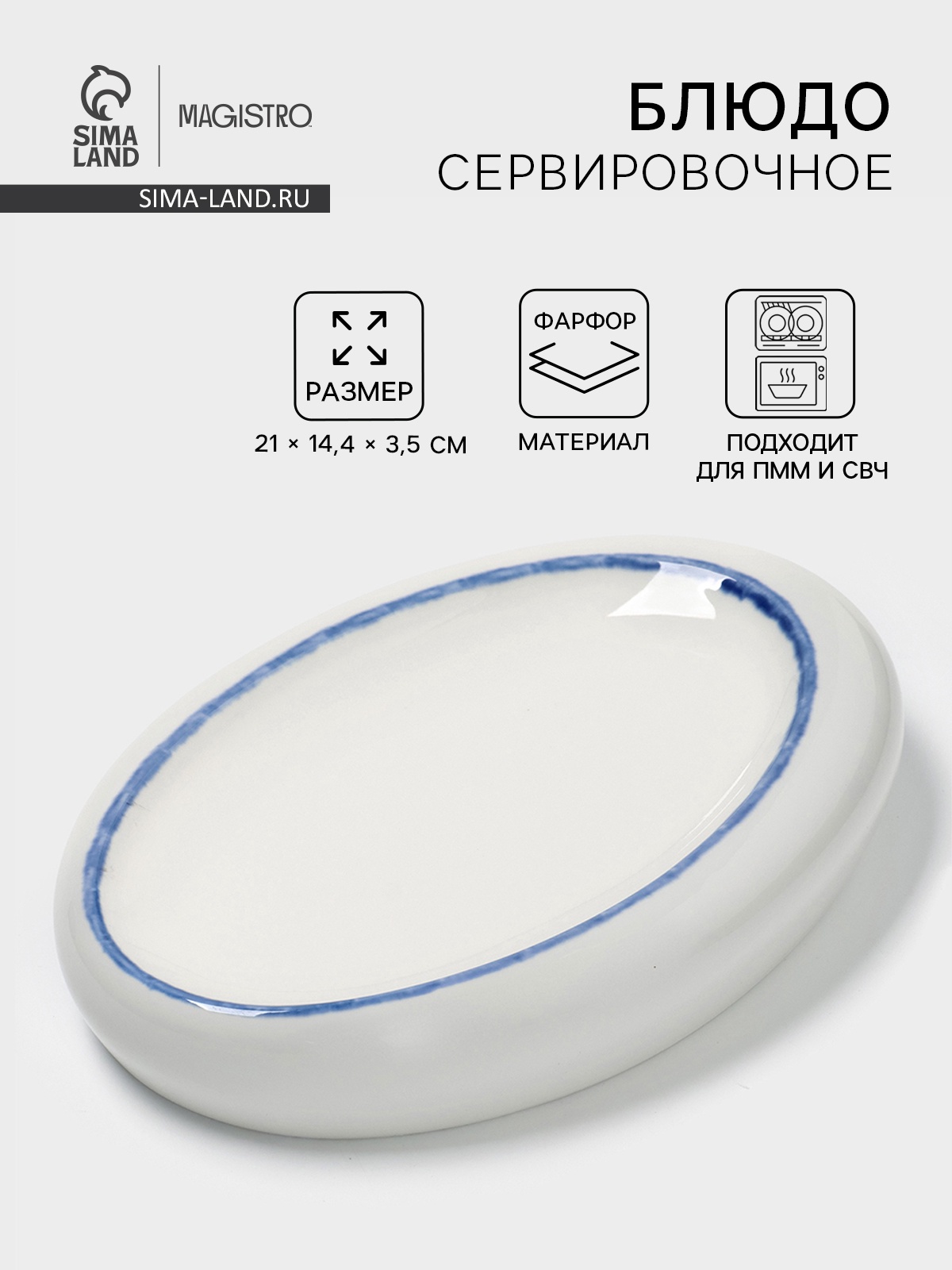 Блюдо сервировочное magistro blue lagoon, 21 14.4 3.5 см, фарфор, белое. Овальное блюдо «Blue Lagoon»: Изысканная сервировка для деликатесов Блюдо «Blue Lagoon» особенно хорошо подходит для подачи изысканных сыров, оливок или мини-десертов. Гладкая поверхность подчёркивает текстуру продуктов, а овальная форма делает сервировку стильной. Идеальный размер для индивидуальной подачи или небольших компаний. Почему оно удобно Компактные размеры: 21 14 см для порционной подачиМорской стиль: классическая обводка на белом фонеПрактичность: устойчиво к СВЧ и посудомоечной машинеУниверсальность: от сырных тарелок до фруктовых ассортиСервировка с характером Когда деликатесы подают на этом блюде, они приобретают особый шарм. Оно одинаково хорошо смотрится на фуршетных столах и при индивидуальной сервировке, добавляя нотку курортной элегантности вашему столу. Набор:Нет|Цвет:Белый|Тематика:Полоски, полоса|Рисунок:Да|Материал:Фарфор|Можно мыть в посудомоечной машине:Да|Можно использовать в СВЧ-печи:Да|Текстура:Гладкая|Особенности:Без особенностей|Страна:Китай  развернуть описание ▼