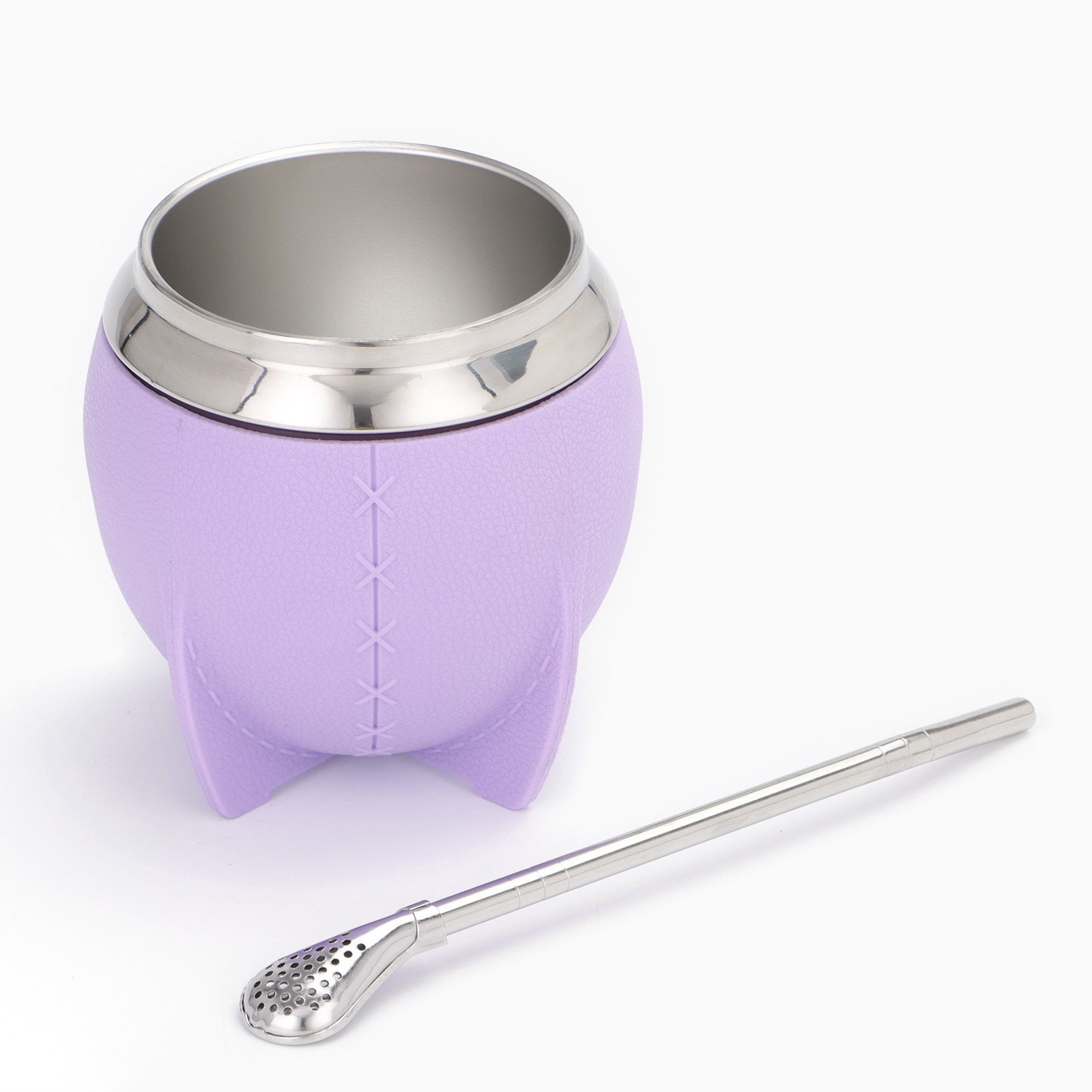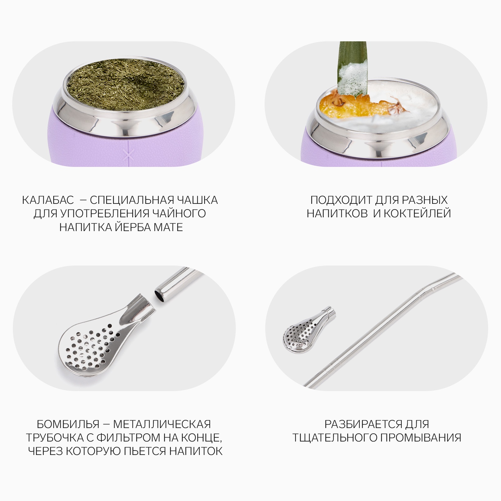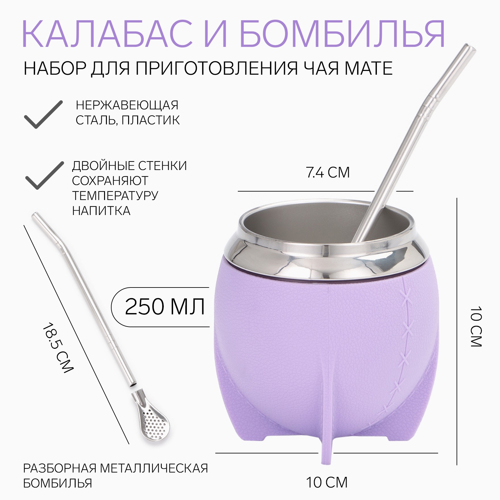 Калабас и бомбилья для приготовления чая мате, 240 мл, нержавеющая сталь, сиреневые