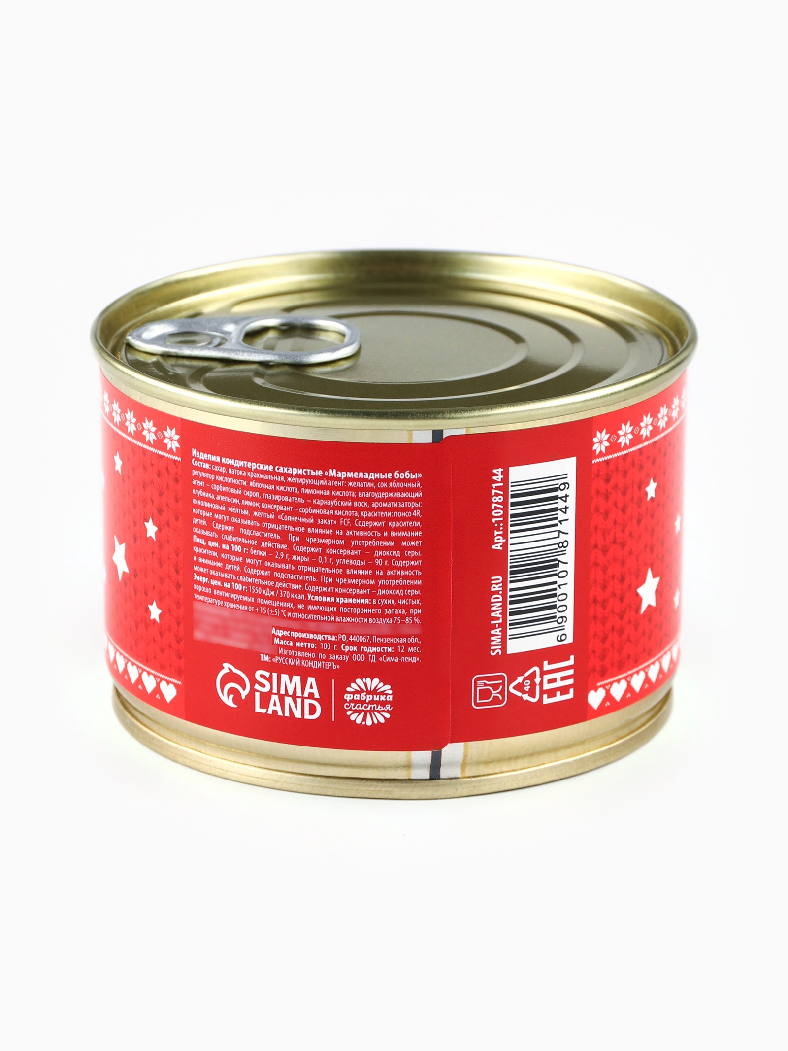 Мармелад бобы «с новым годом», в консервной банке, 100 г