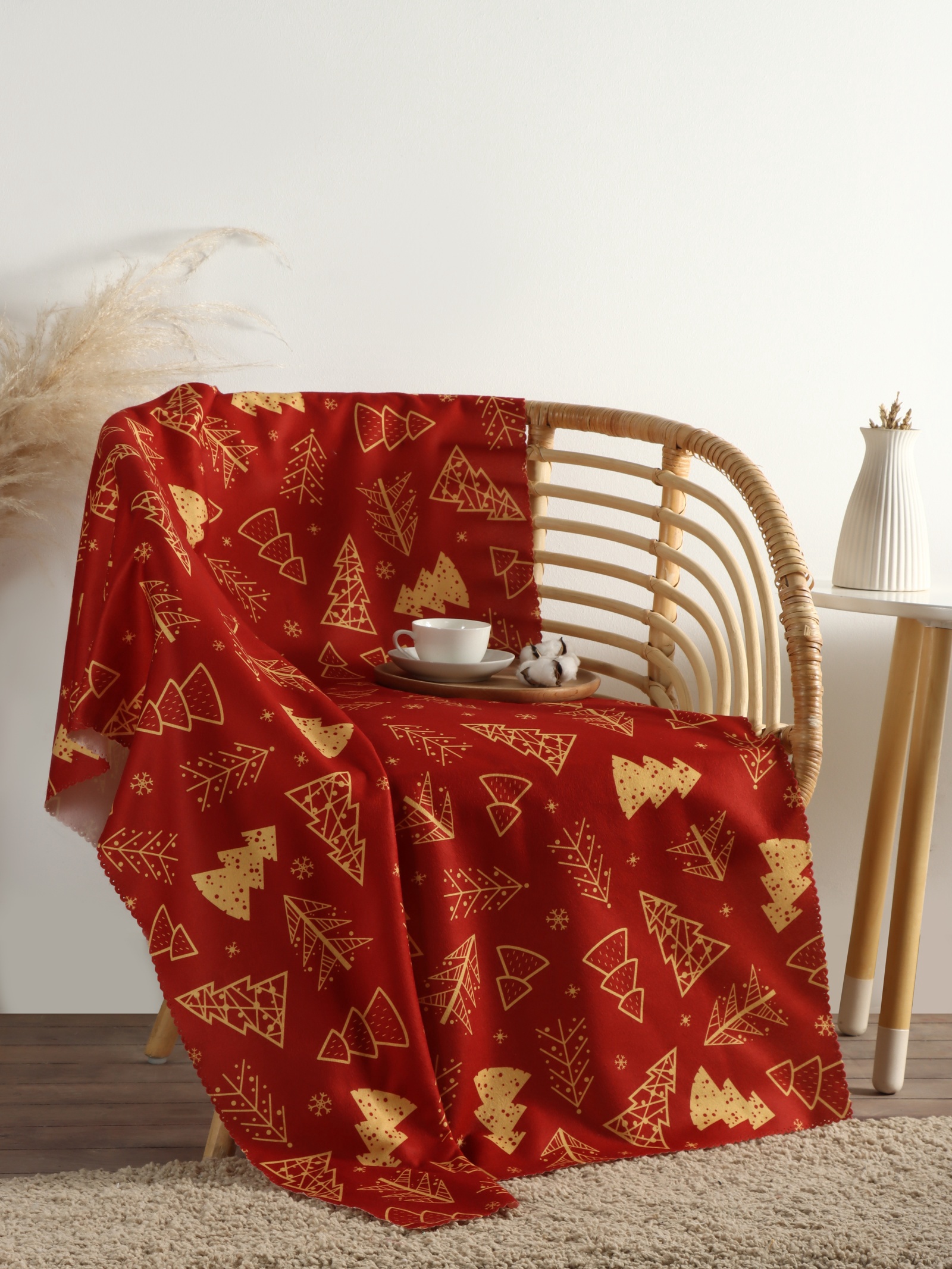 Плед флисовый новогодний «этель. ёлочки», 100 150 см, флис, пл. 160 г/м . Мягкий флисовый плед с новогодним рисунком в виде ёлочек станет уютным дополнением к зимнему интерьеру. Его компактный размер 100 150 см идеально подходит для одного человека, обеспечивая комфорт и тепло в прохладные дни. Бордовый оттенок добавляет глубину и насыщенность в оформление комнаты, подчёркивая праздничную атмосферу зимних вечеров. Особенности Размер 100 150 см удобен для использования дома и в поездках.Плотность флиса обеспечивает лёгкость и при этом сохраняет тепло.Отсутствие рукавов делает плед универсальным для отдыха и сна.Бордовый цвет с новогодним узором ёлочек подчёркивает сезонность и создаёт праздничное настроение.Материал легко стирается при 30 °С без использования отбеливателей и не требует глажки.Комфорт в каждый зимний день Этот плед помогает создать атмосферу уюта и тепла, обволакивая мягкостью и защищая от холода. Флисовая ткань отличается воздухопроницаемостью и приятной текстурой, что делает изделие подходящим для домашнего отдыха в холодное время года. Новогодний дизайн с ёлочками добавляет праздничный акцент без излишней вычурности. Используйте плед в гостиной для просмотра фильмов, на даче или в офисе, чтобы добавить тепла и комфорта. Он станет надёжным спутником в зимние вечера, поддерживая настроение праздника и создавая ощущение домашнего уюта. Цвет:Бордовый|Ткань:Флис|Плотность, г/м :160|Размер, см:100 х 150|Наличие рукавов:Нет|Тематика:Новогодняя|Вид упаковки:PVC-пакет|Тематика праздника:Новый год|Декоративные элементы:Без элементов|Рекомендации по уходу:Барабанная сушка запрещена|Рекомендации по уходу:Не отбеливать|Рекомендации по уходу:Глажка запрещена|Рекомендации по уходу:Деликатная стирка при 30 °С|Состав ткани:Полиэстер|Размер постельного белья:1-спальное и меньше|Страна:Россия  развернуть описание ▼