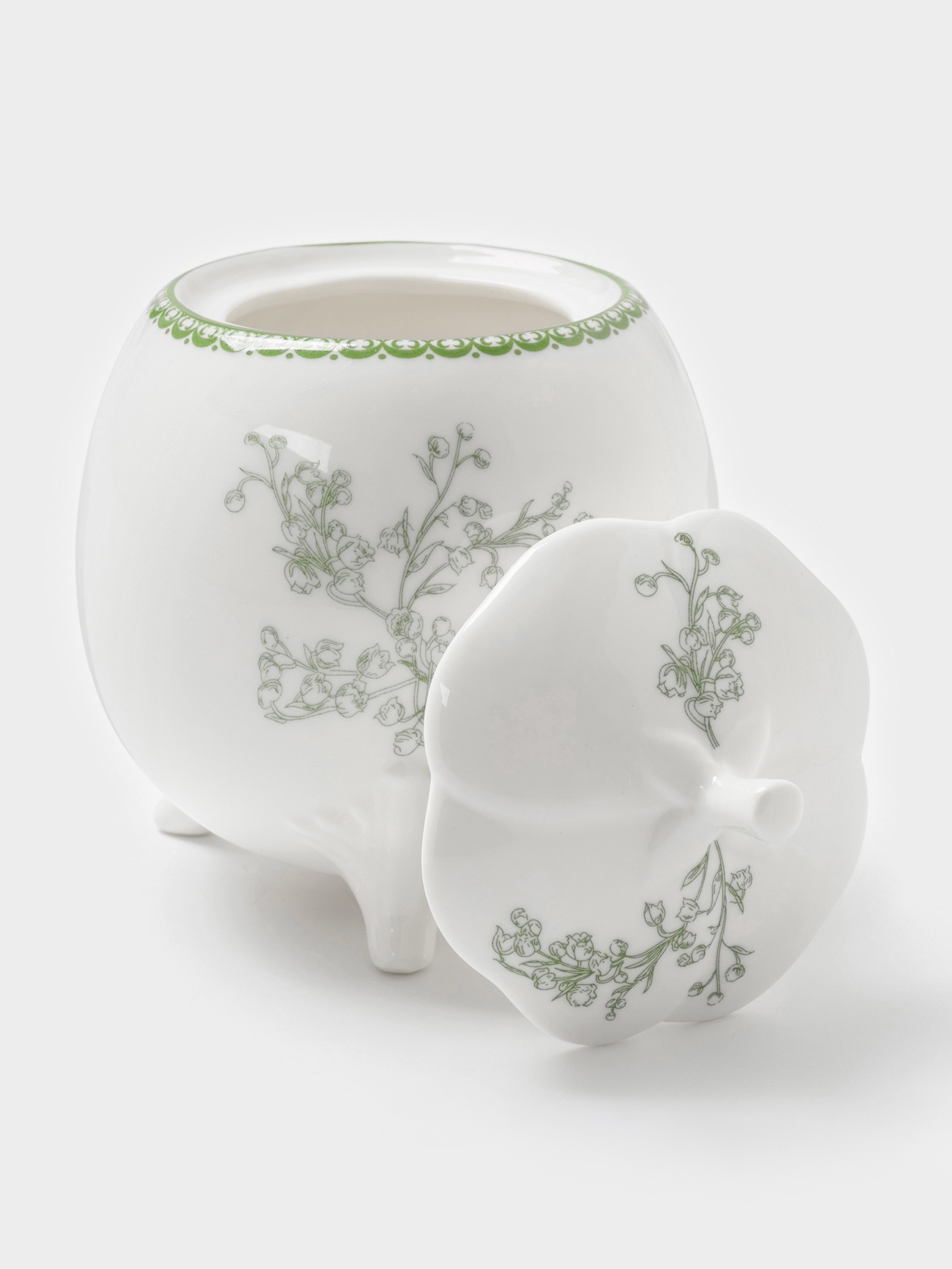 Сахарница Wy Bloomware, 300 мл, 12 9 см, фарфор, зелёная, белая