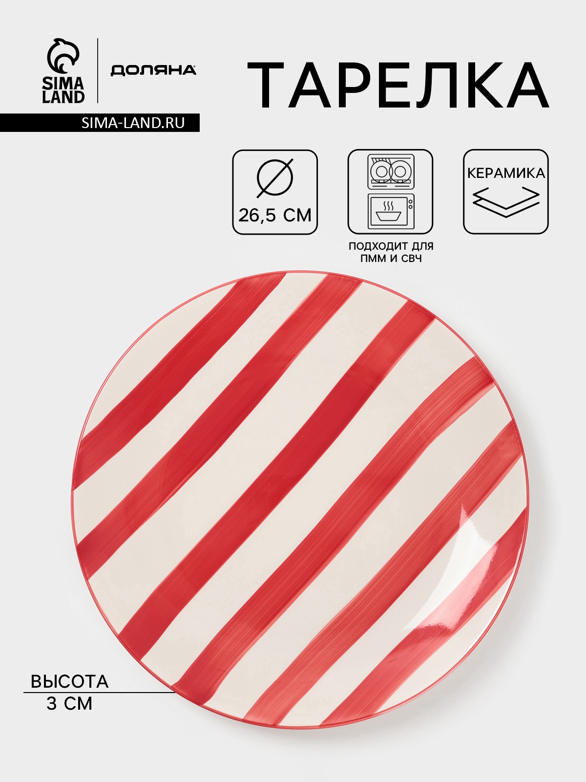 Тарелка доляна «райе», D=26.5 см, керамика, красная