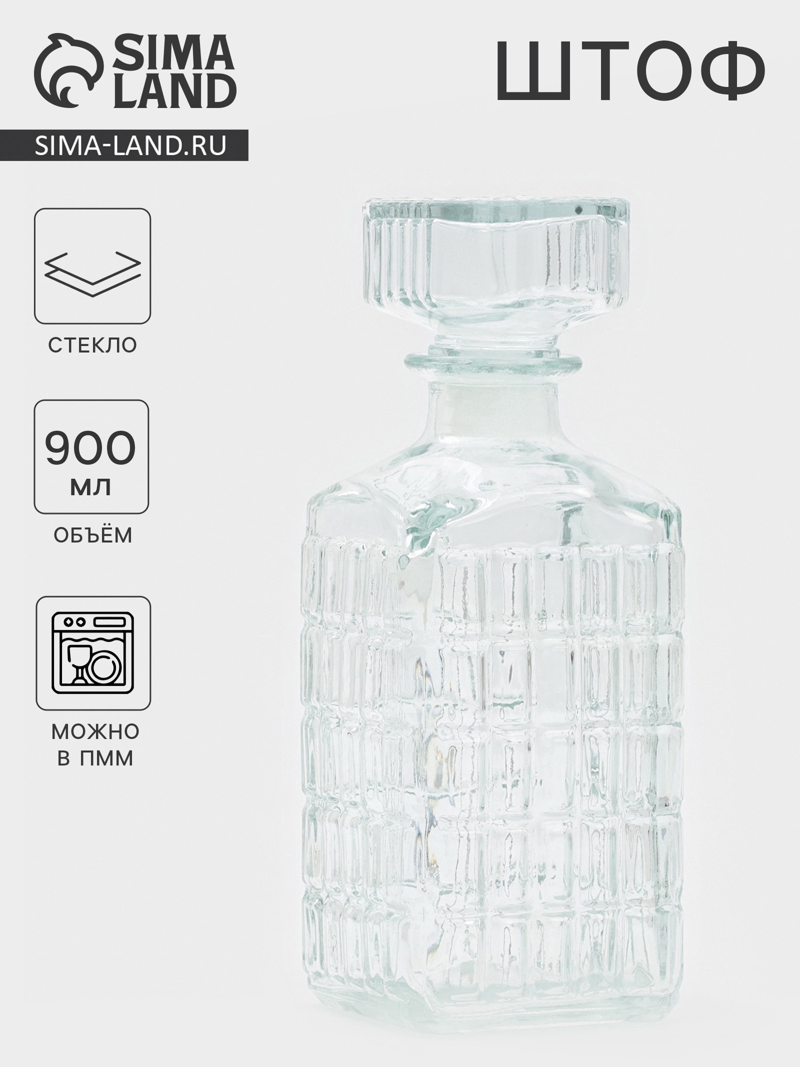 Штоф «магнат», 900 мл, 9x9x22.5 см, стекло, прозрачный
