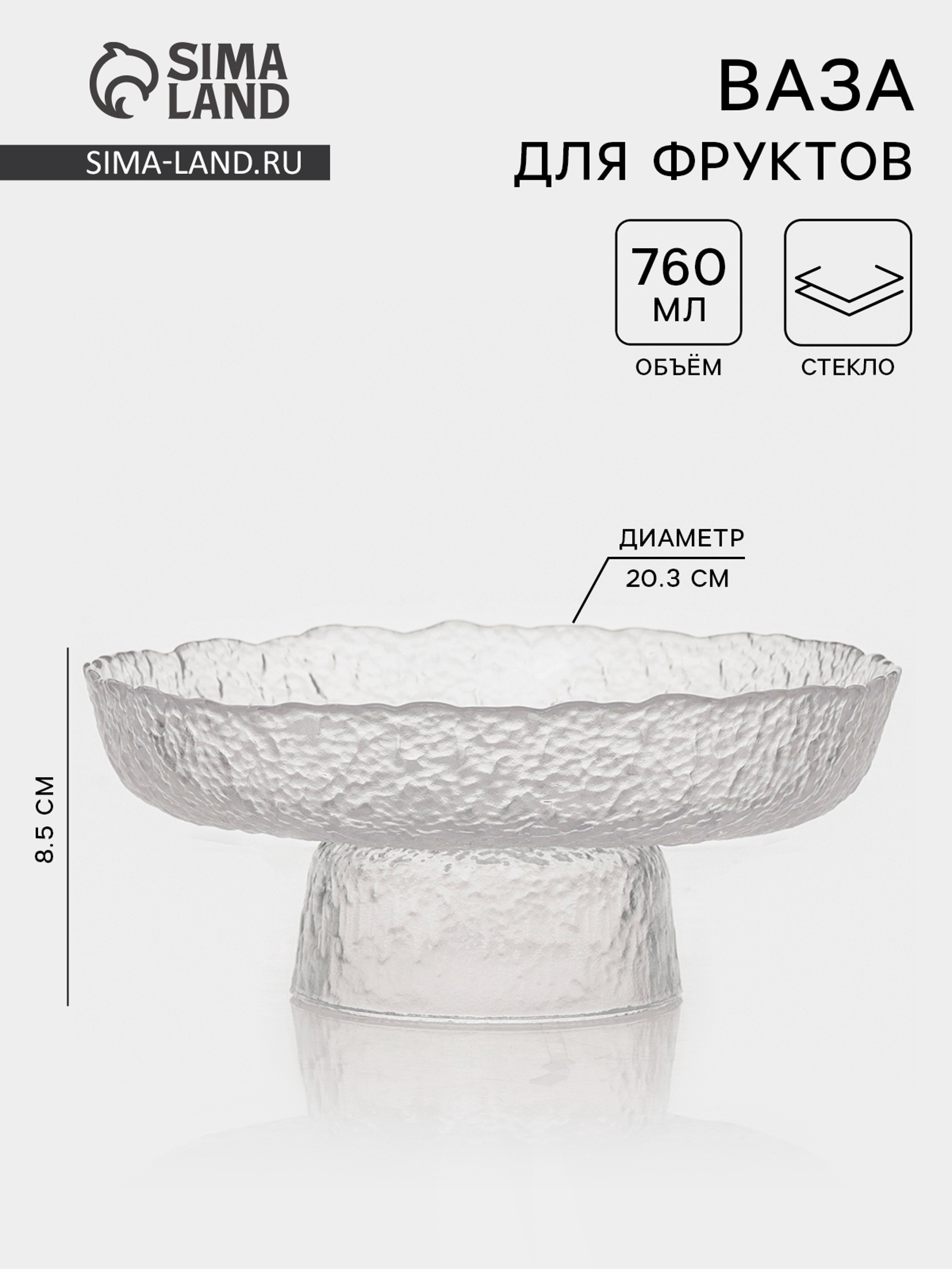 Ваза для фруктов «фрея», 760 мл, D=20.3 см, стекло, прозрачная