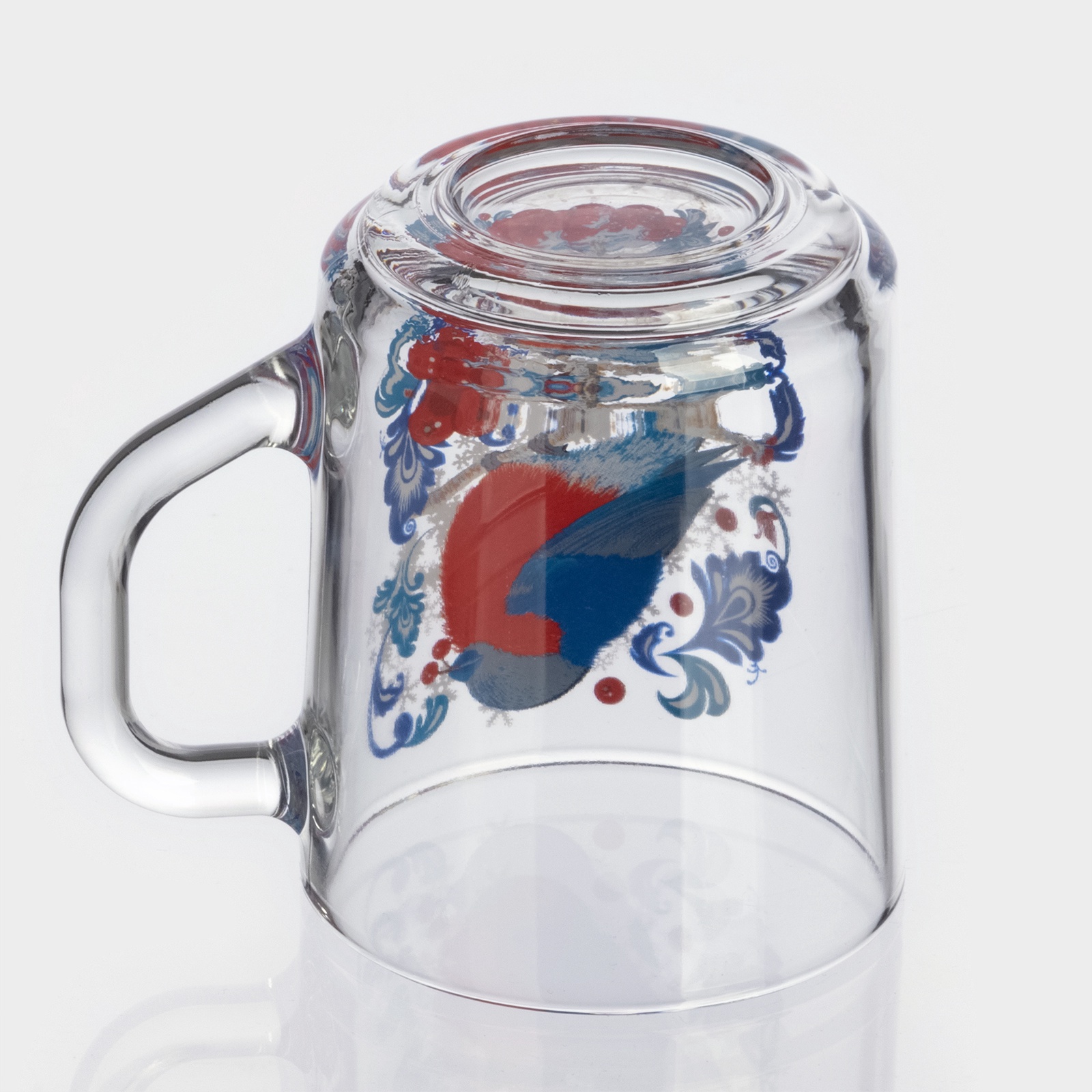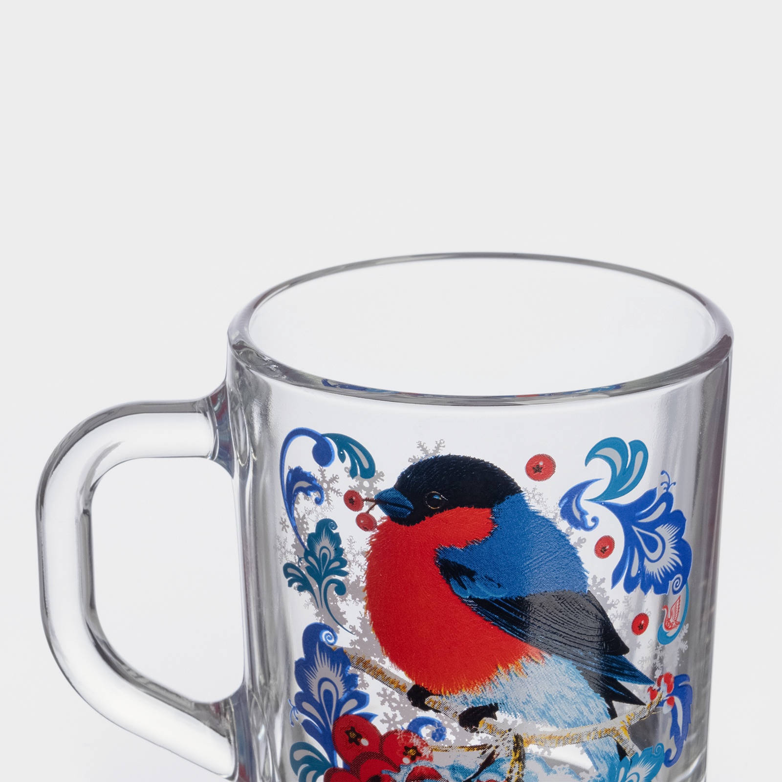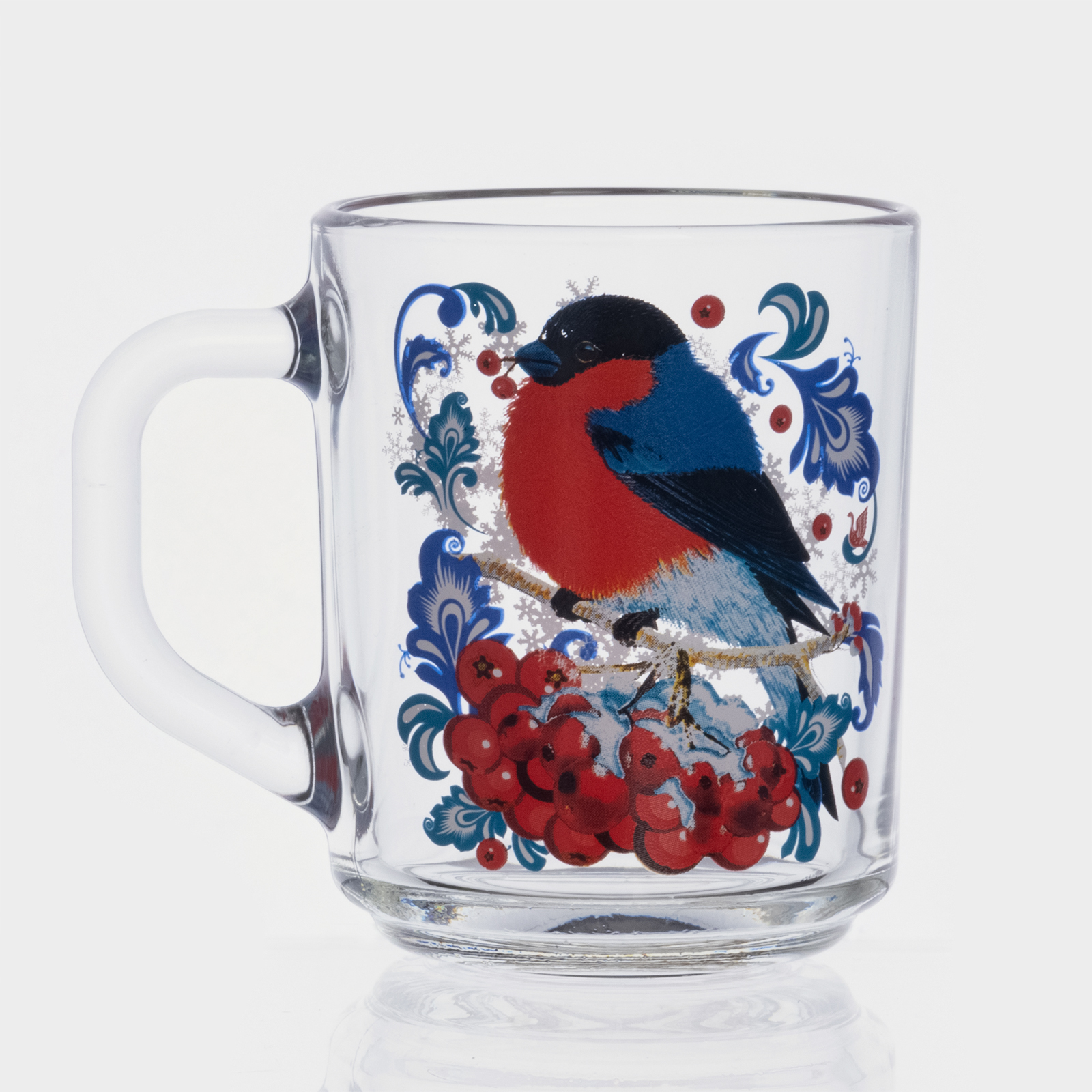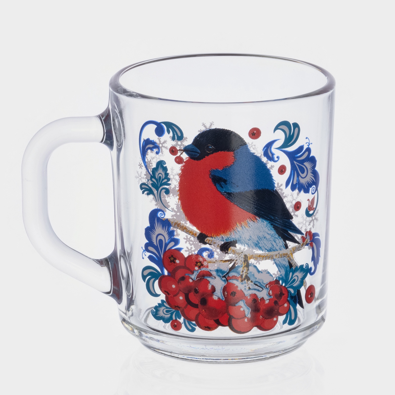 Кружка новогодняя стеклянная для чая «снегири на рябине», 200 мл