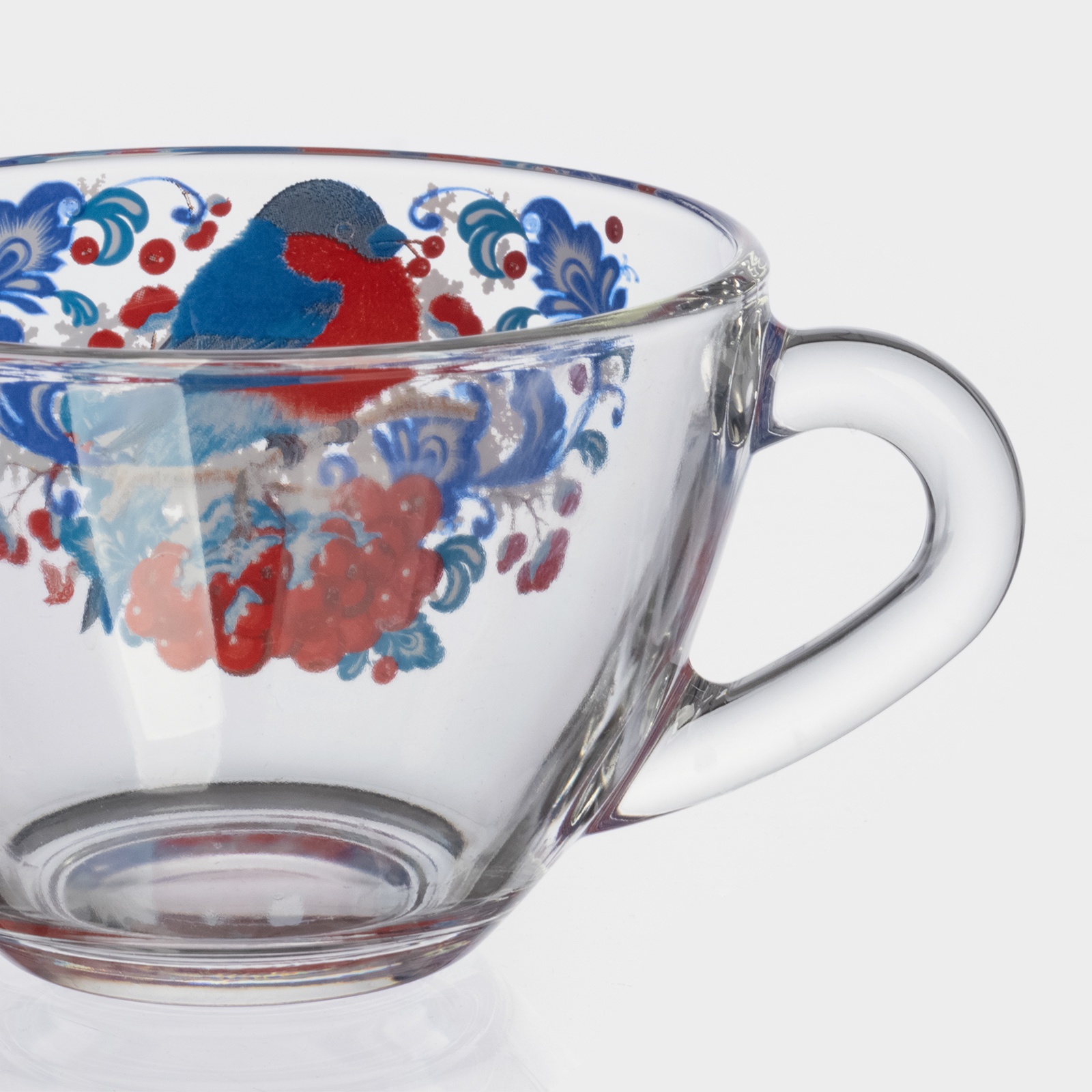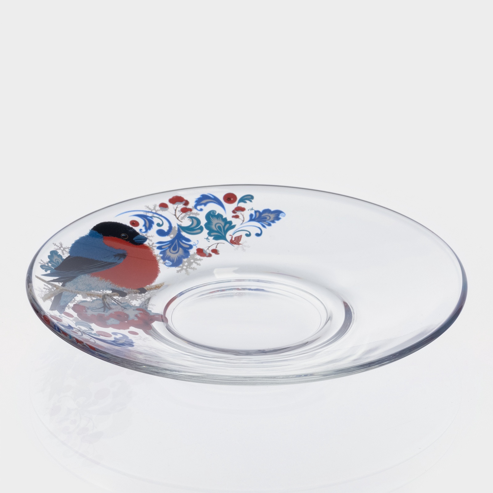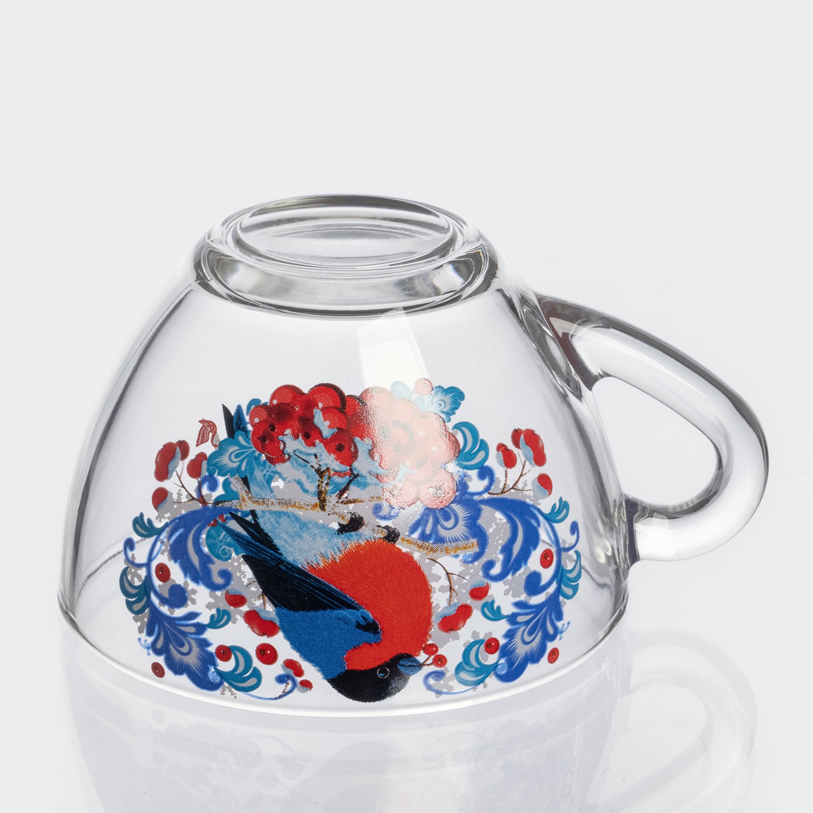 Чайная пара новогодняя стеклянная «снегири на рябине», 200 мл, блюдце D=13 см