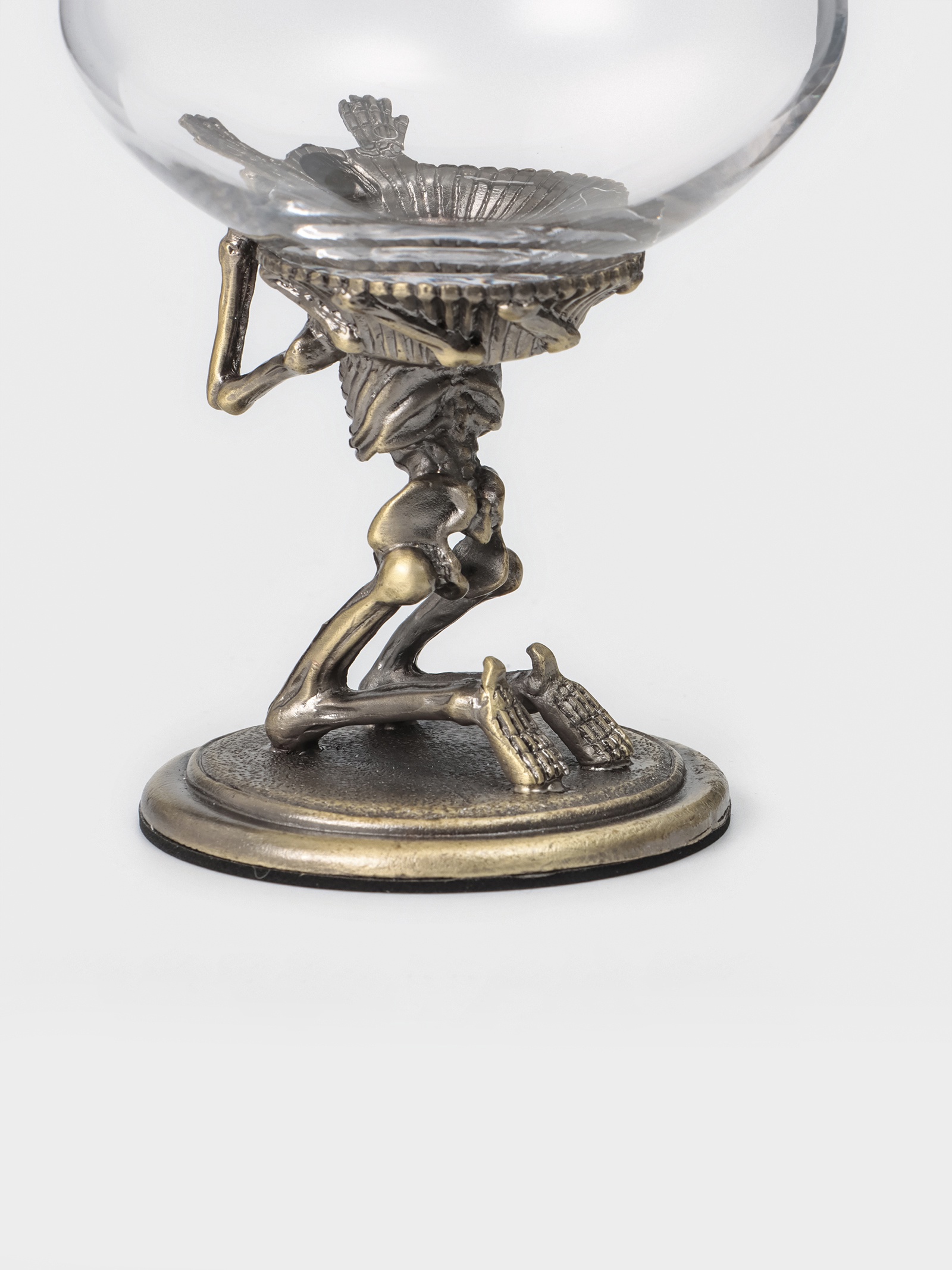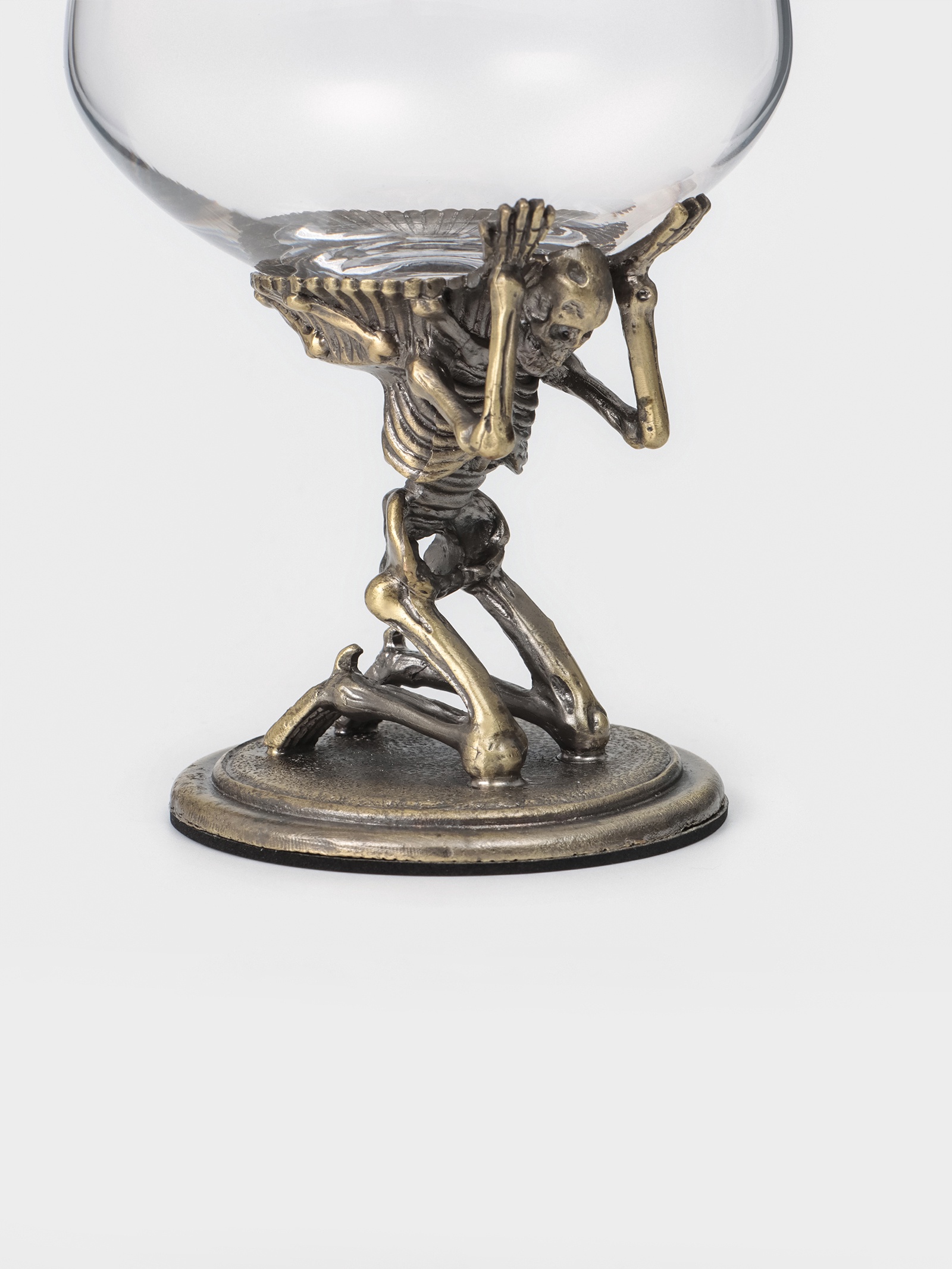 Бокал для коньяка 550 мл «скелет», подарочный, бронза. Бокал для коньяка с рельефом – это вызов обыденности. Бронзовый отлив стекла и объёмная текстура создают атмосферу, где каждый глоток становится ритуалом. Особенности: Форма: широкое дно и плавное сужение к краю удерживают букет, позволяя напитку раскрыться. Объём 550 мл подходит для настаивания на воздухе – аромат усиливается, вкус становится глубже. Рельеф: на поверхности – чёткий силуэт черепа и костей, выполненный методом барельефа. Это не накладной декор, а часть самой структуры бокала. Подарок с характером: упаковка выполнена в стиле презента – без излишеств, но с намёком на значимость. Подходит как подарок мужчине, ценителю крепких напитков, поклоннику нестандартного дизайна или тем, кто не боится демонстрировать индивидуальность. Уход: только ручная мойка. Агрессивная среда посудомоечной машины может повредить рельеф и вызвать микротрещины в стекле. Этот бокал не для спешки, он для тишины и размышлений. Когда внутрь налит коньяк, свет проходит сквозь прозрачные участки, подчёркивая бронзовую глубину и контуры рельефа. Цвет: Прозрачный Цвет: Бронзовый parts count: 0 Объём, мл: 550 Назначение: Для коньяка Материал: Стекло Можно мыть в посудомоечной машине: Нет Текстура: С рельефом Особенности: С барельефом  развернуть описание ▼