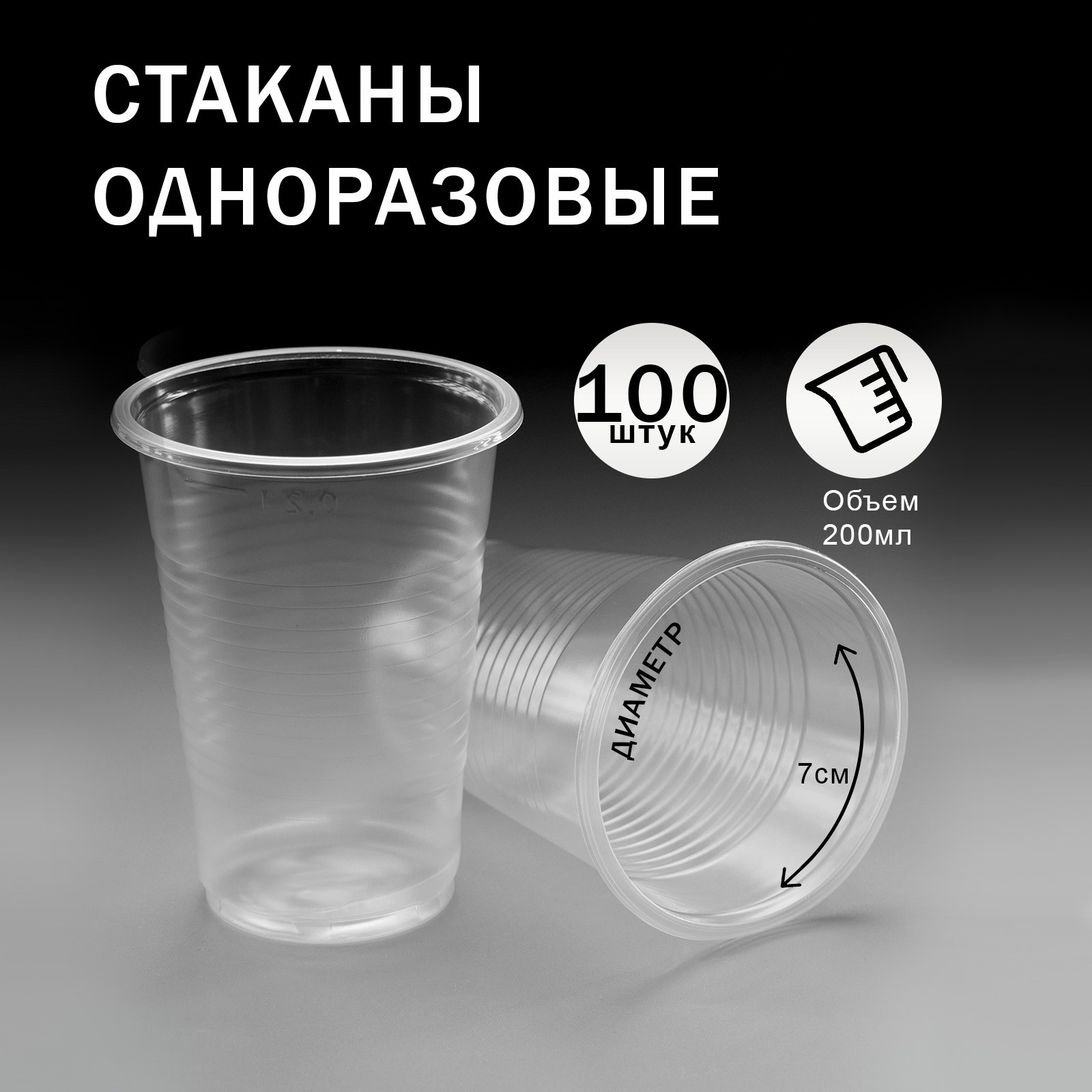 Набор стаканов одноразовых пластиковых прозрачных 200 мл 100 штук Набор стаканов одноразовых пластиковых прозрачных 200 мл 100 штук Набор стаканов одноразовых пластиковых прозрачных 200 мл 100 штук