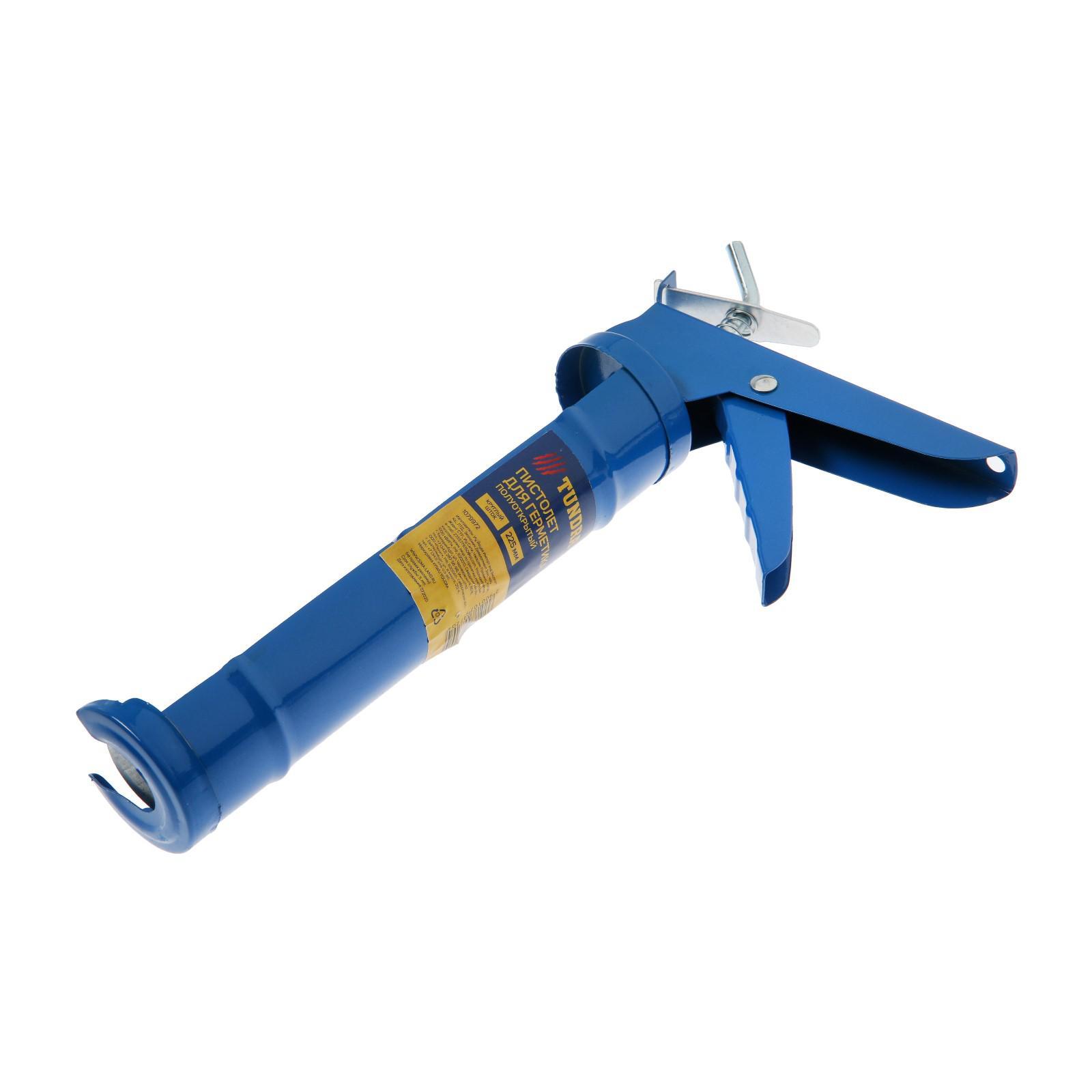 Пистолет для герметика тундра, полуоткрытый, зубчатый шток, 225 мм