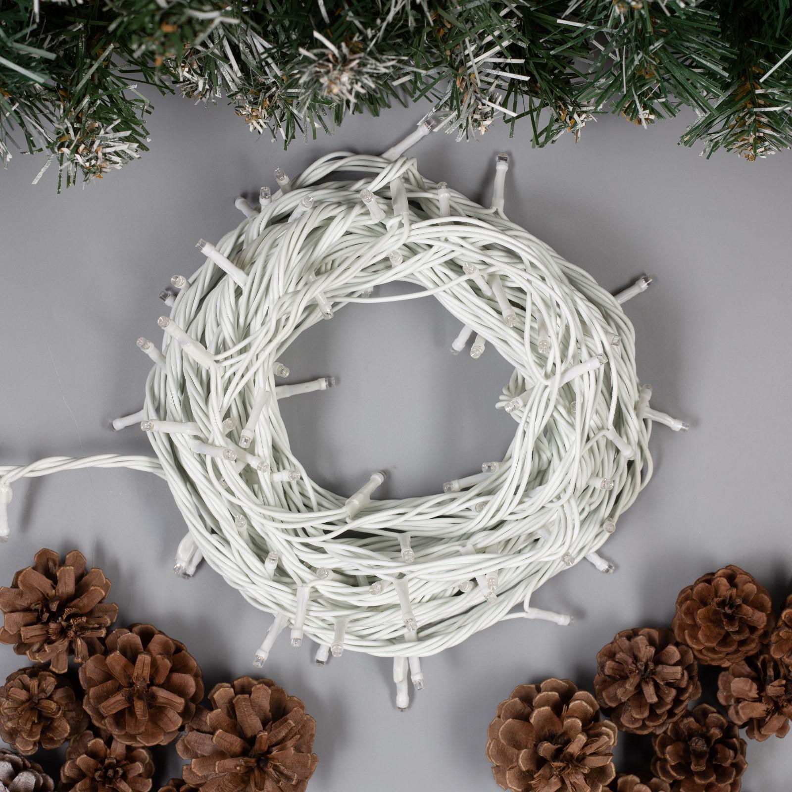 Гирлянда «нить» 10 м, Ip44, умс, белая нить, 100 Led, свечение синее, 220 в