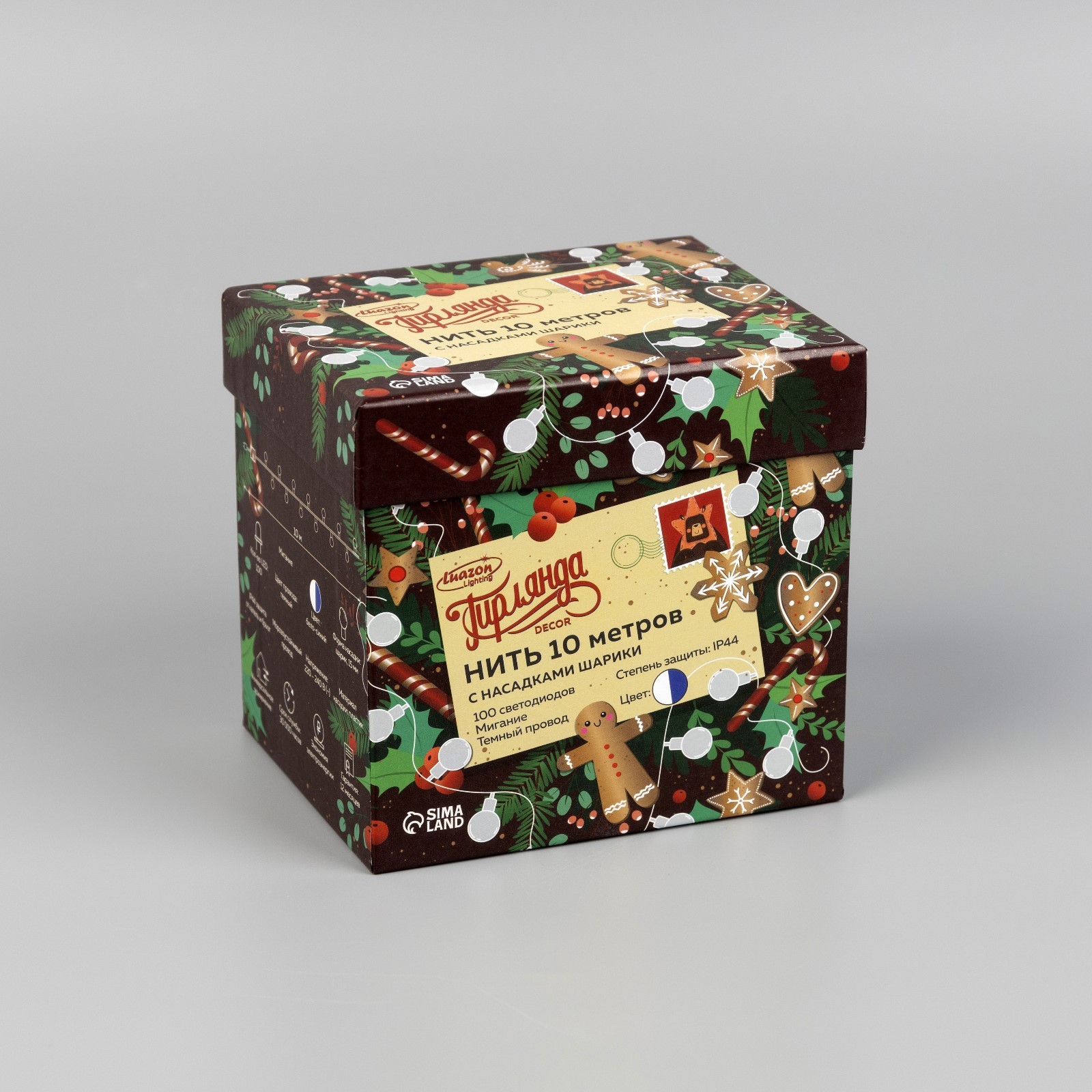 Гирлянда «нить» 10 м с насадками «шарики 1.5 см», Ip44, тёмная нить, 100 Led, свечение бело-синее, мигание, 220 в