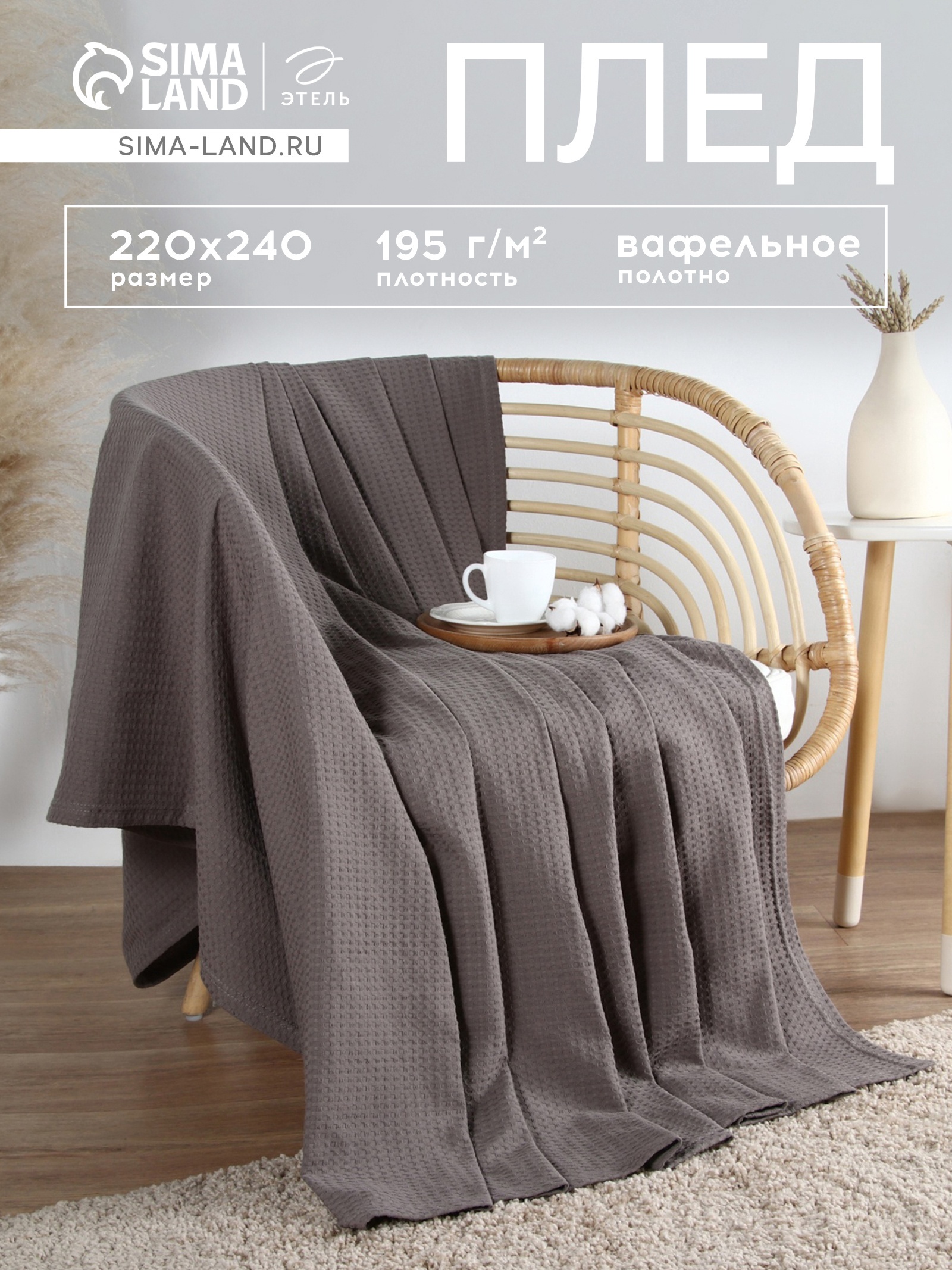 Плед вафельный «этель» Waffle, 220 240 см, серый, вафля 195 г/м