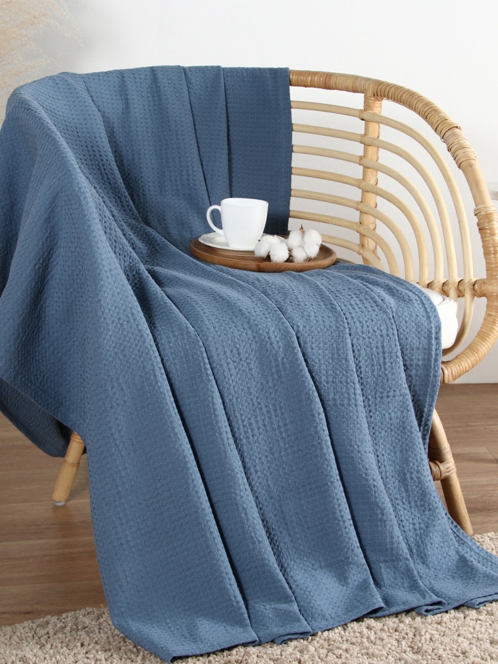 Плед вафельный «этель» Waffle, 150 240 см, синий, вафля 195 г/м