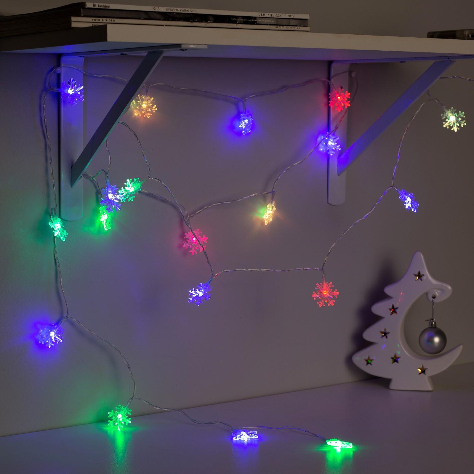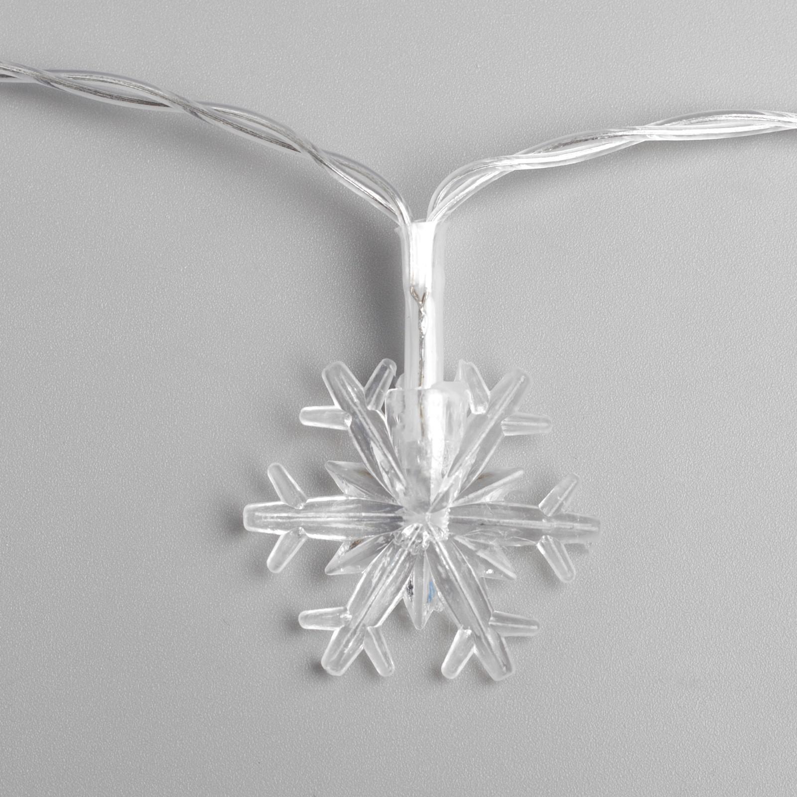 Гирлянда «нить» 3 м с насадками «снежинки большие», Ip20, прозрачная нить, 20 Led, батарейки Aaх3 (нет в комплекте), свечение му